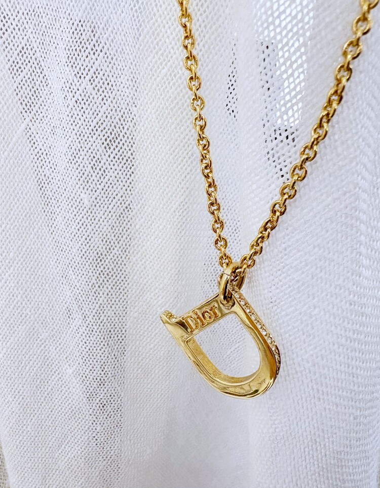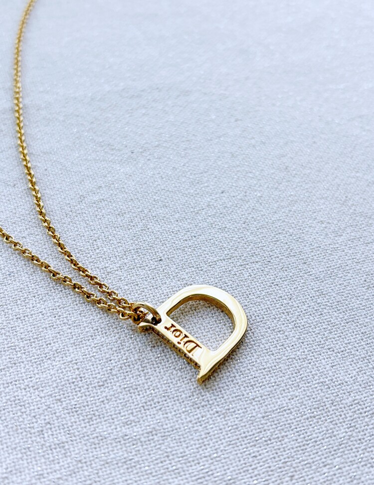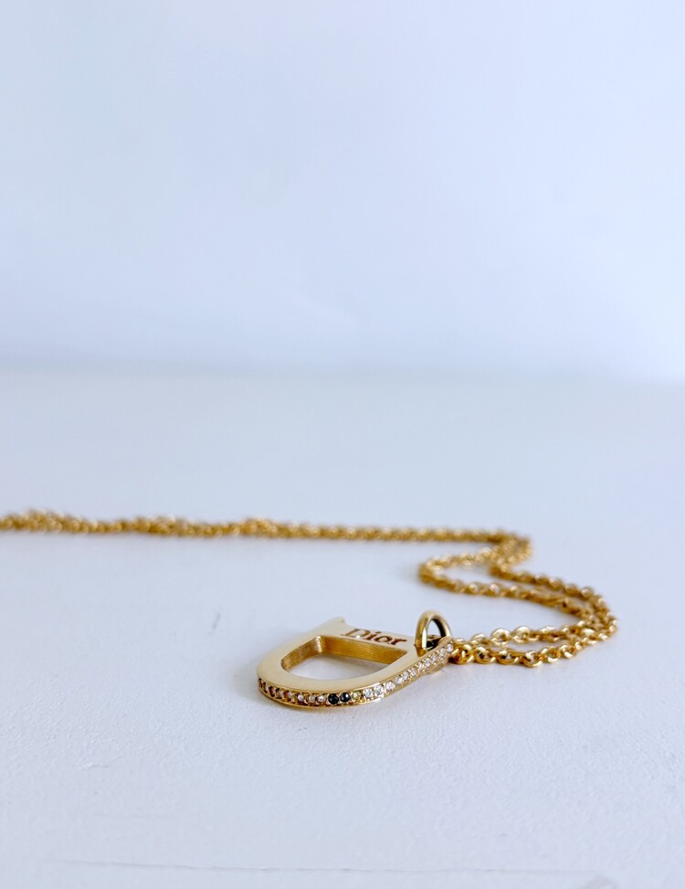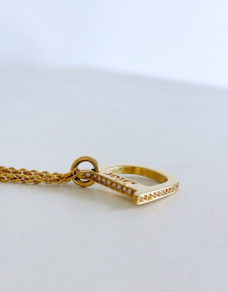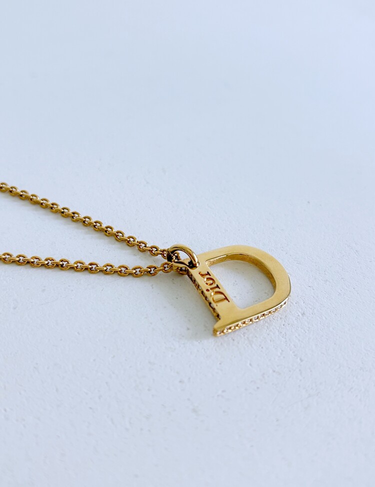 CHRISTIAN DIOR Rhinestone D Pendant Necklace