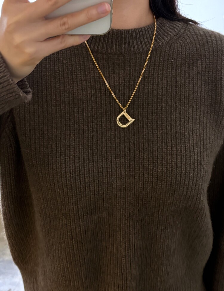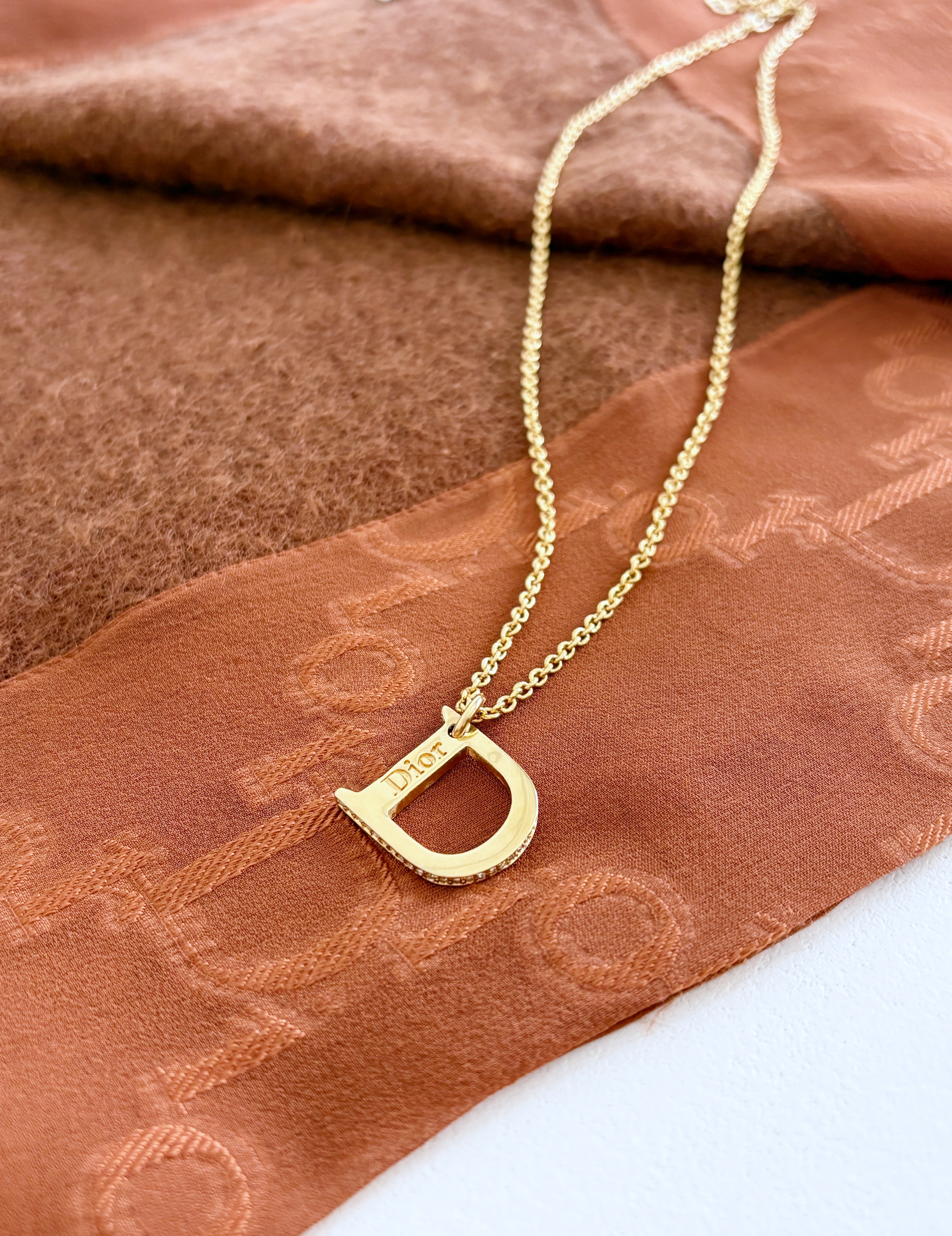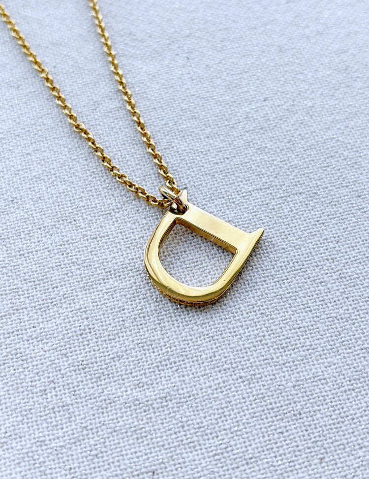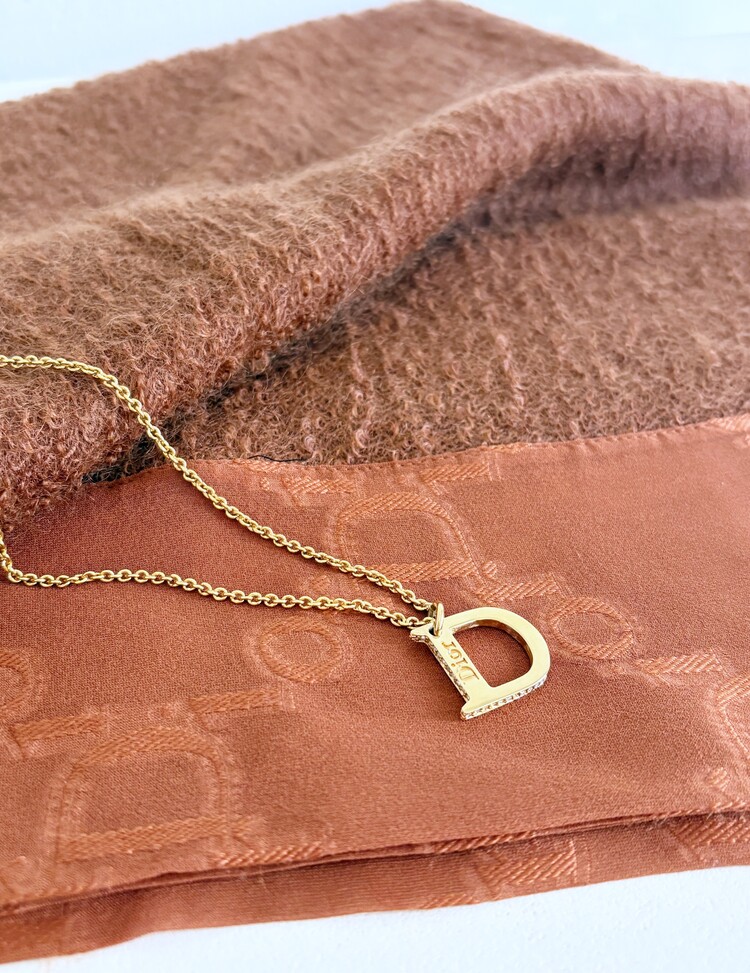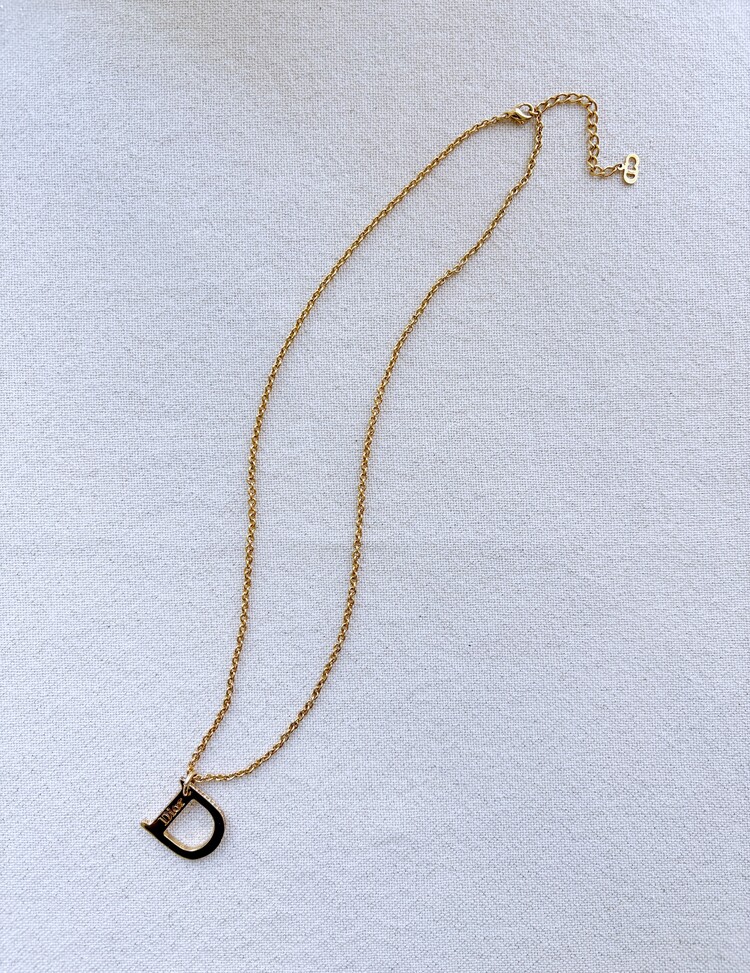 CHRISTIAN DIOR Rhinestone D Pendant Necklace