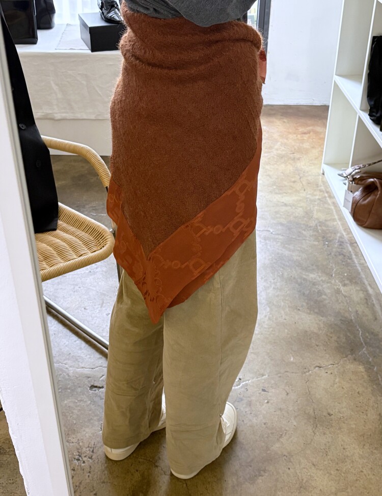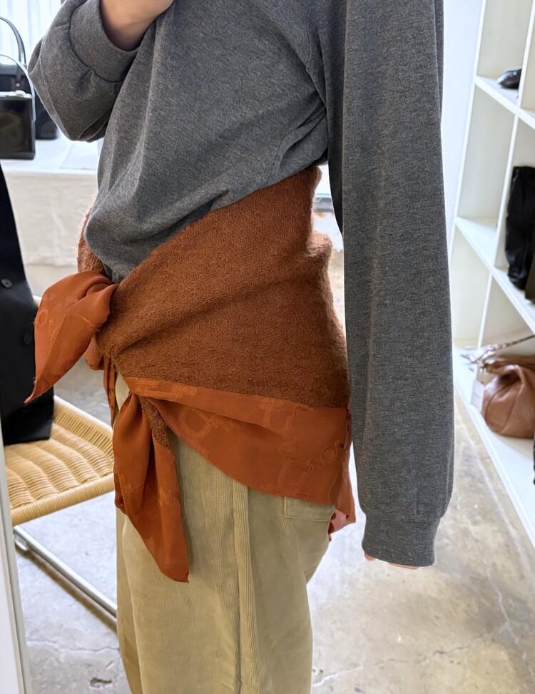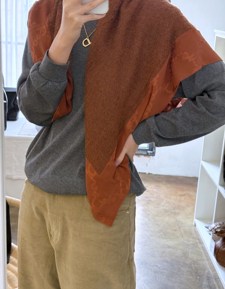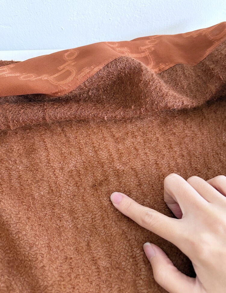 중앙에 가까운 부위에 수선된 것 같은 흔적이 있습니다. 짜임 자체가 헤어리한 슬럽사 느낌이어서 특별히 신경쓰이지는 않았습니다.