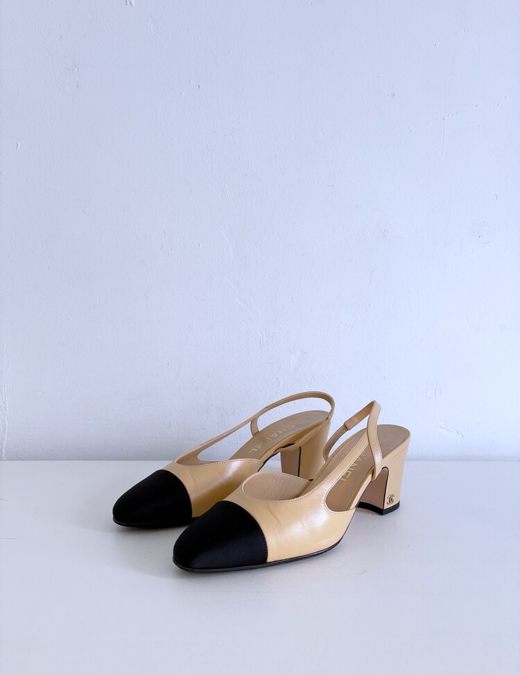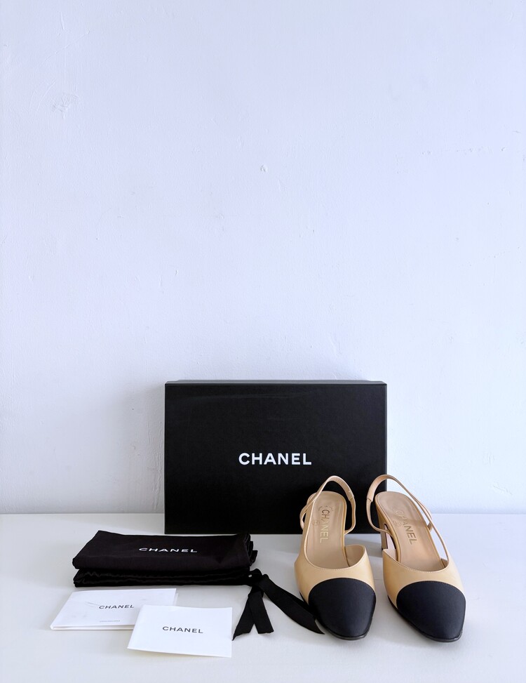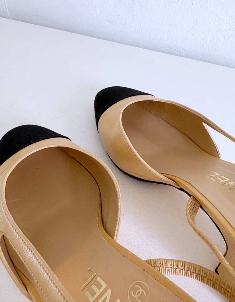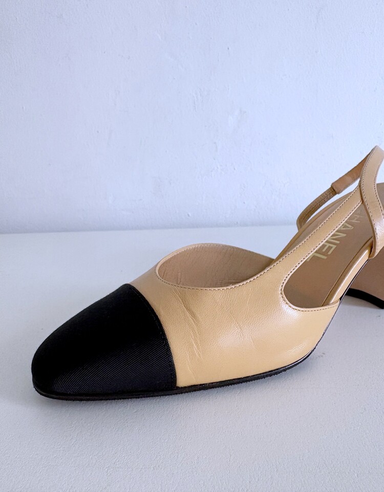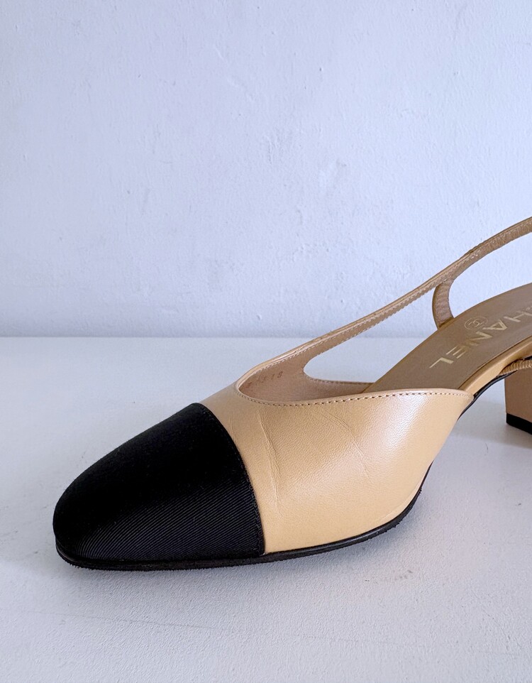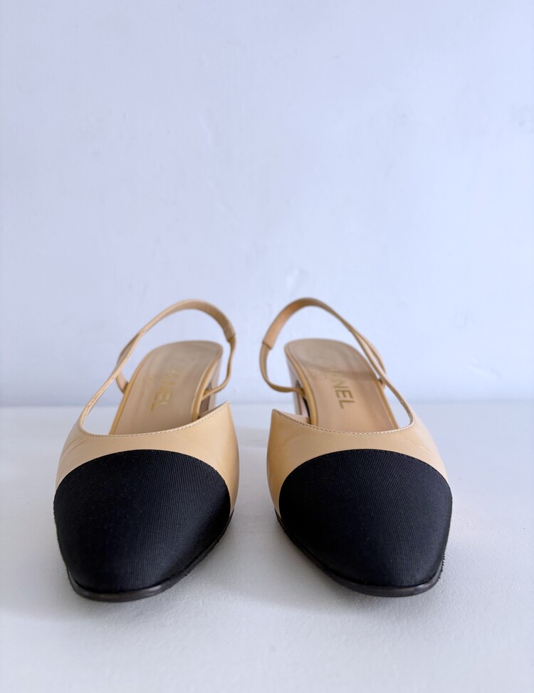 CHANEL Two-tone Middle Heel Slingbacks (36.5)
