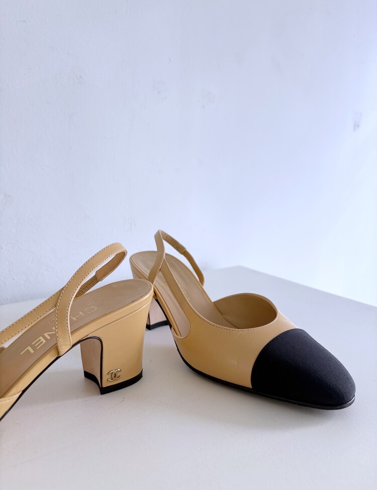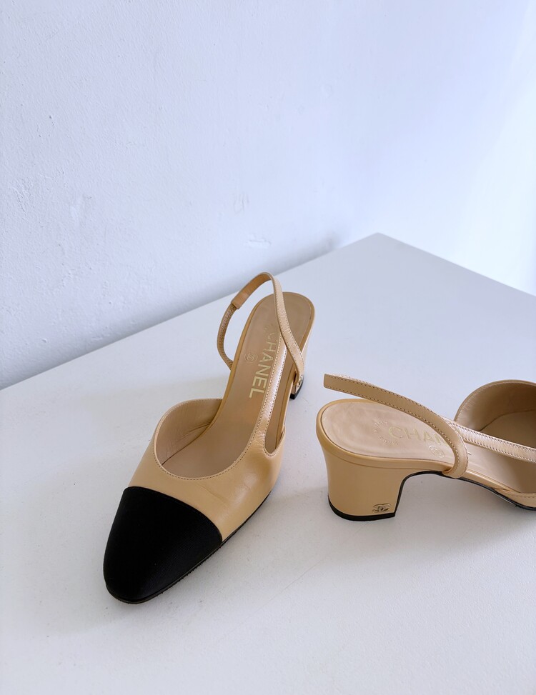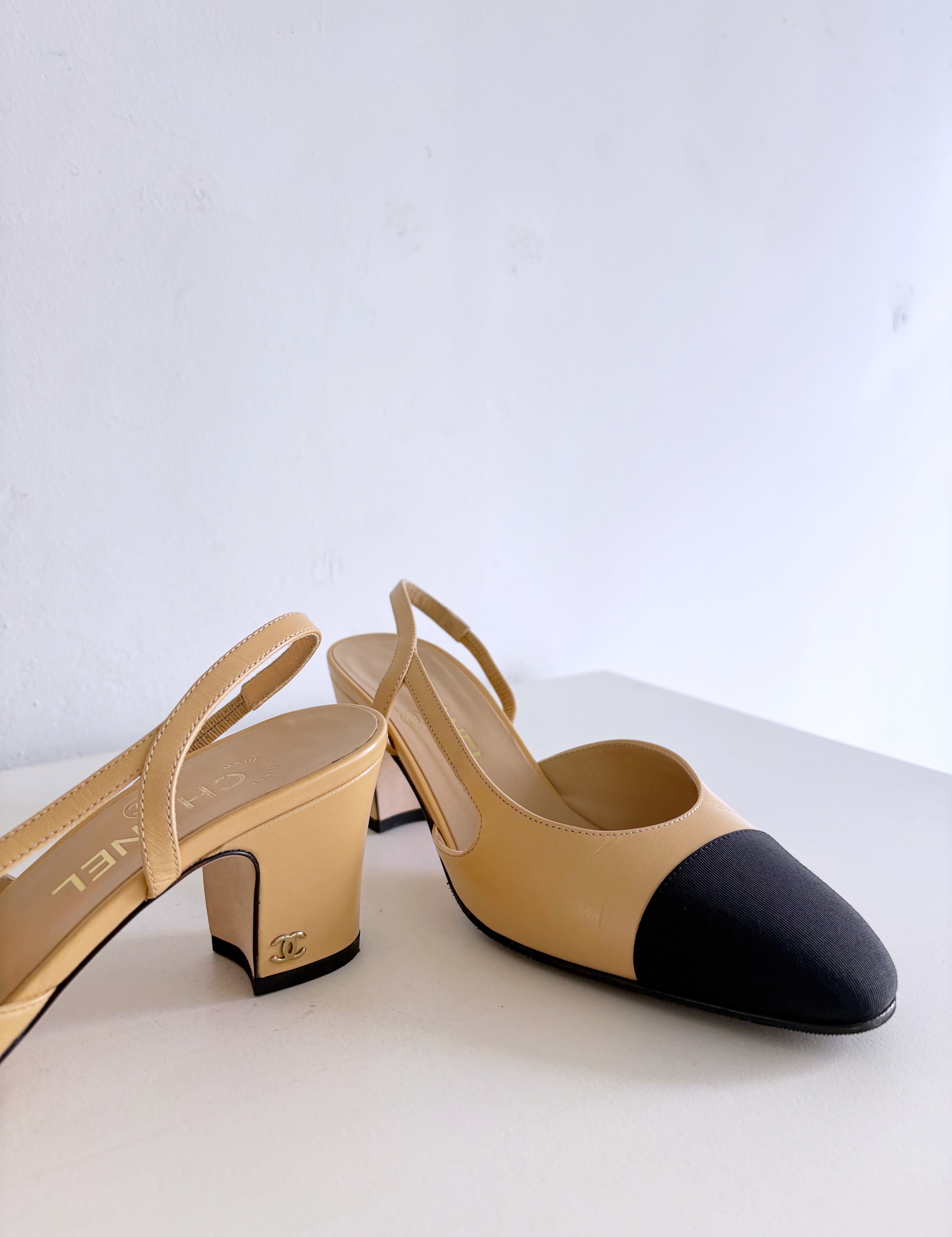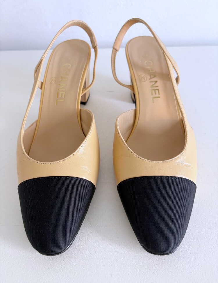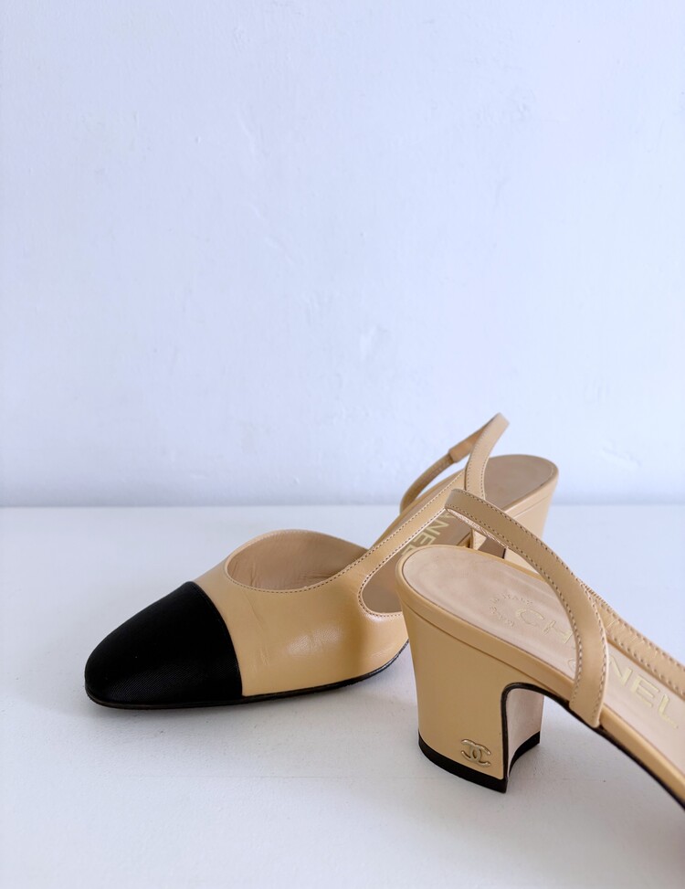 CHANEL Two-tone Middle Heel Slingbacks (36.5)