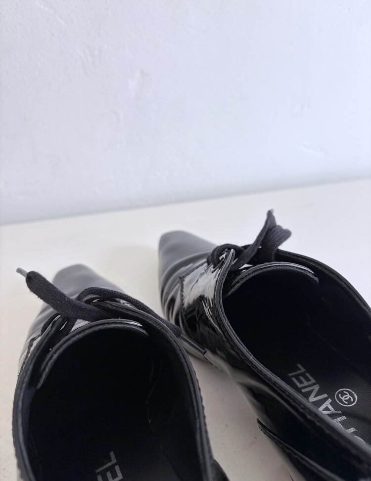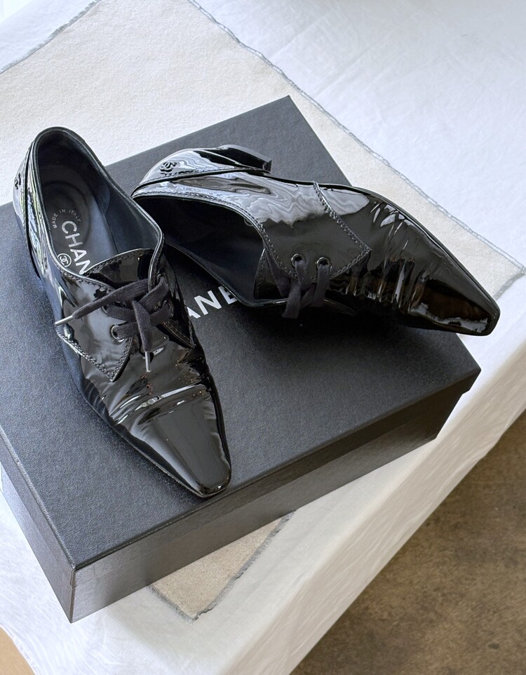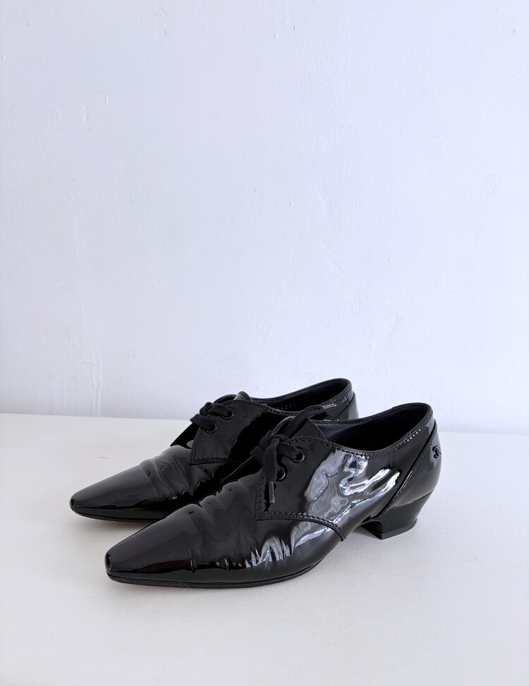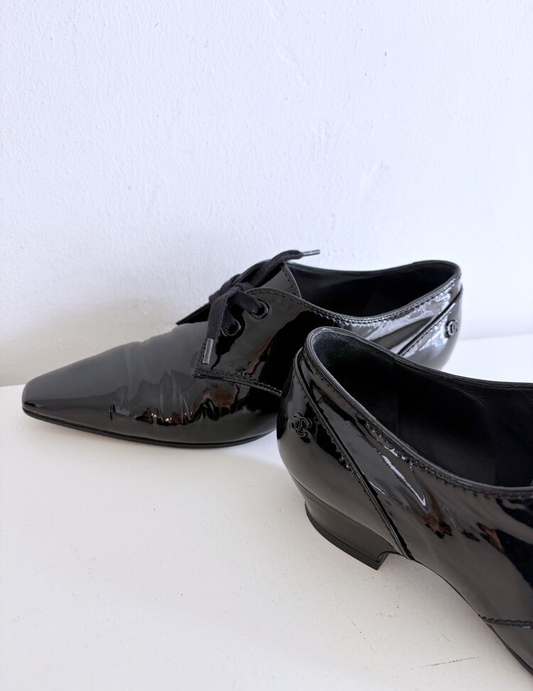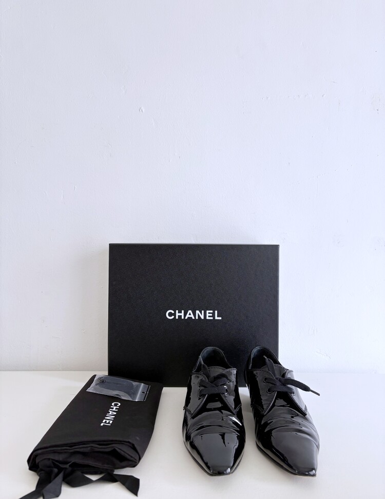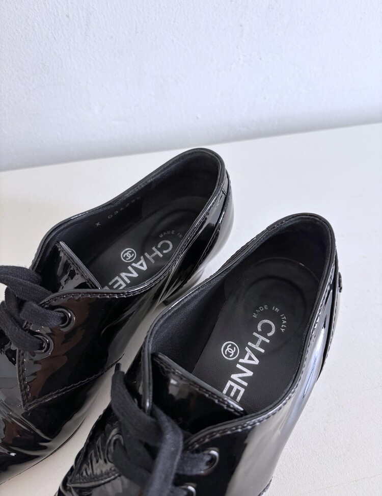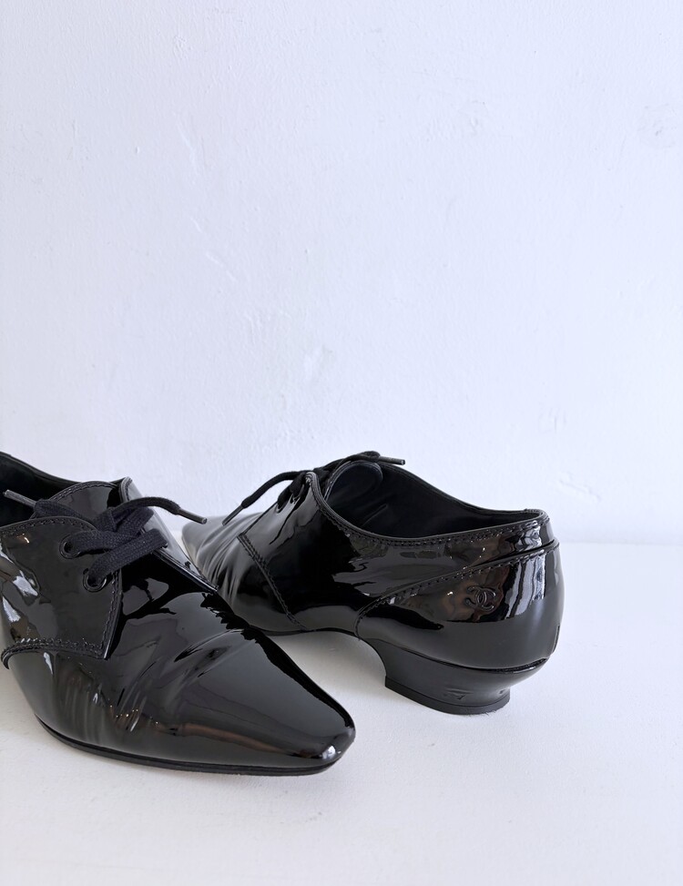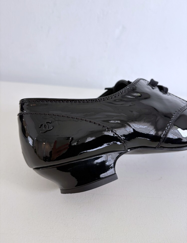 CHANEL Enamel Leather Lace-up Loafers (36)
