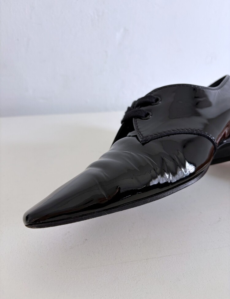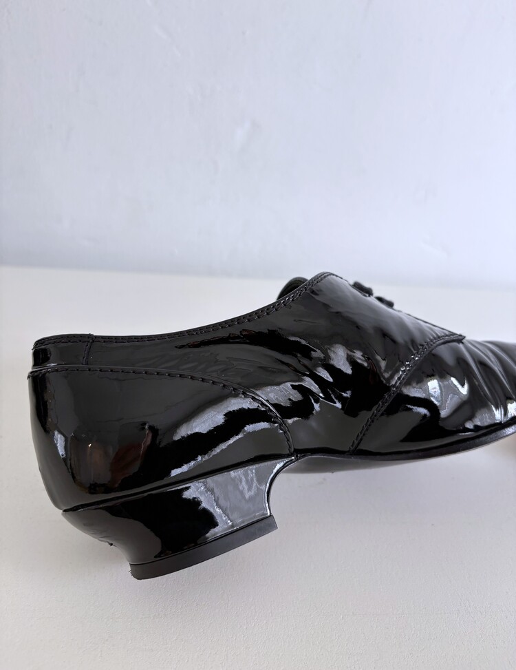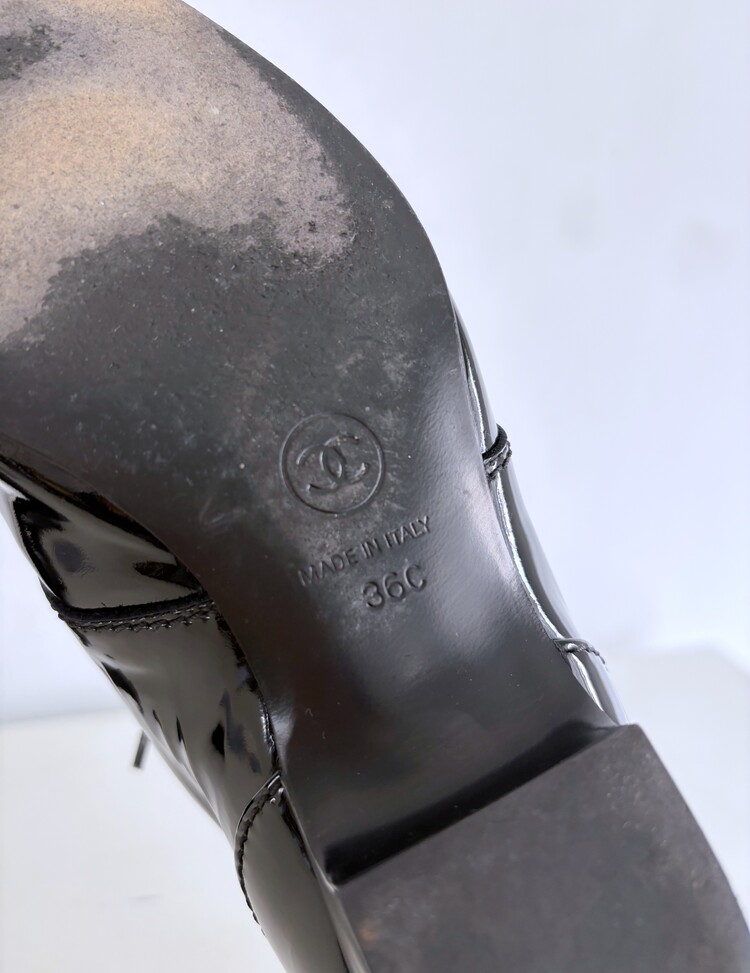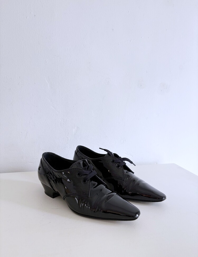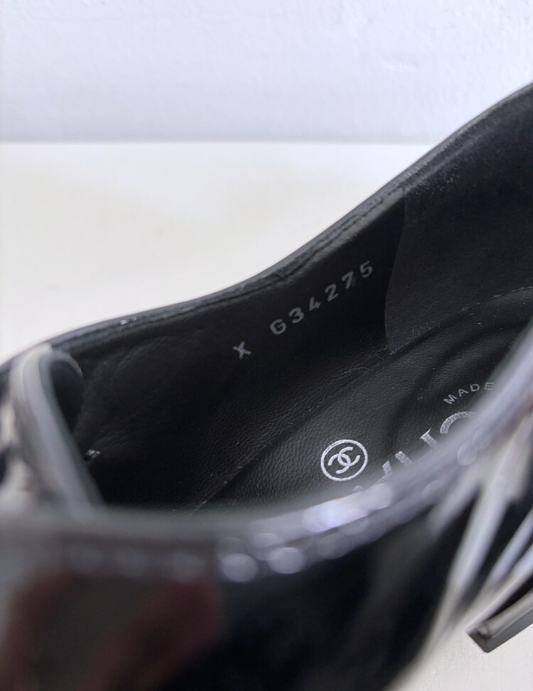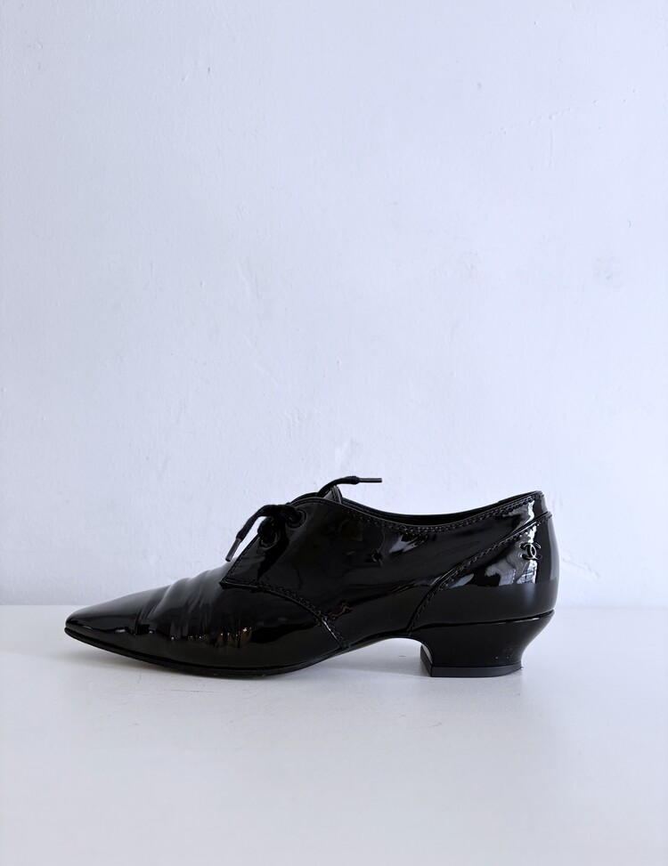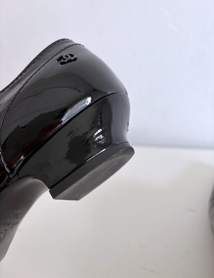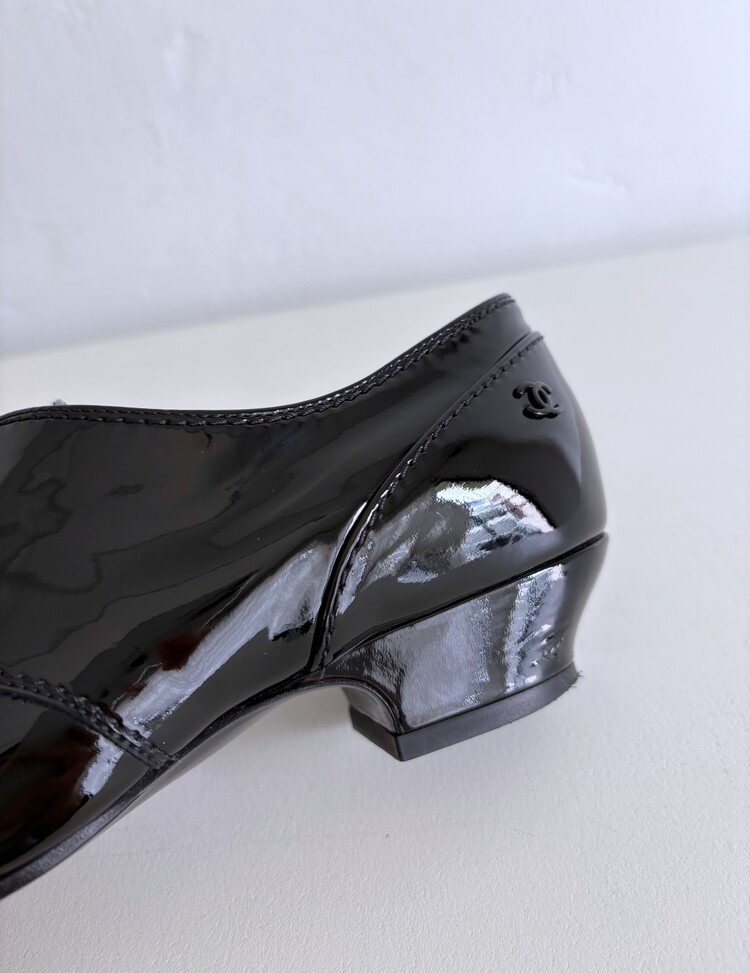 CHANEL Enamel Leather Lace-up Loafers (36)