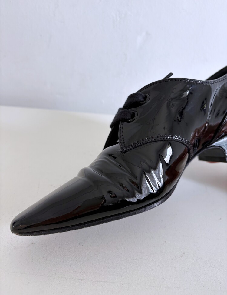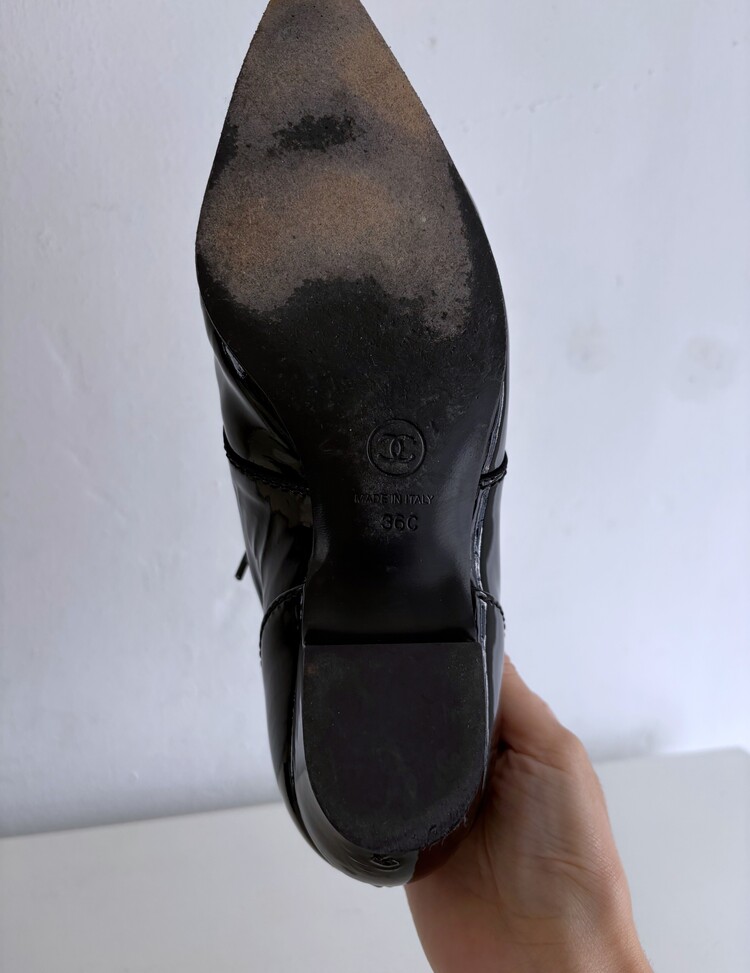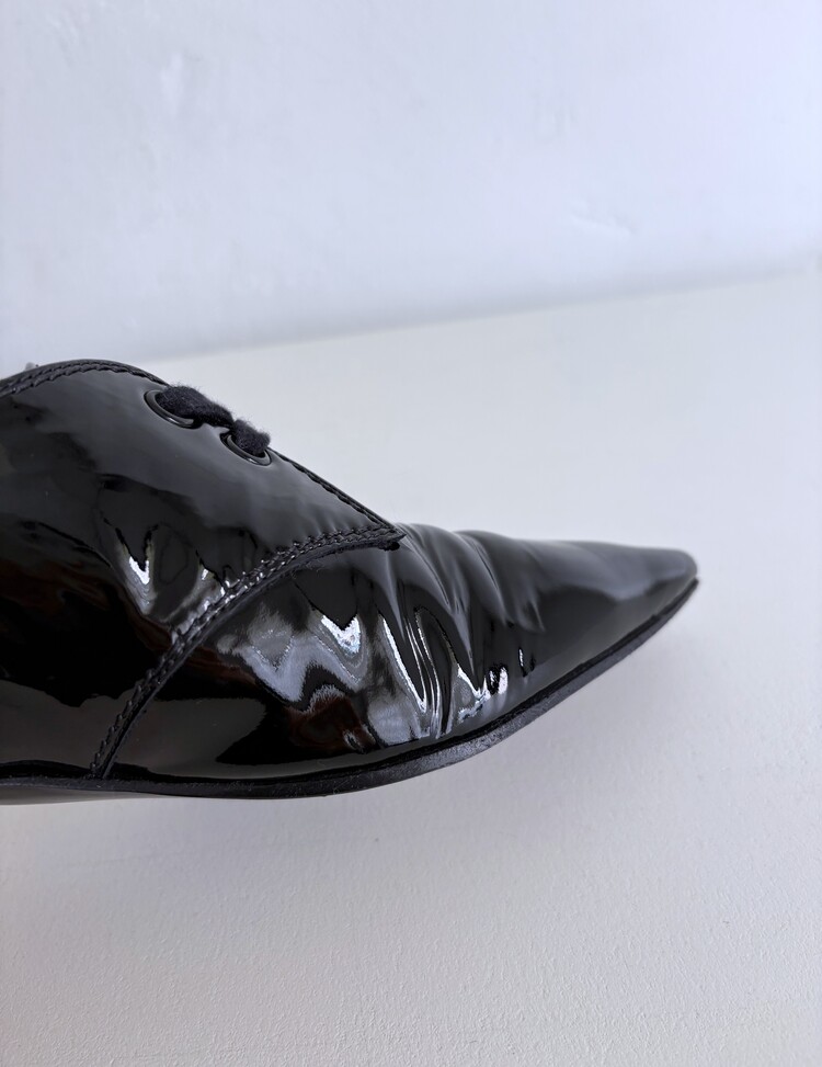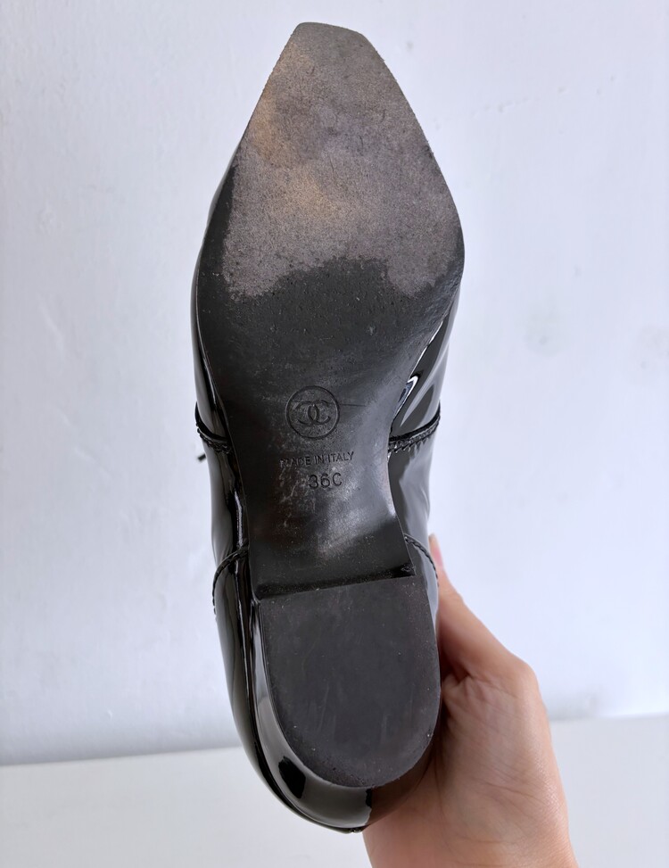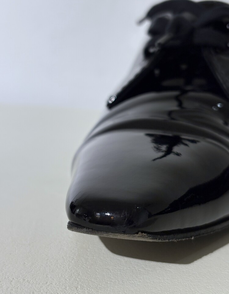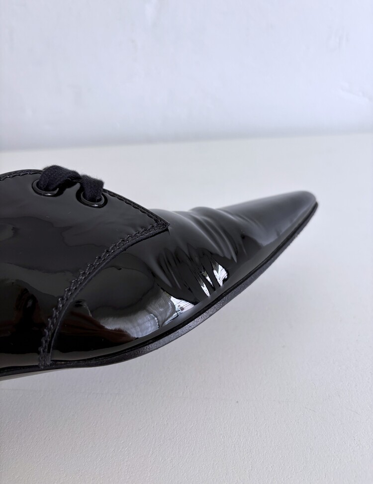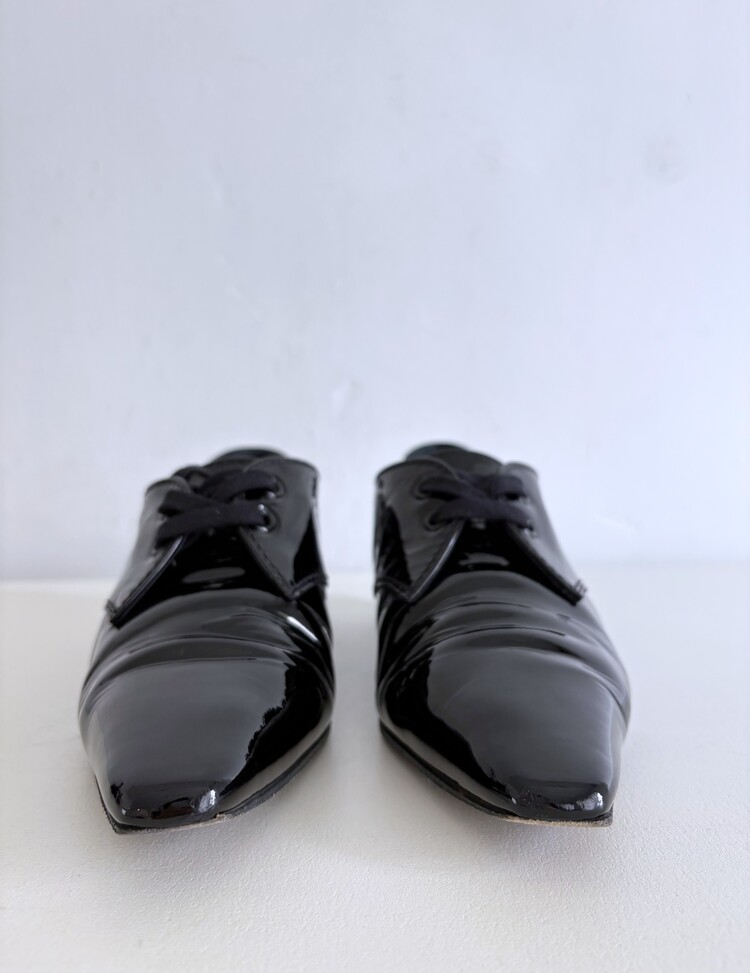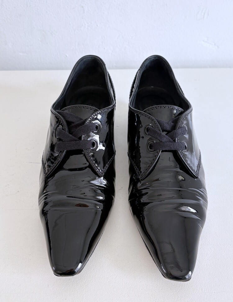 CHANEL Enamel Leather Lace-up Loafers (36)