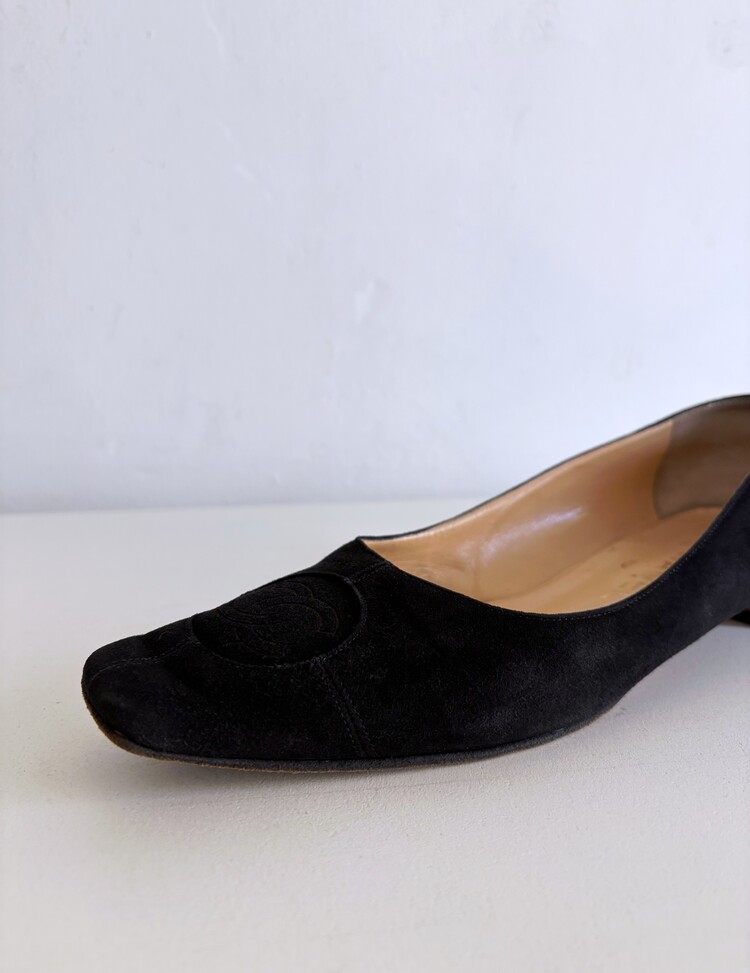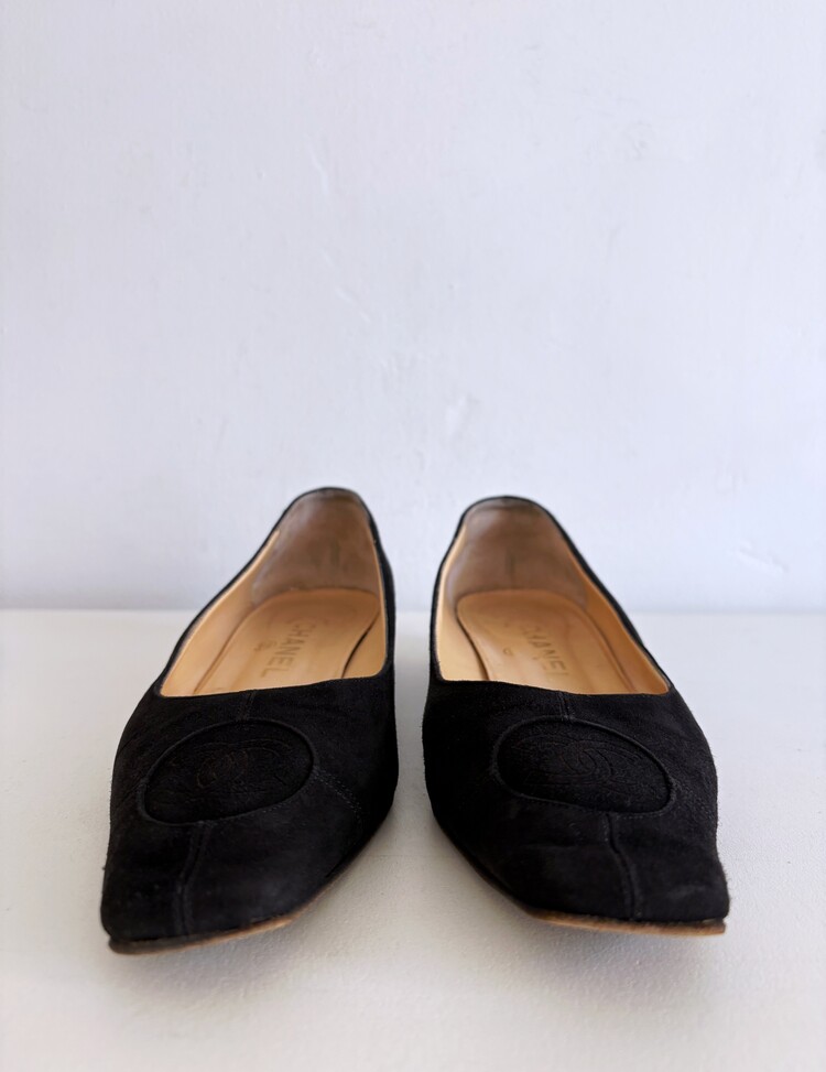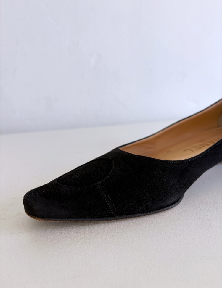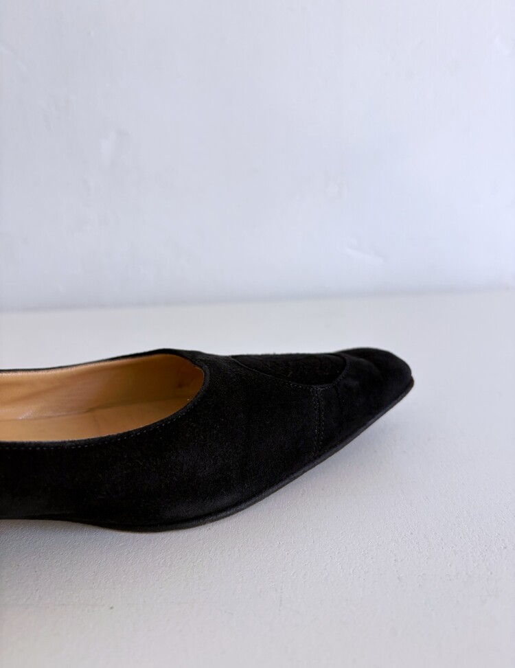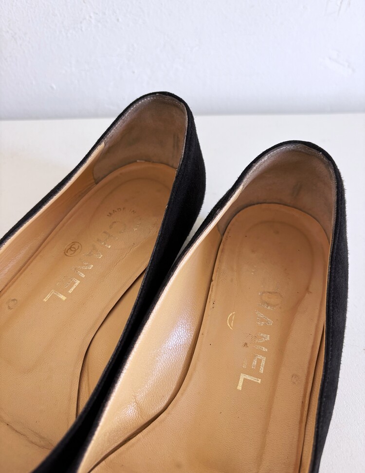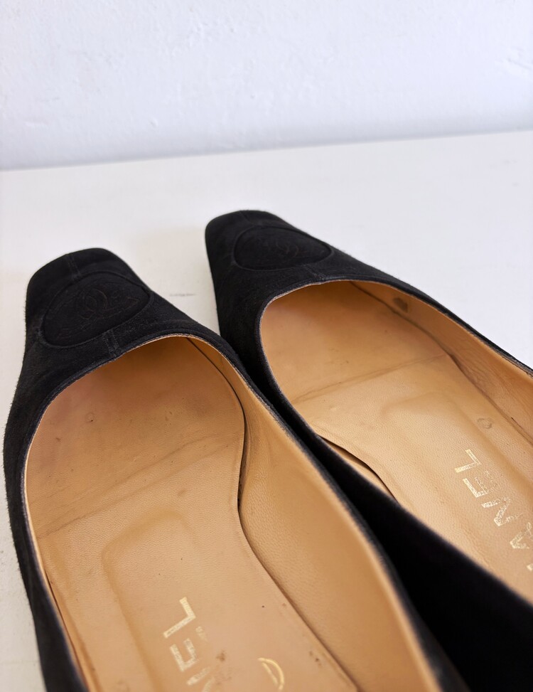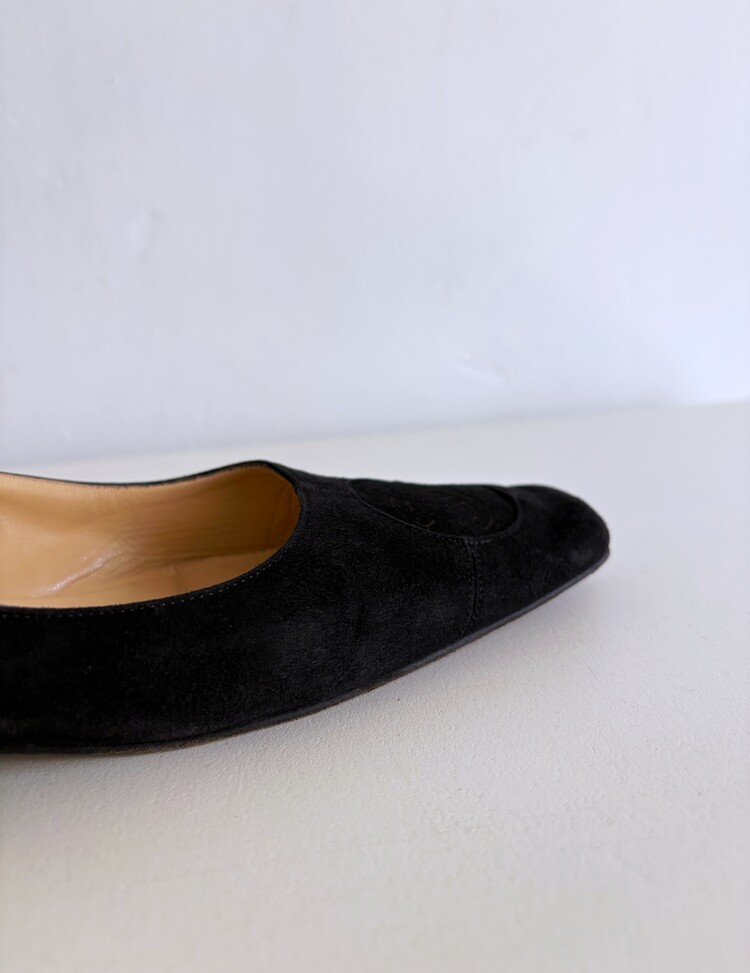 CHANEL Pressed Logo Suede Flats (36.5)