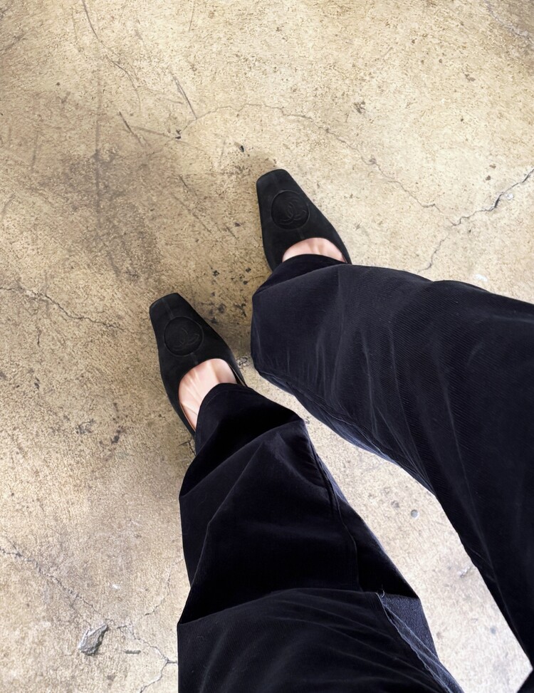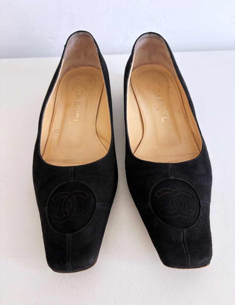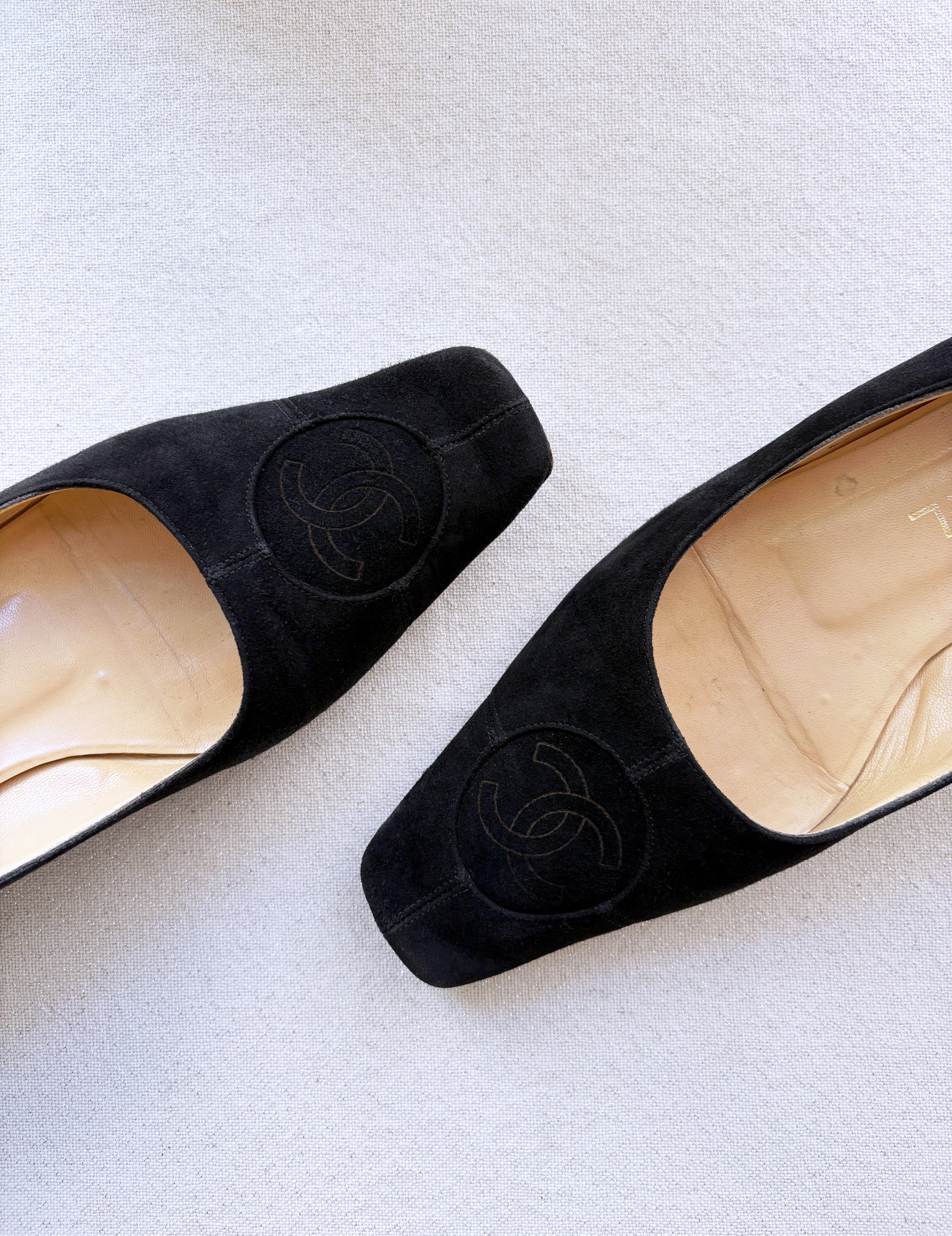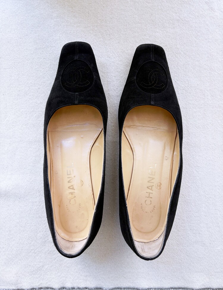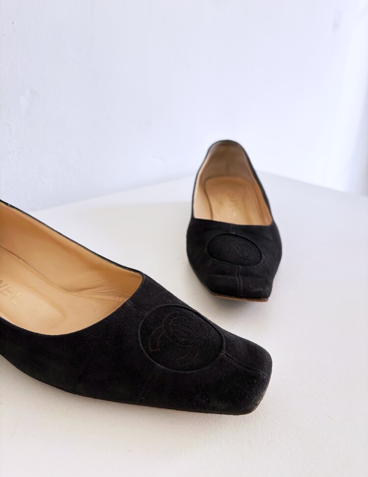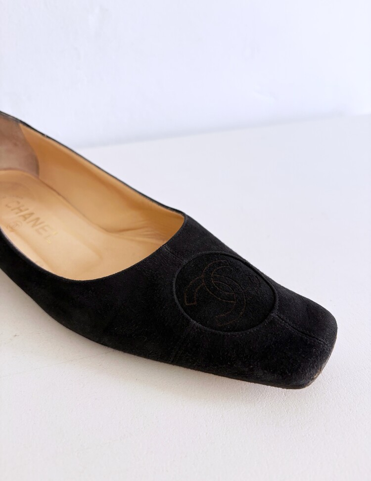 CHANEL Pressed Logo Suede Flats (36.5)