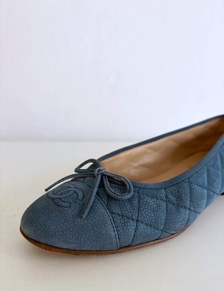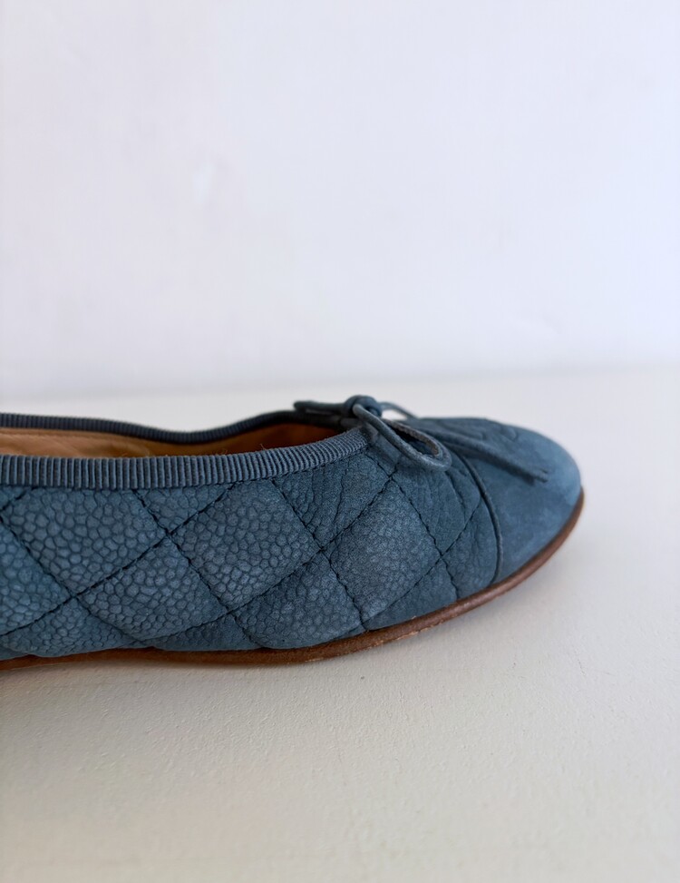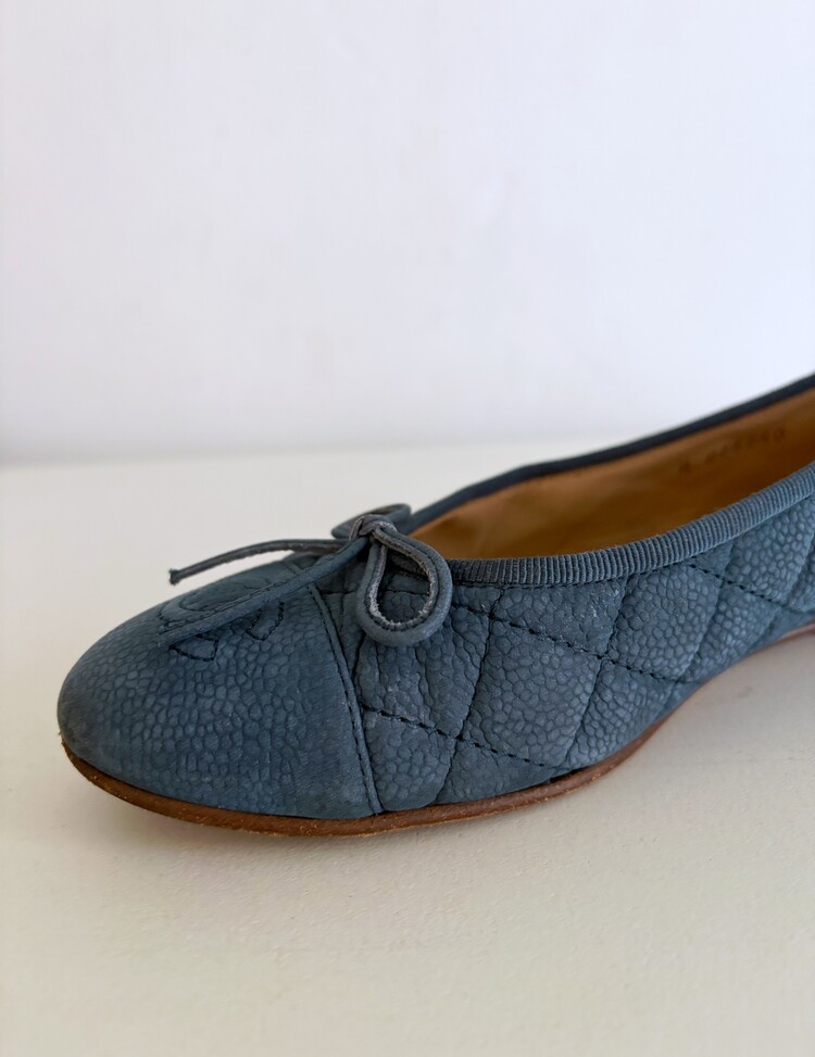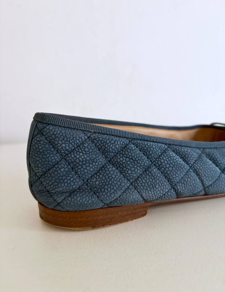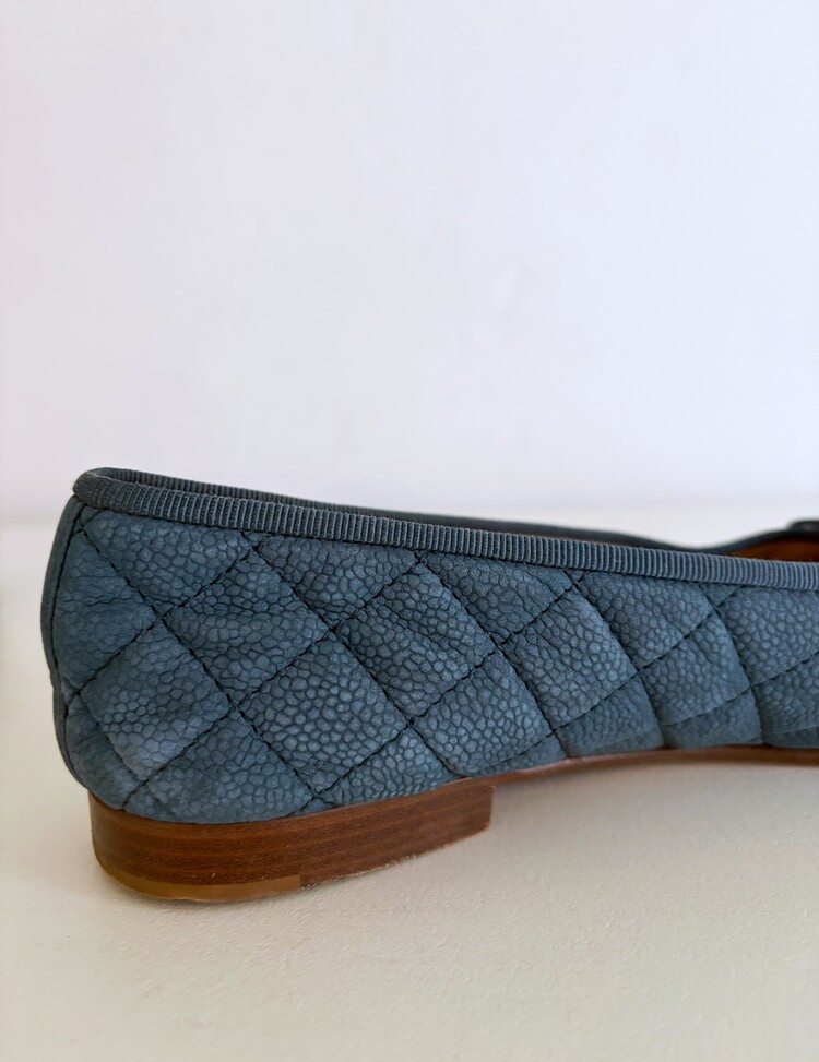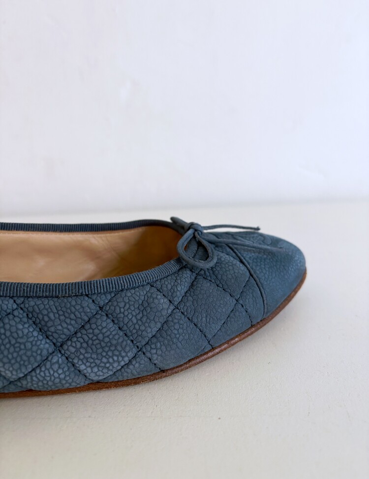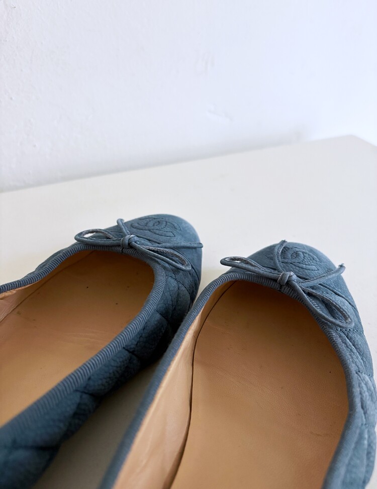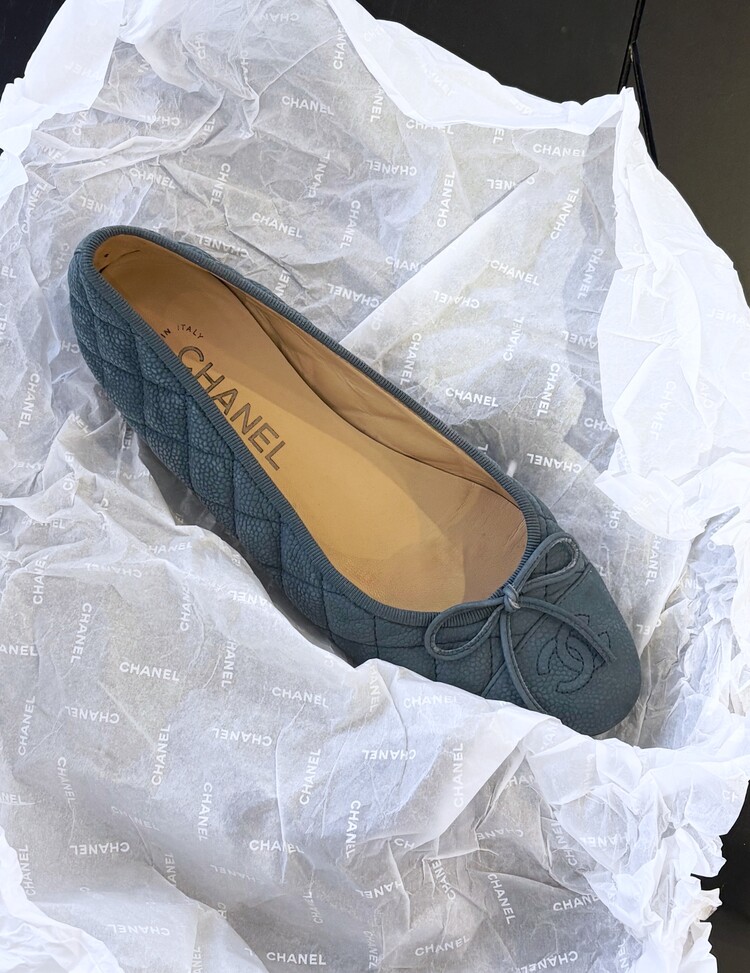 CHANEL Nubuck Caviar Leather Ribbon Flats (37.5)