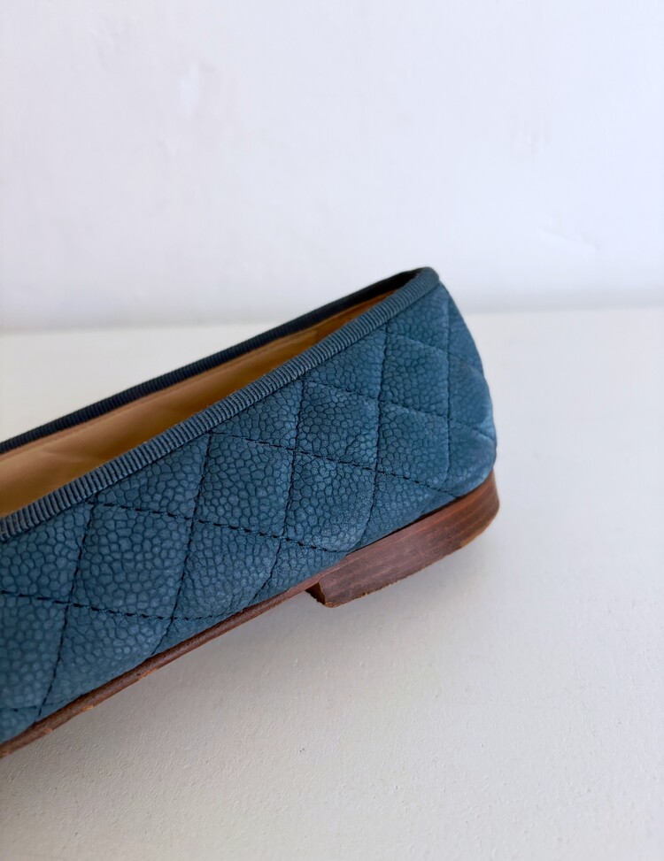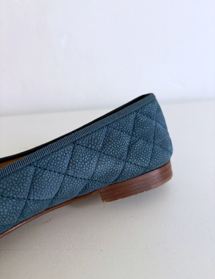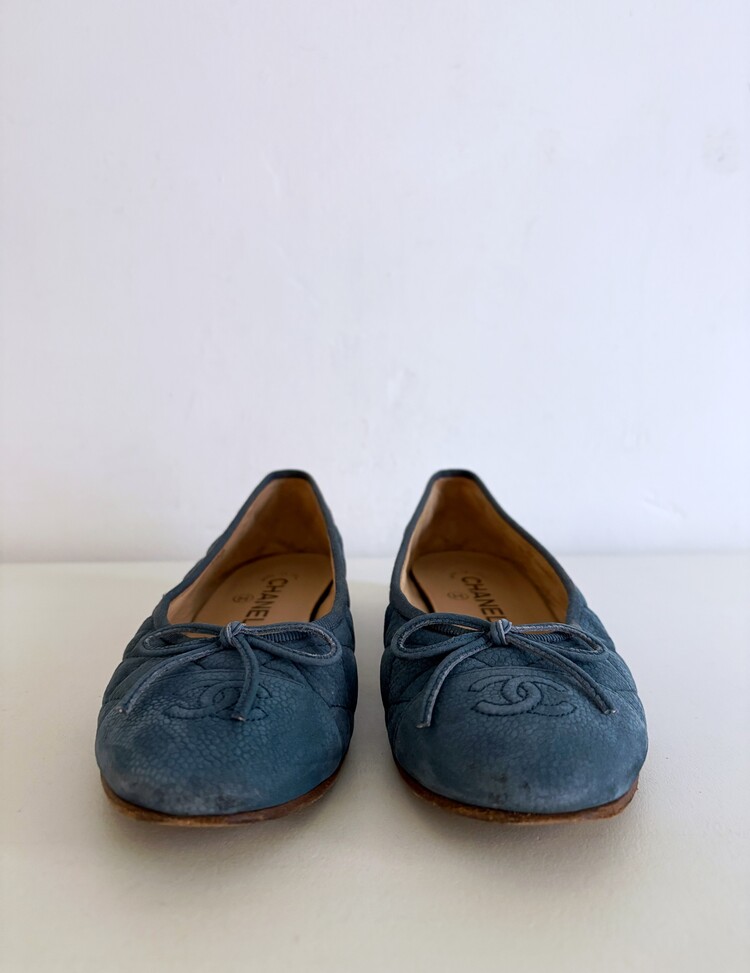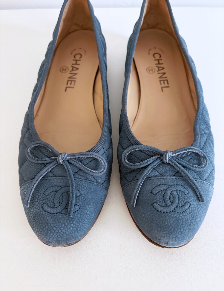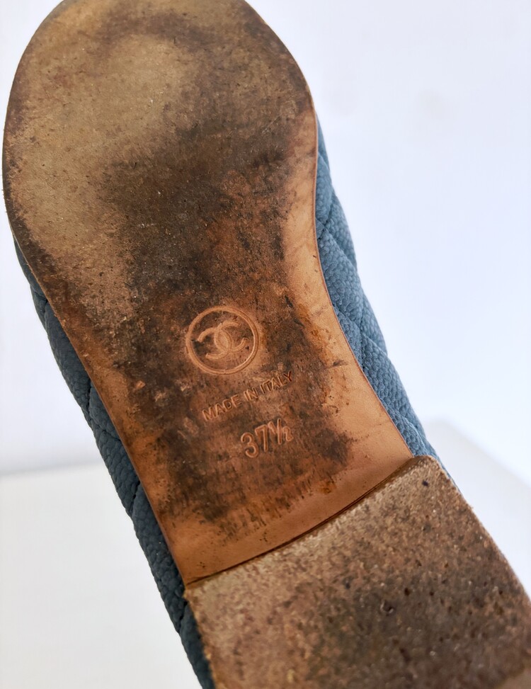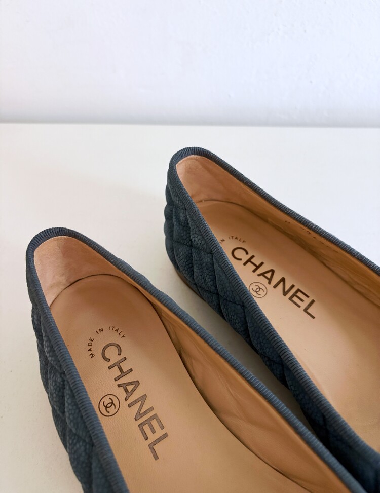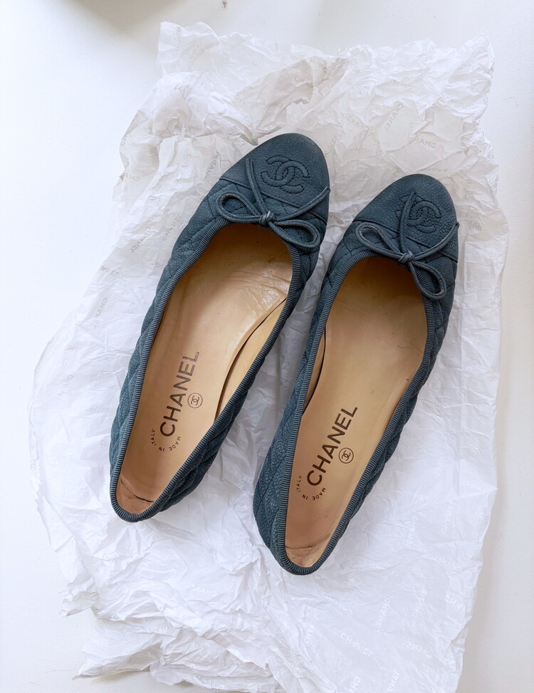 CHANEL Nubuck Caviar Leather Ribbon Flats (37.5)