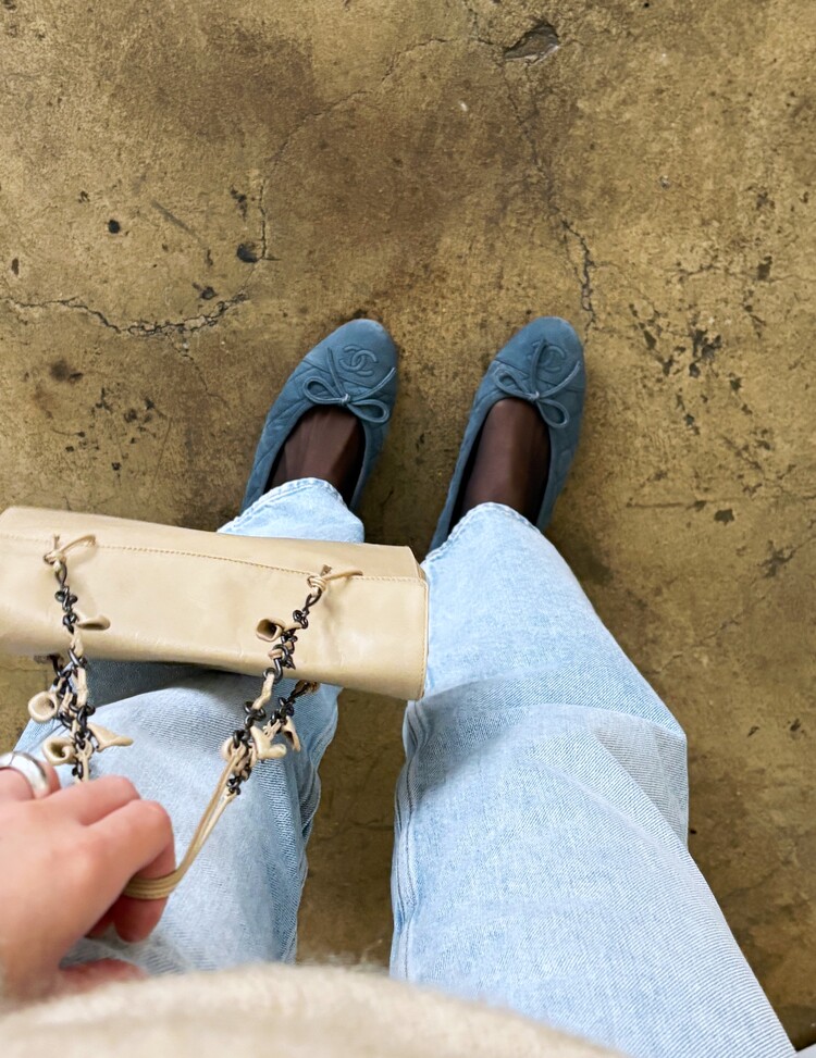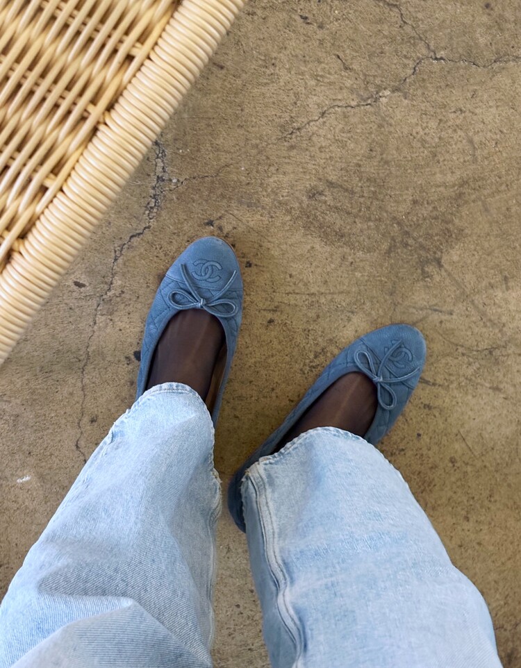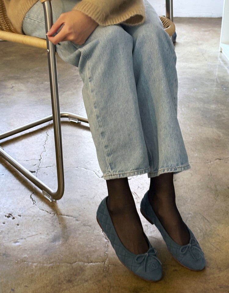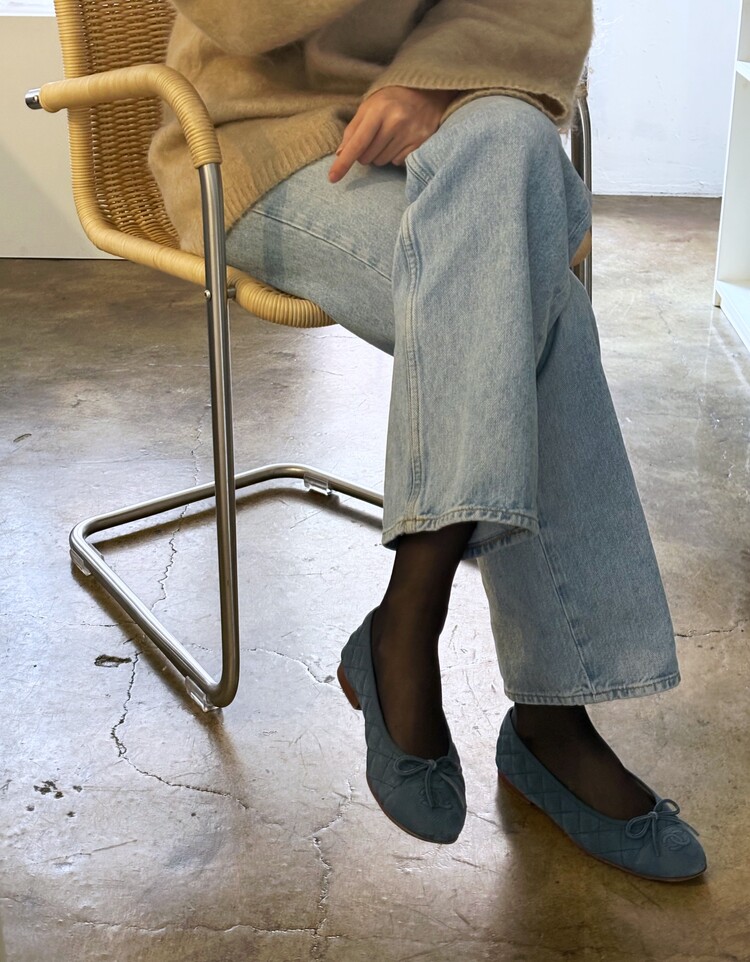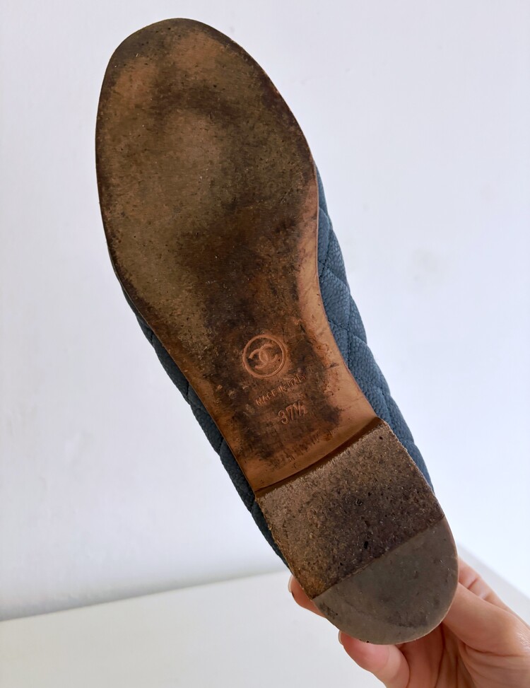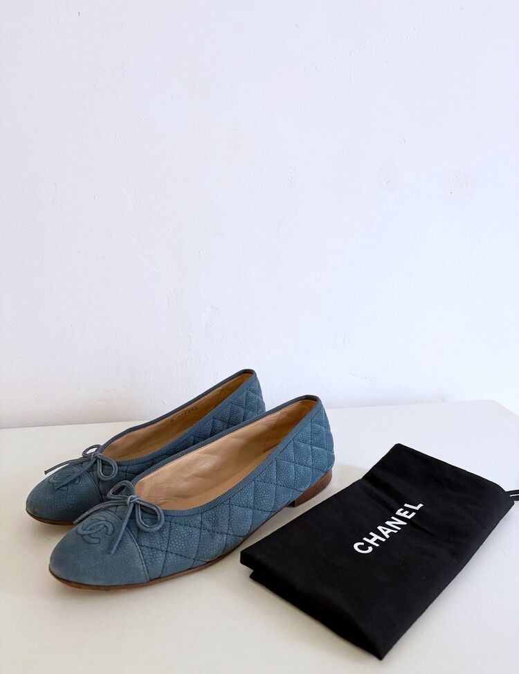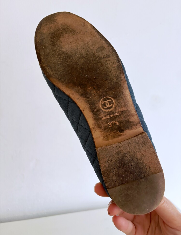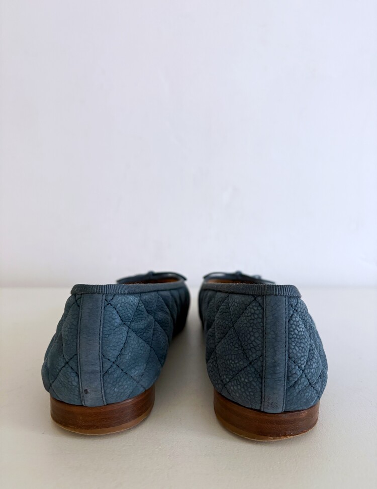 CHANEL Nubuck Caviar Leather Ribbon Flats (37.5)