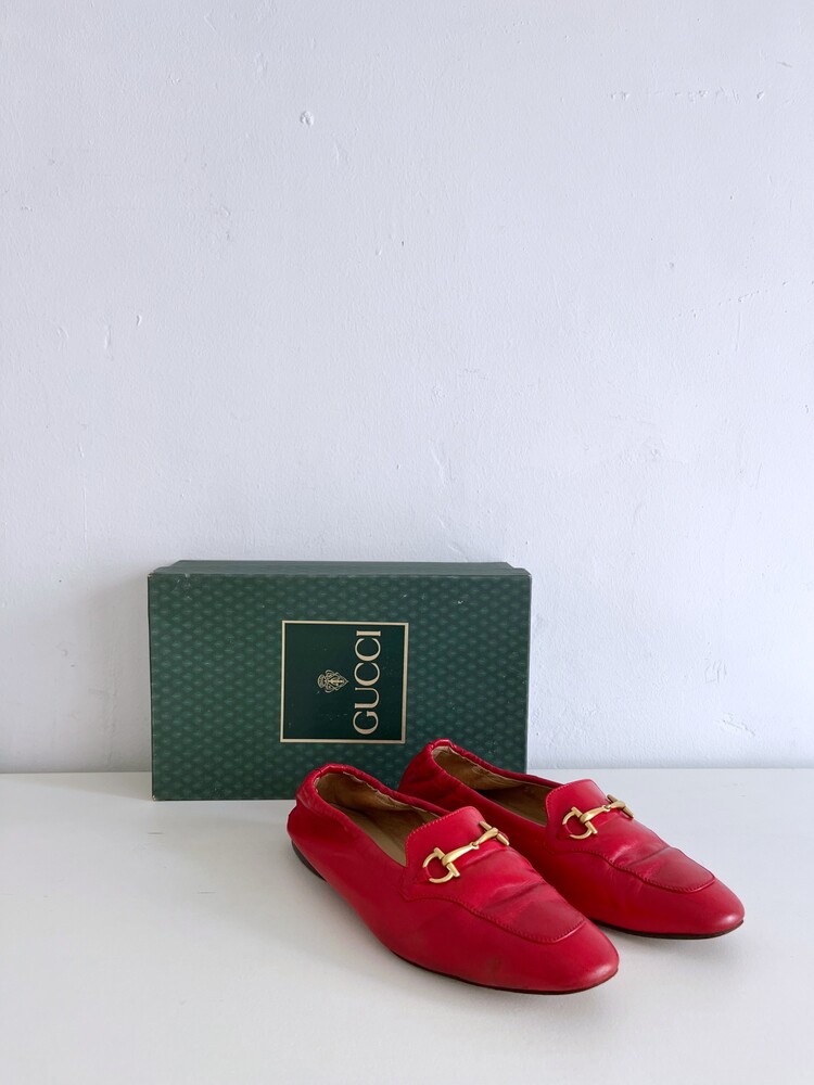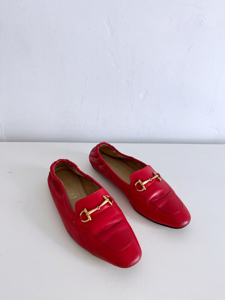 GUCCI Horsebit Leather Flats (37)