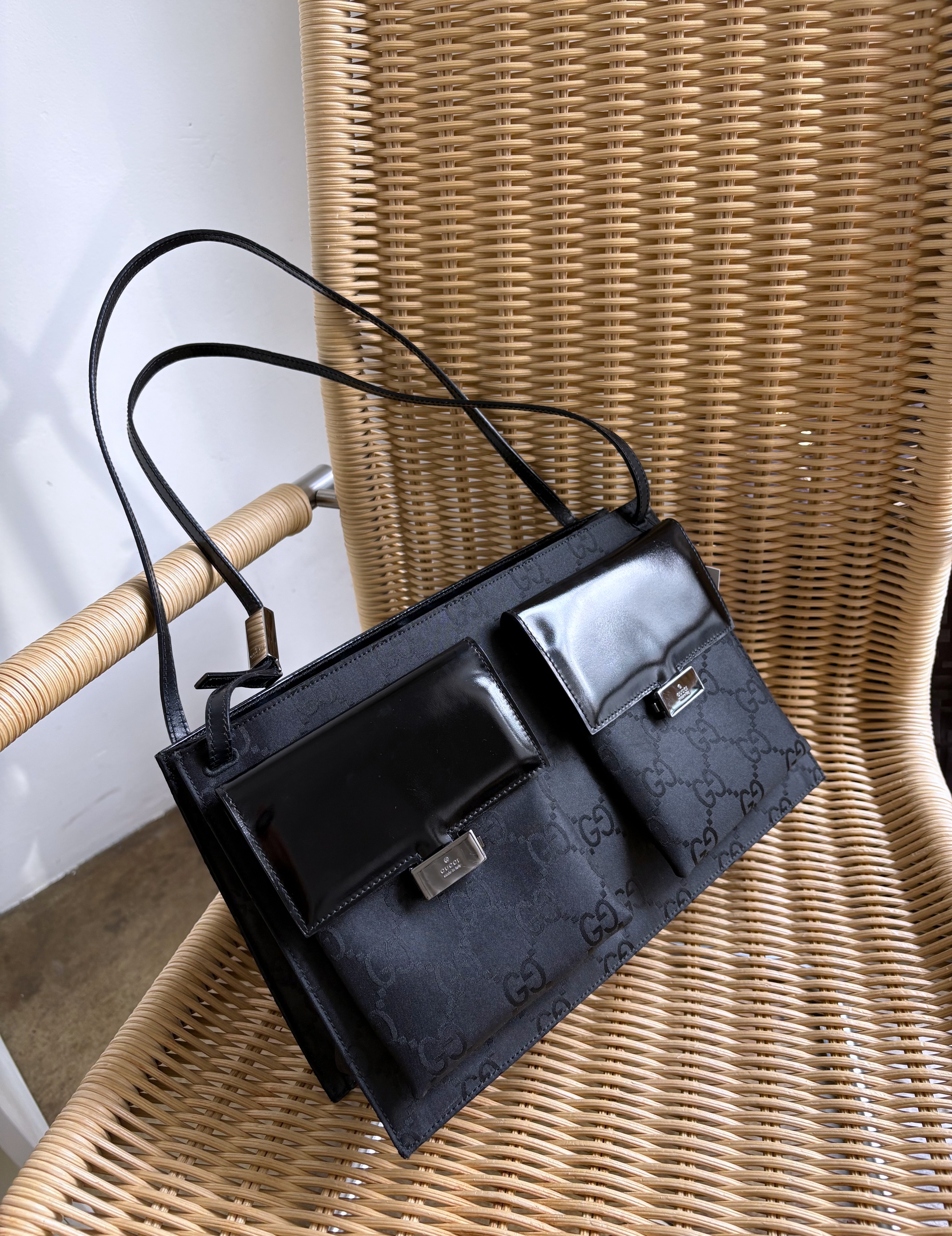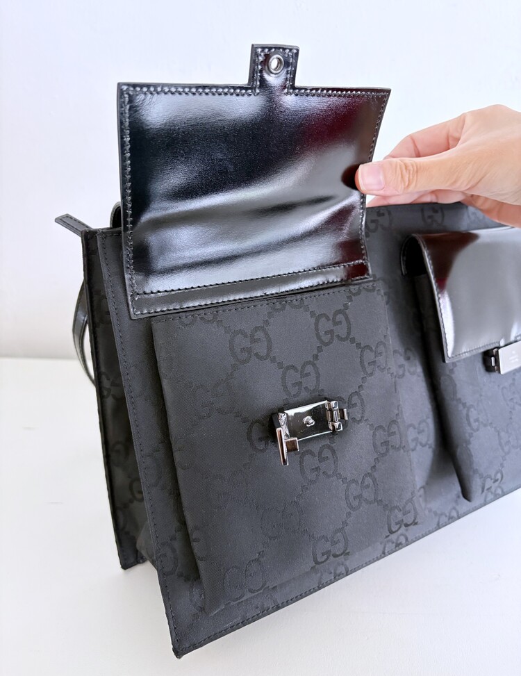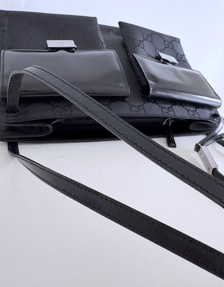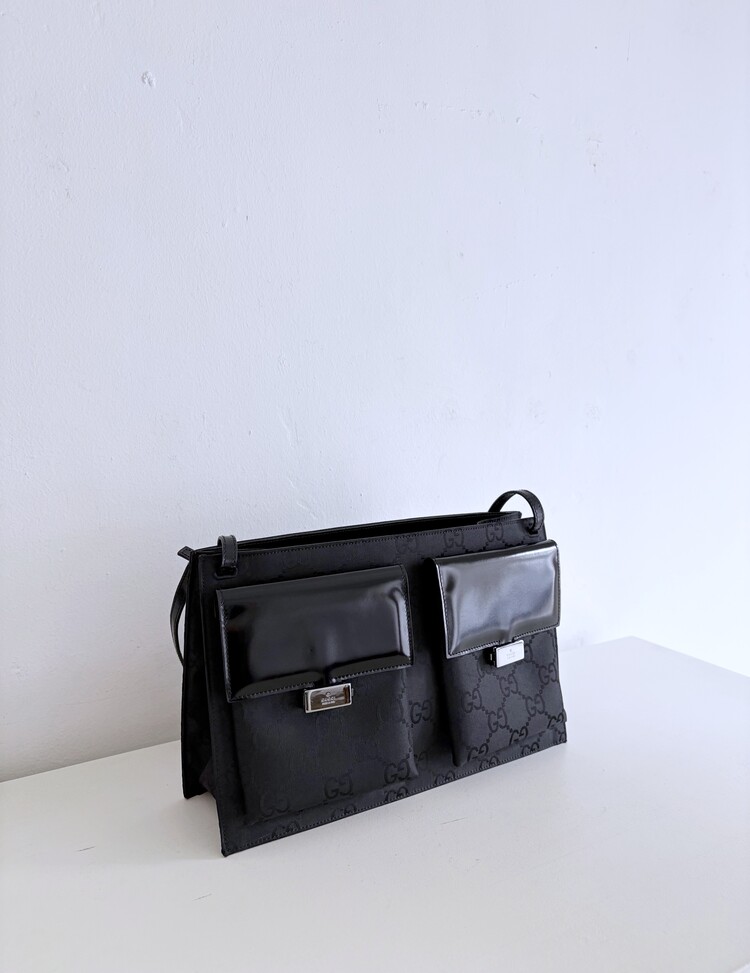 GUCCI Double Pocket GG Logo Jacquard Shoulder Bag
