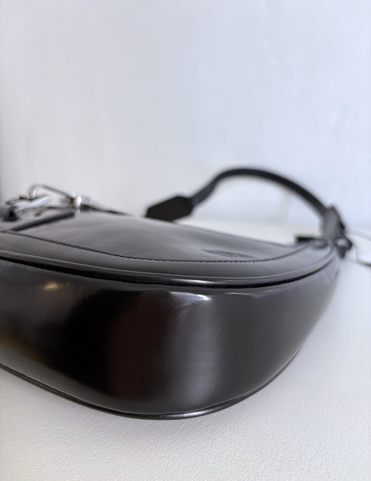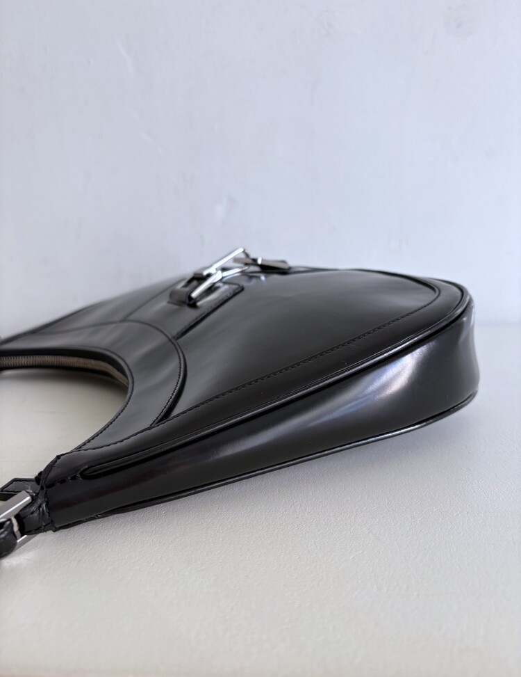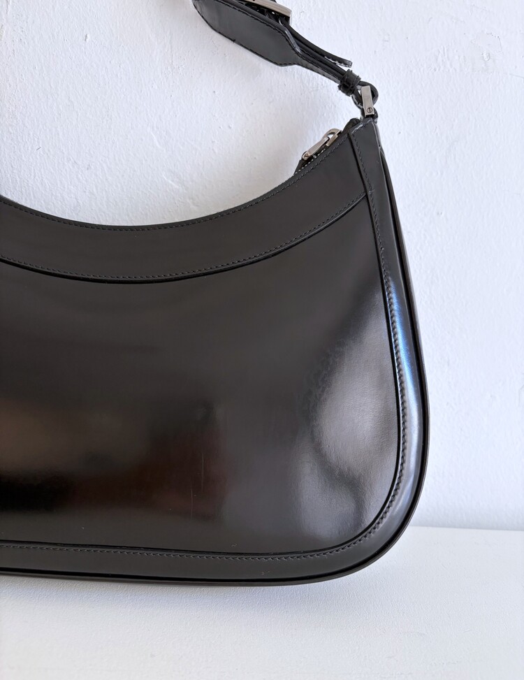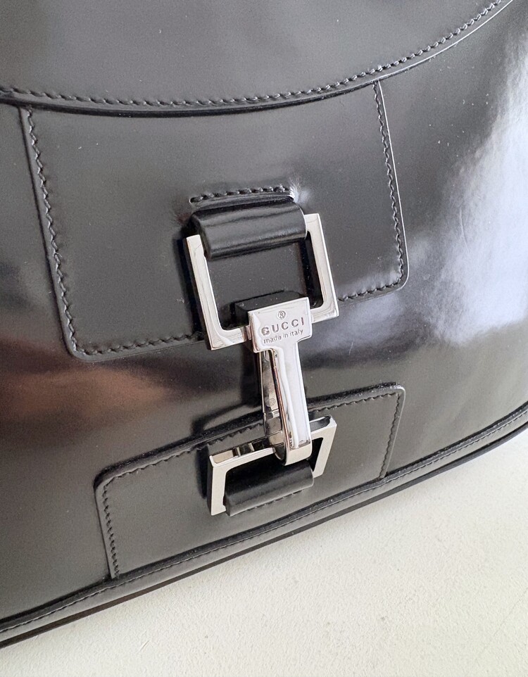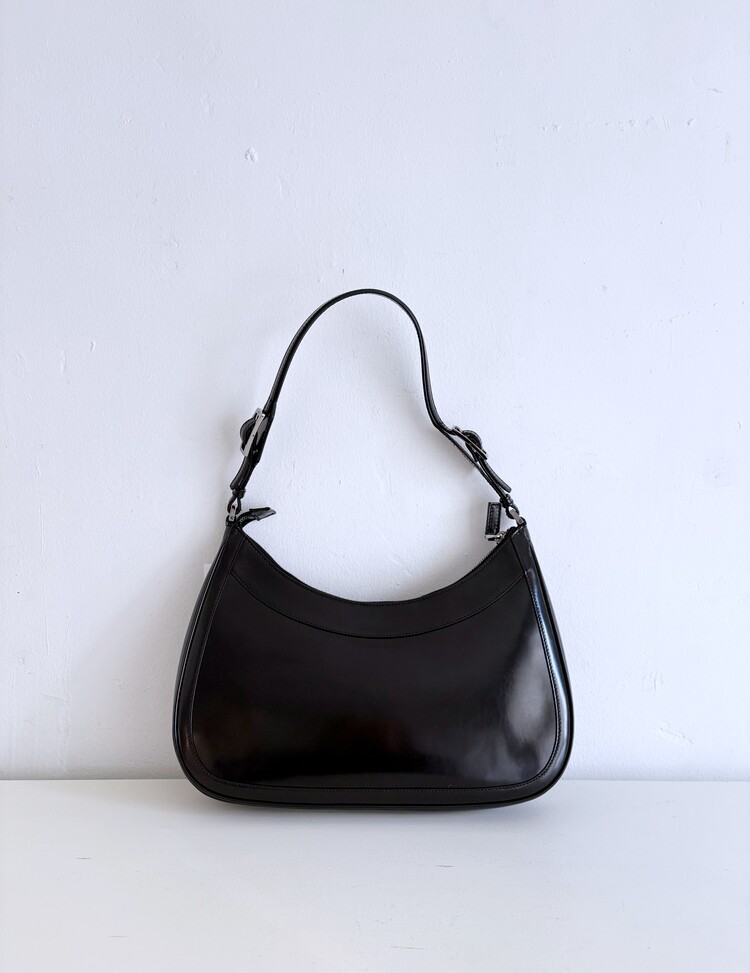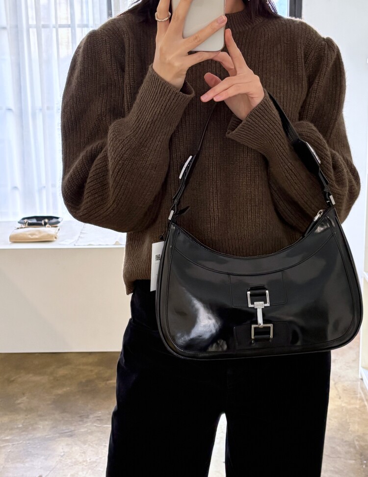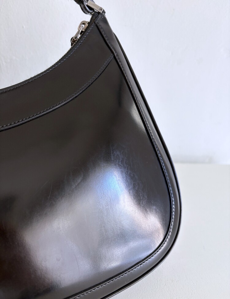 GUCCI Brushed Leather Logo Buckle Shoulder Bag