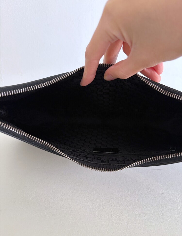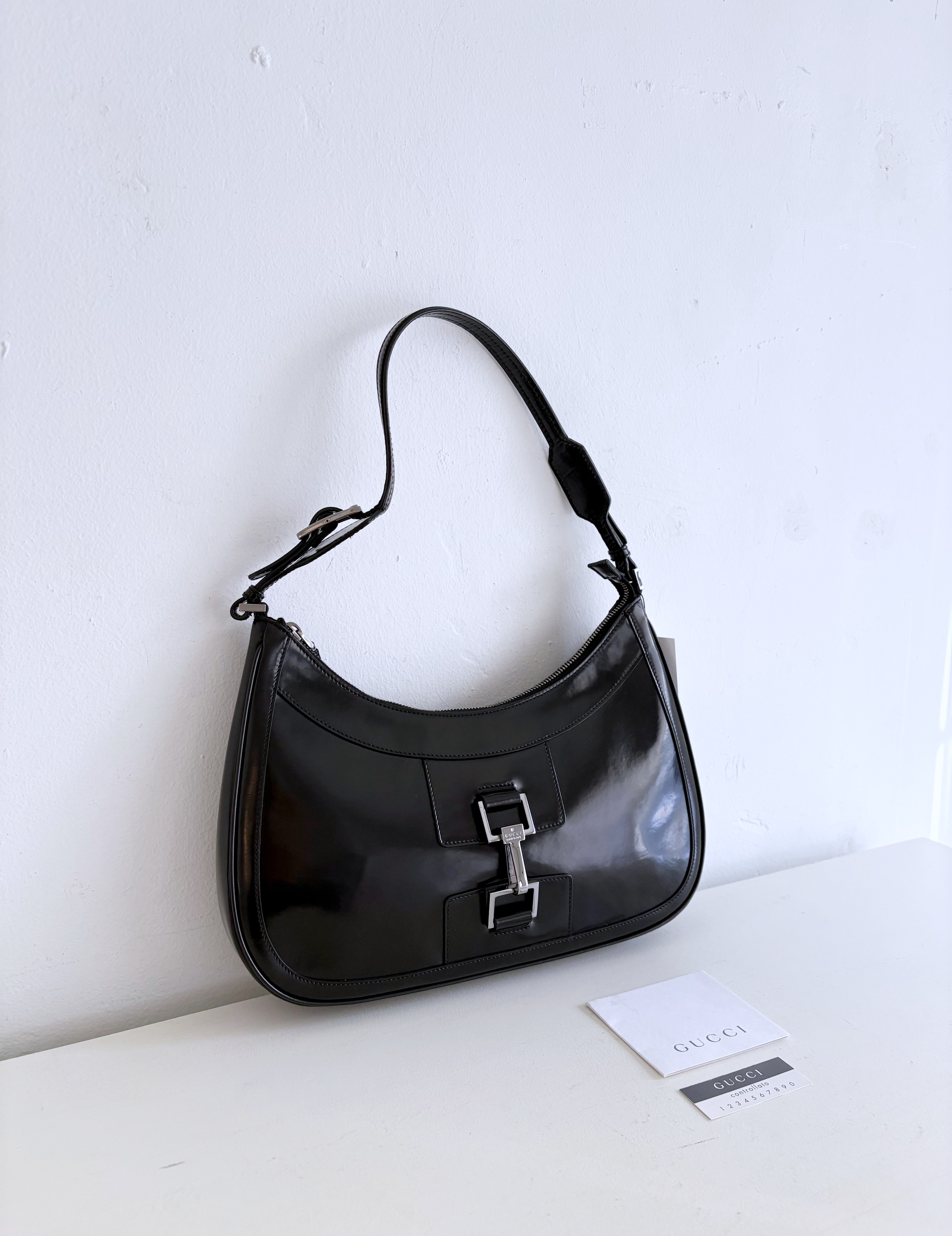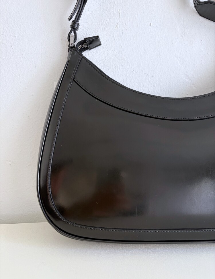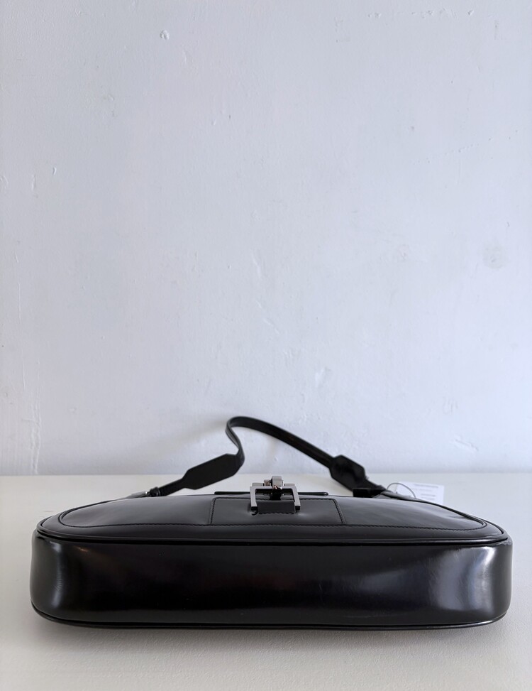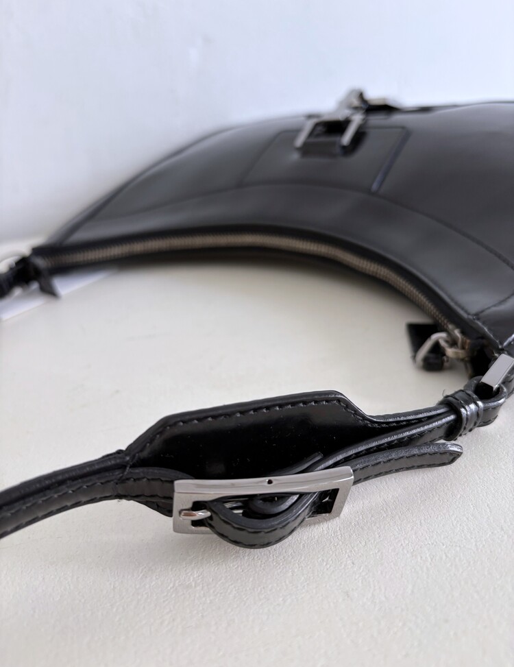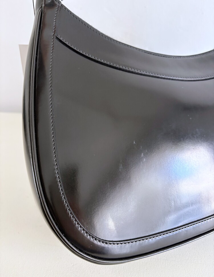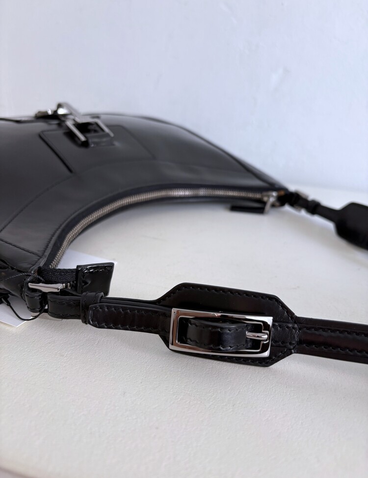 GUCCI Brushed Leather Logo Buckle Shoulder Bag