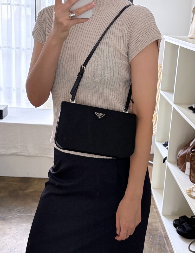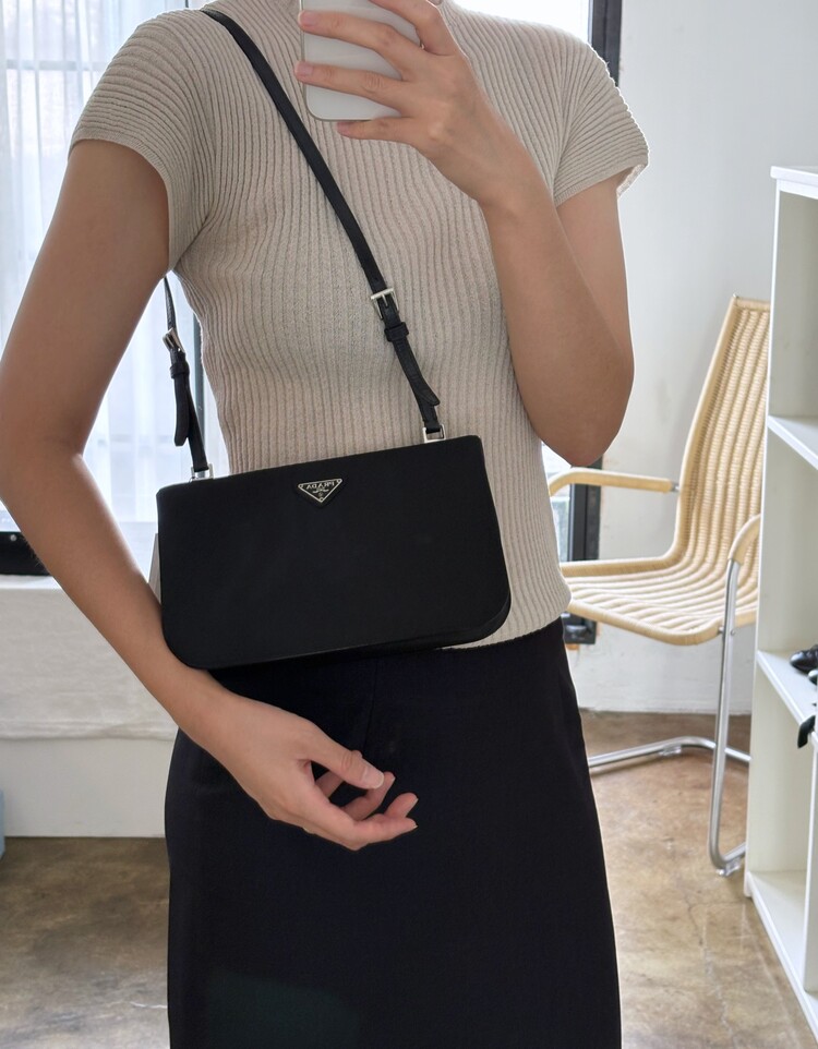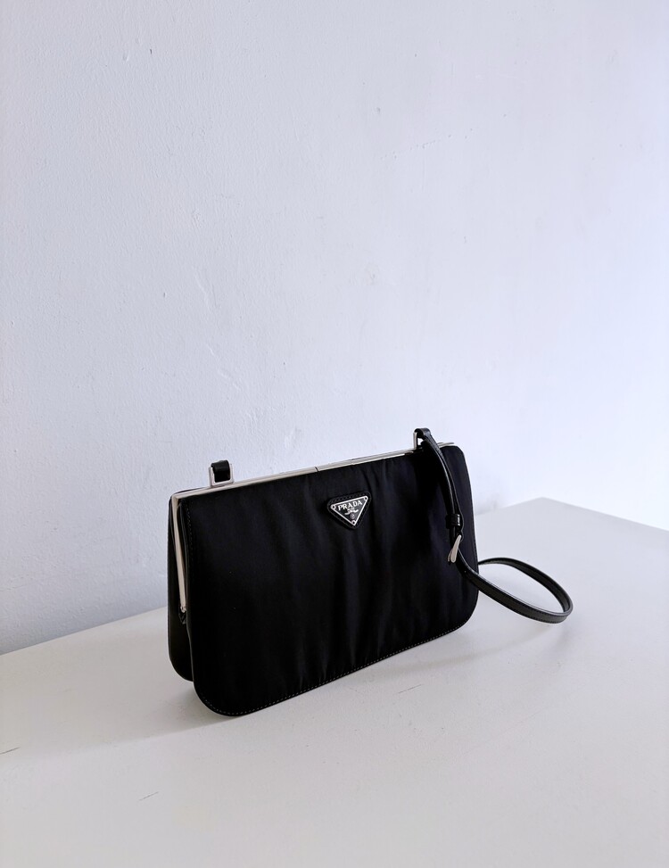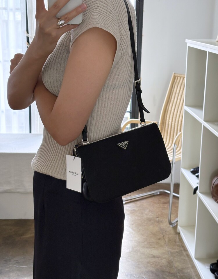 PRADA Pocono Leather Strap Clasp Shoulder Bag