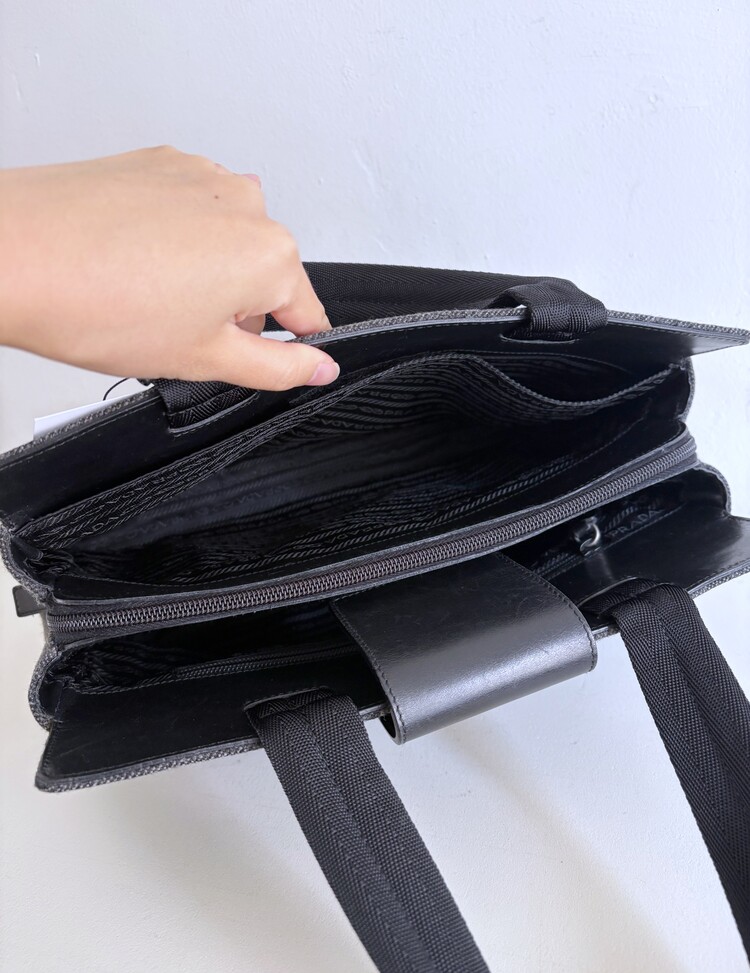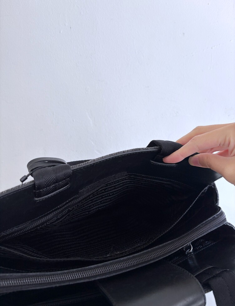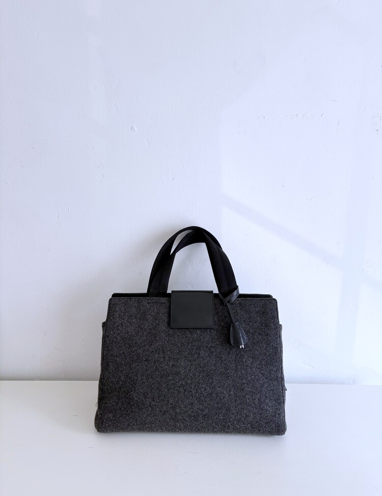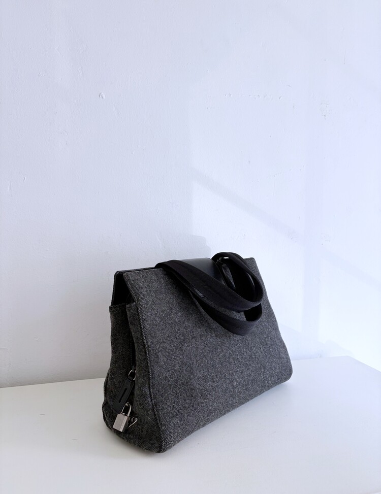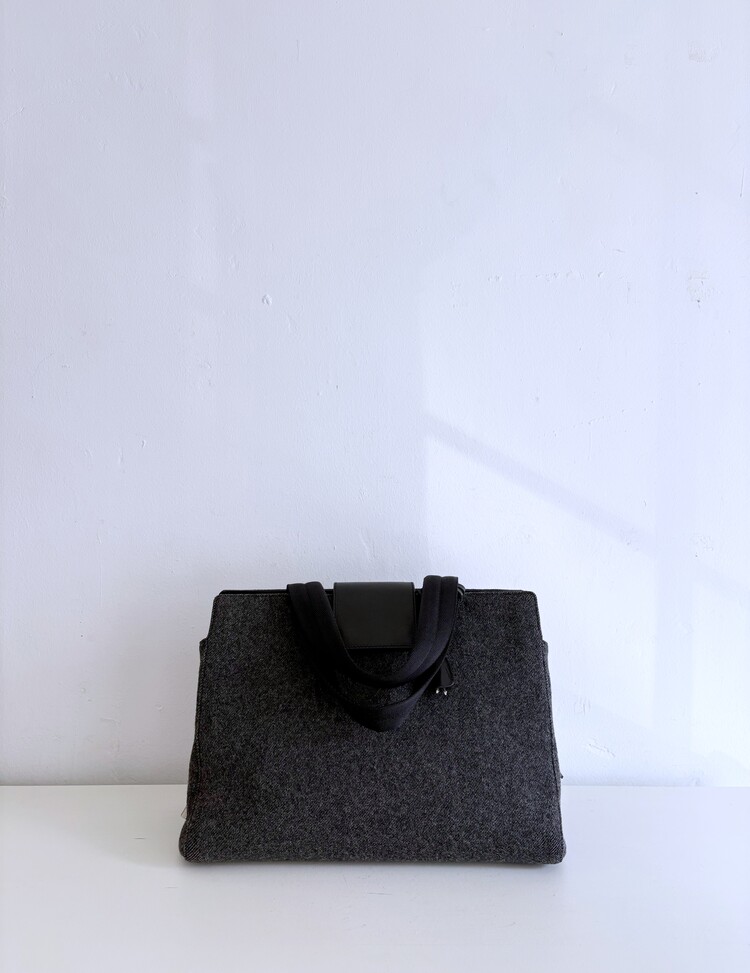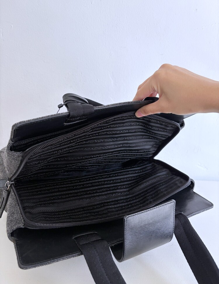 PRADA Wool Fabric Lock Satchel Tote Bag