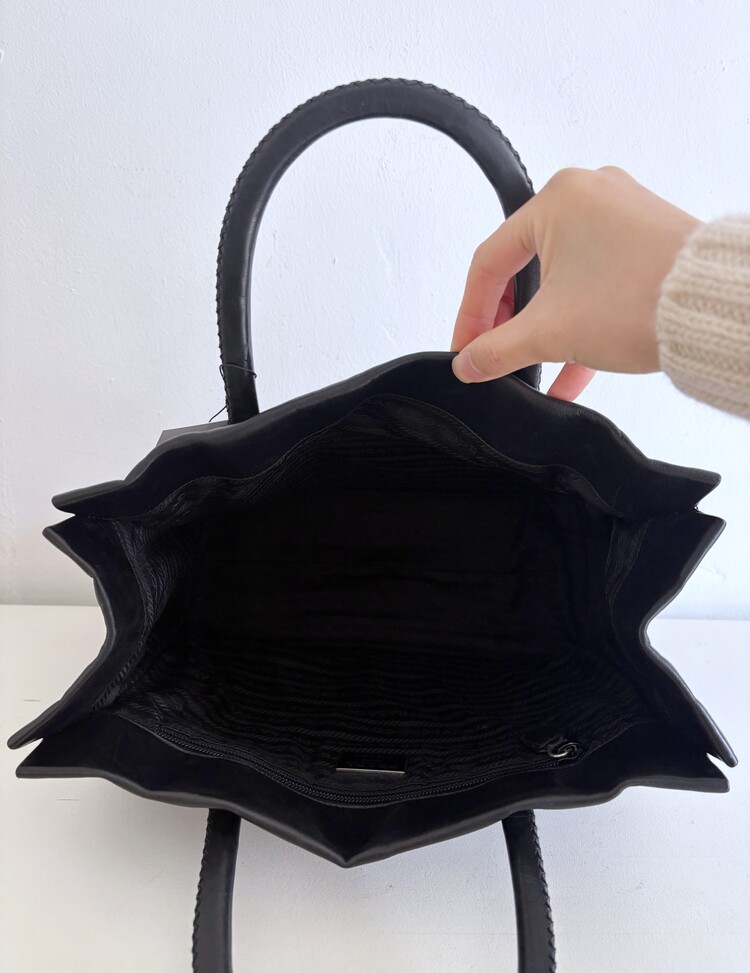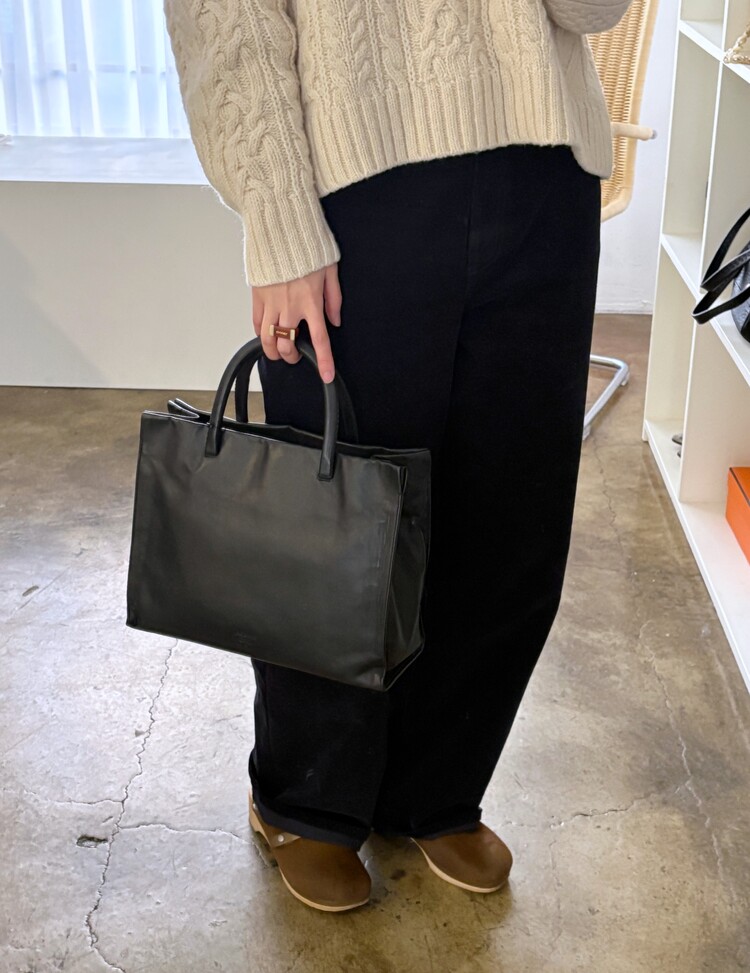 바디는 부드러운 레더 소재, 핸들 내부는 하드한 소재로 되어있어 놓았을때 자연스럽게 핸들이 양옆으로 벌어질 수 있습니다.