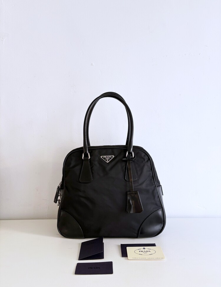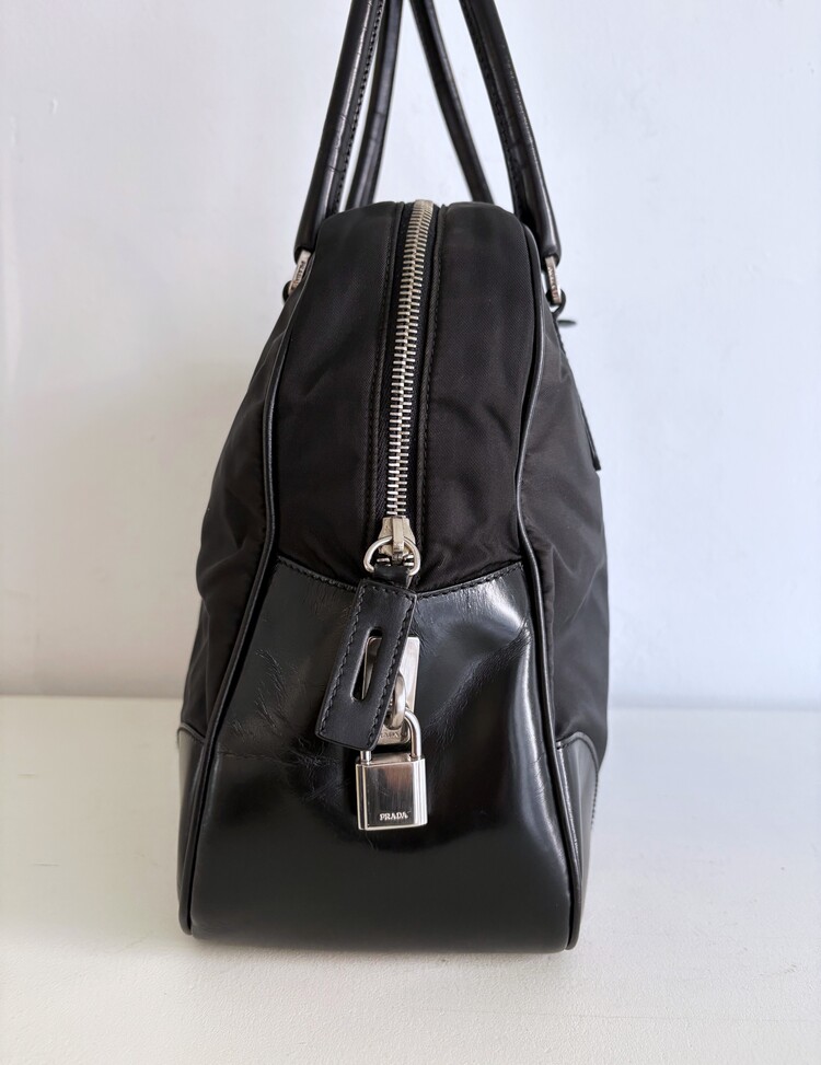 PRADA Leather Strap Pocono Lock Satchel Tote Bag
