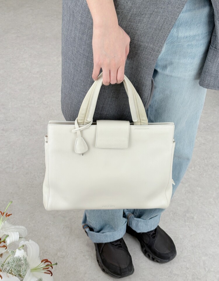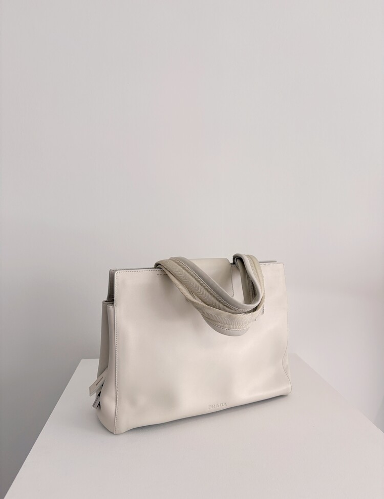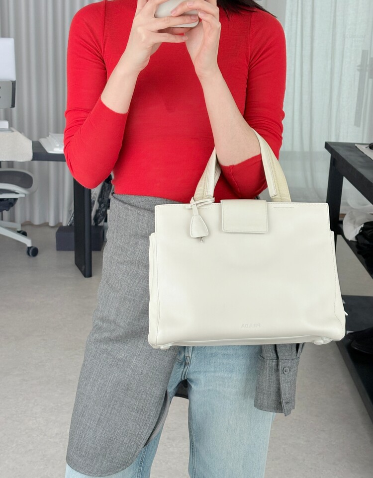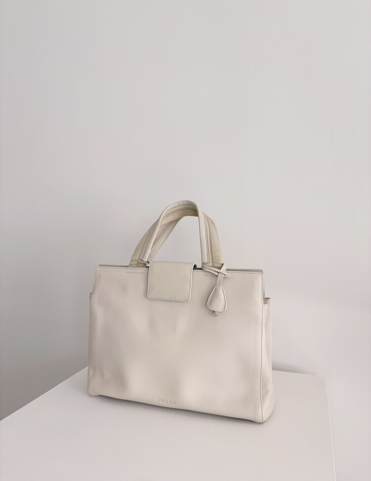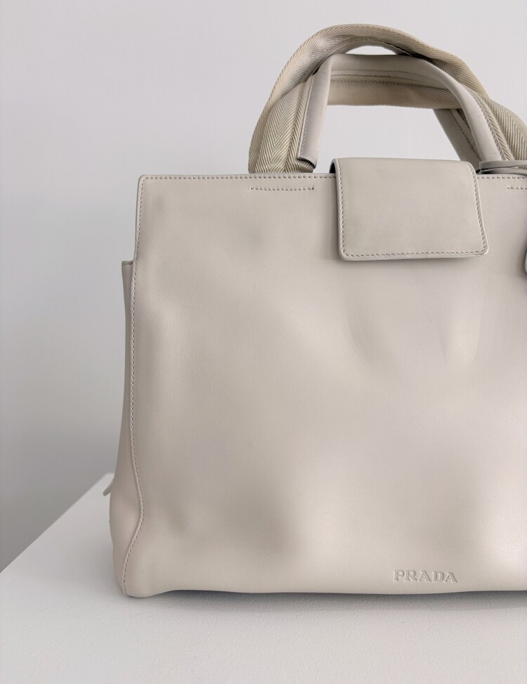 PRADA Leather Lock Satchel Tote Bag