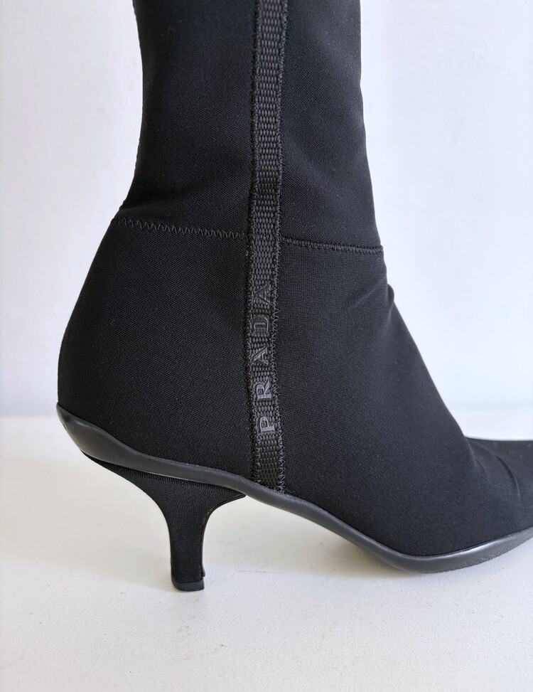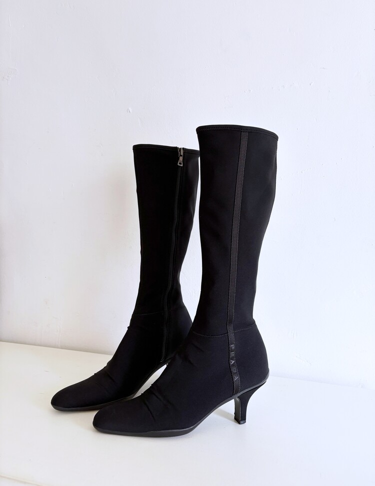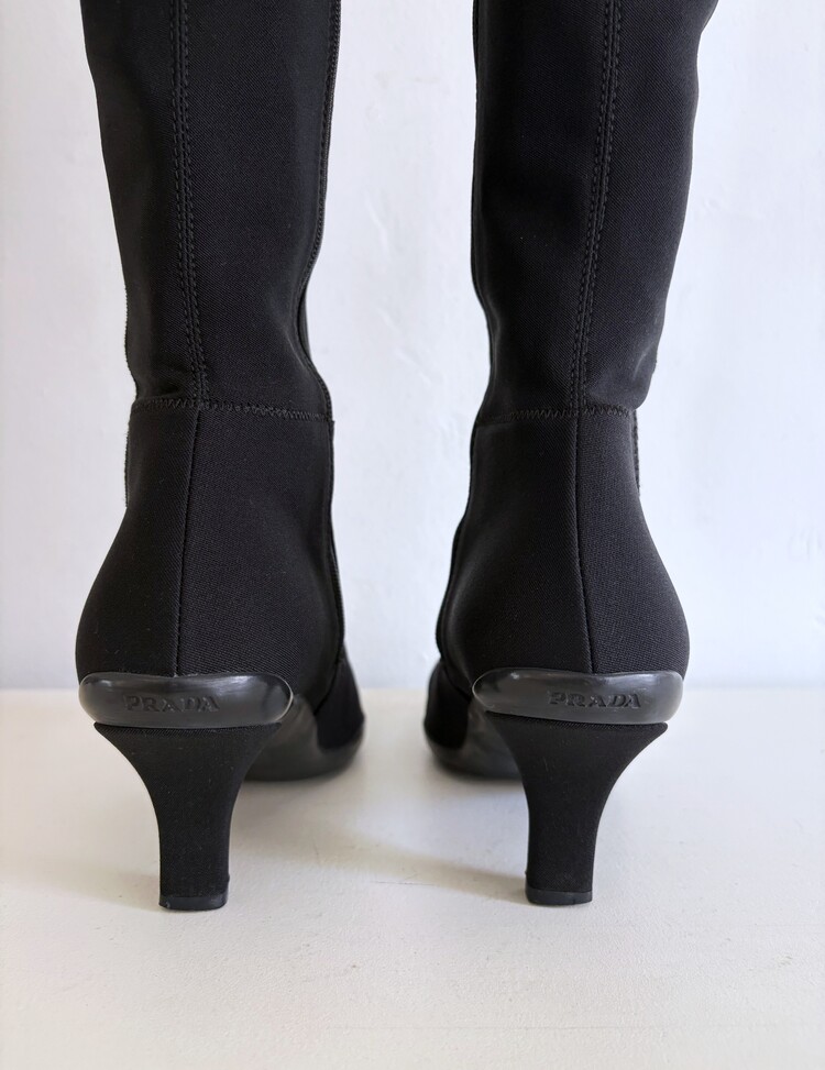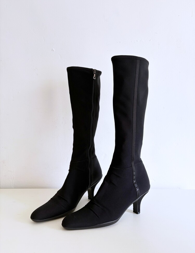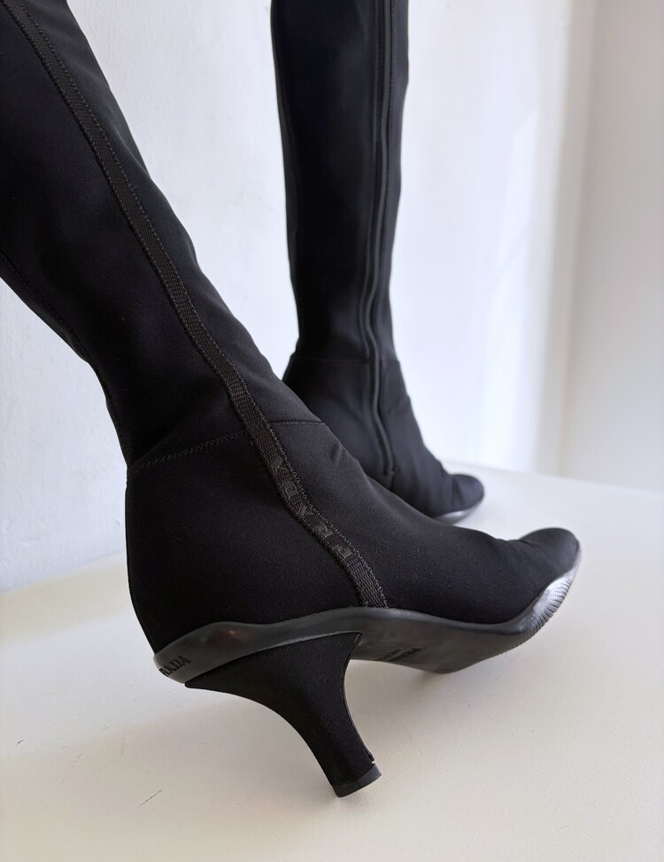 PRADA Sport Stretch Tricot Fabric Long Boots (36)