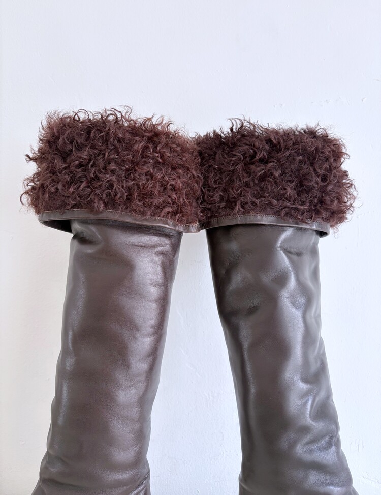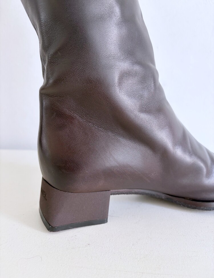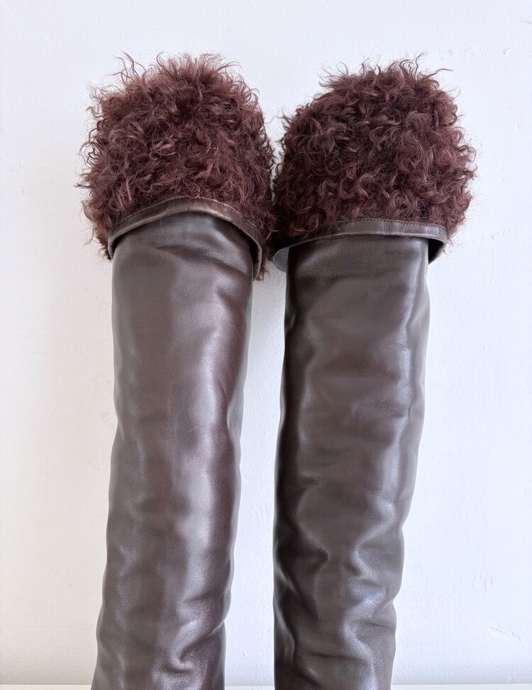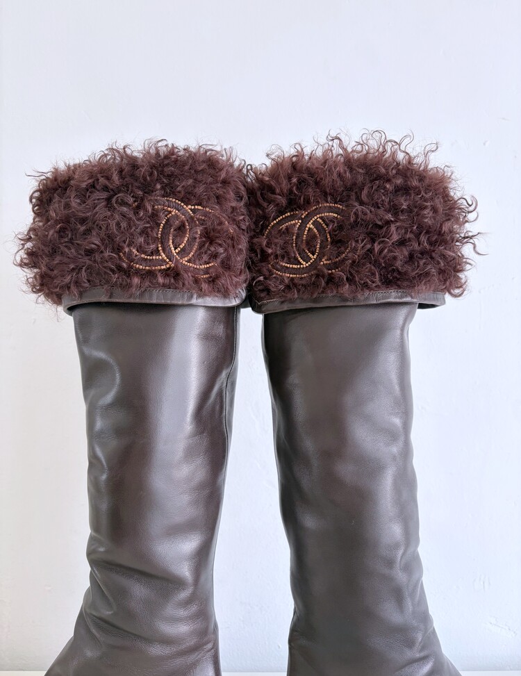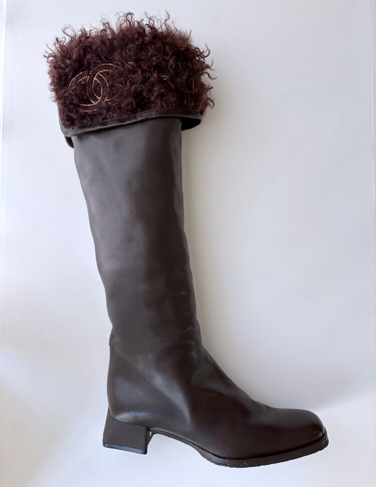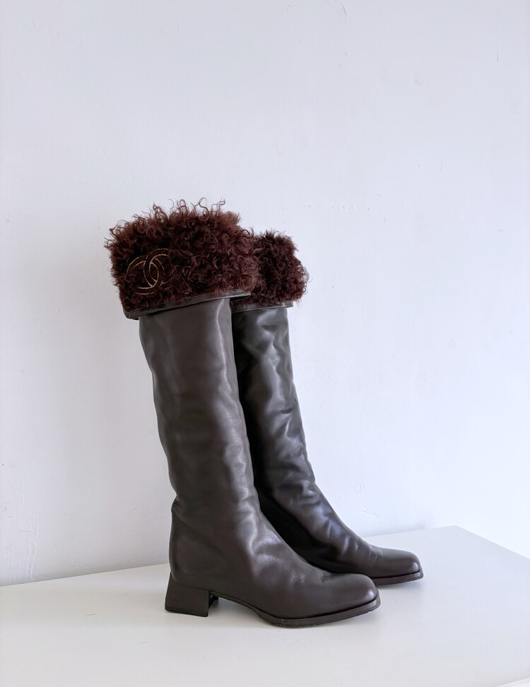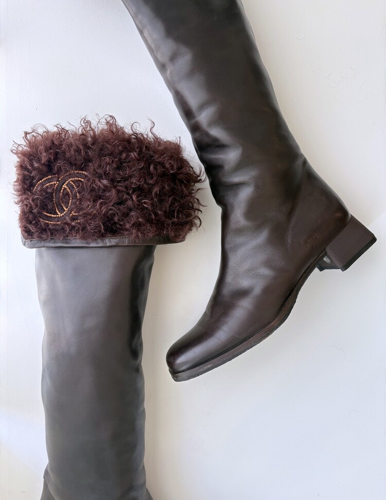 CHANEL Shearing Cuff Leather Boots (36.5)
