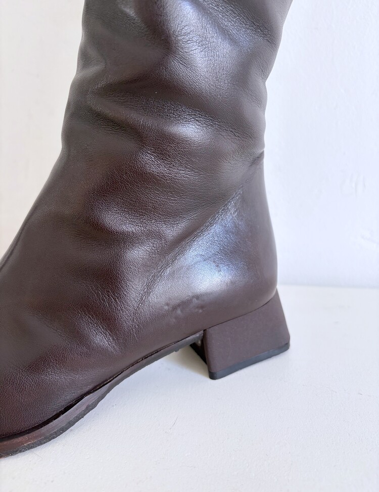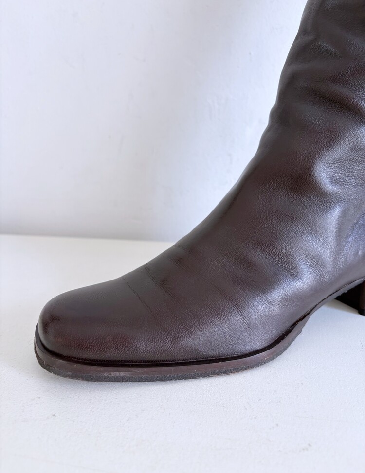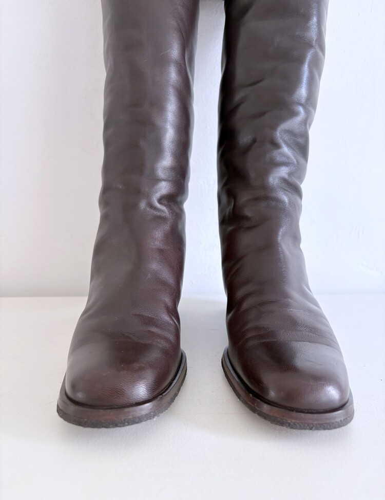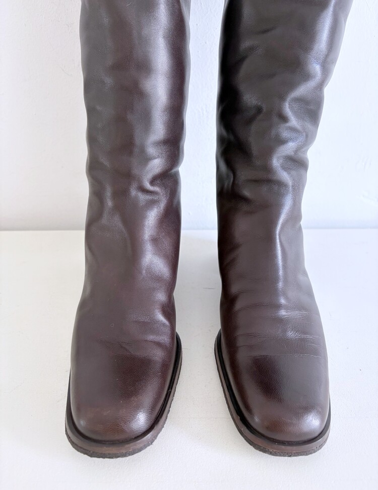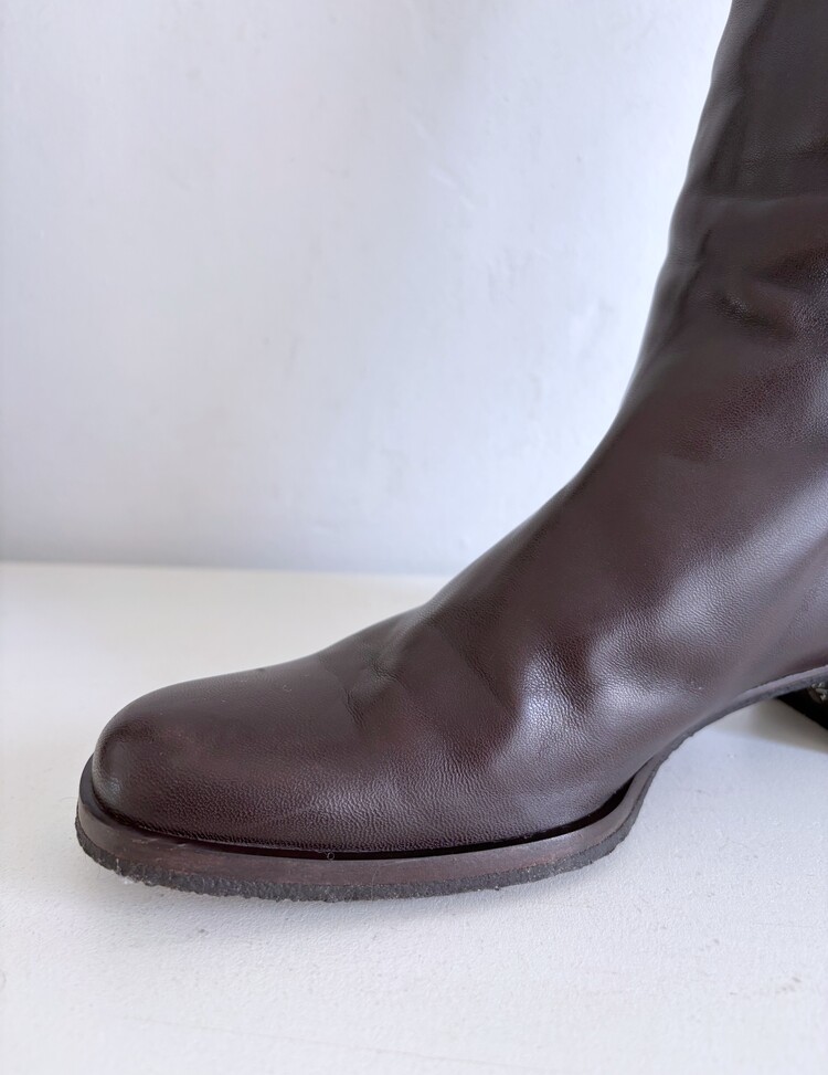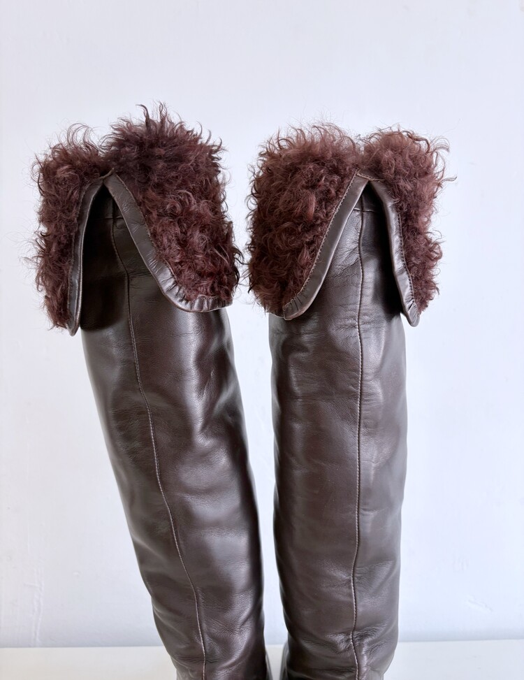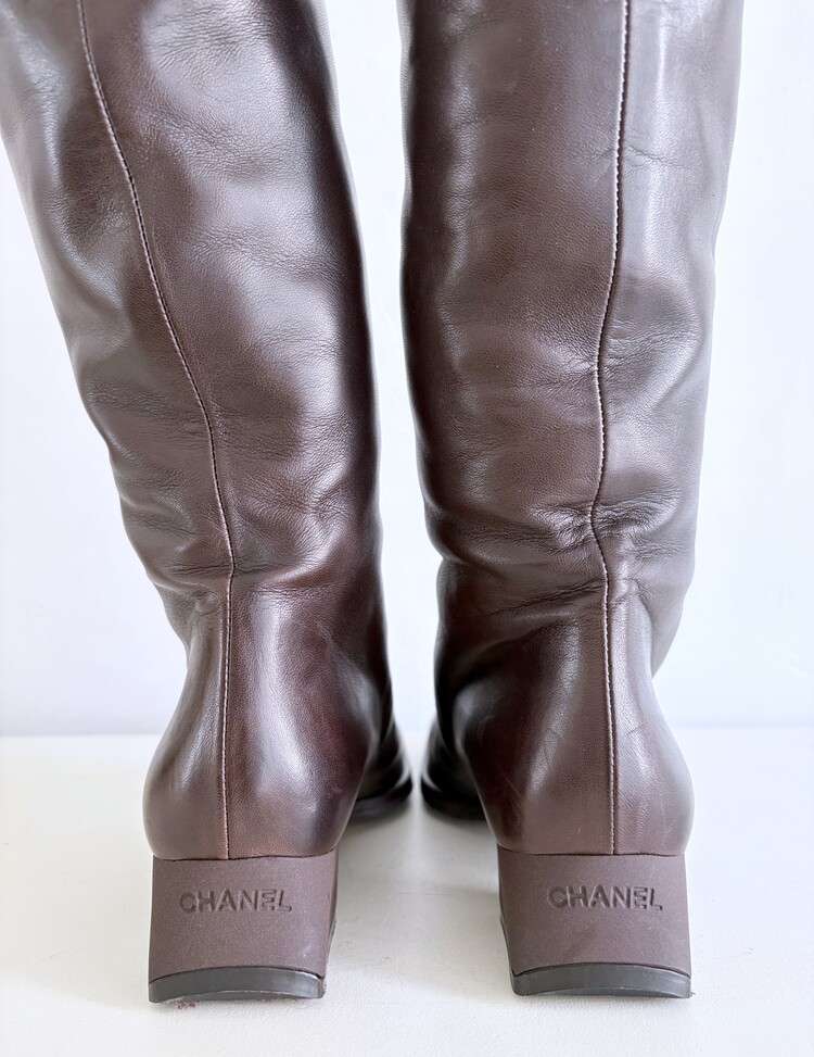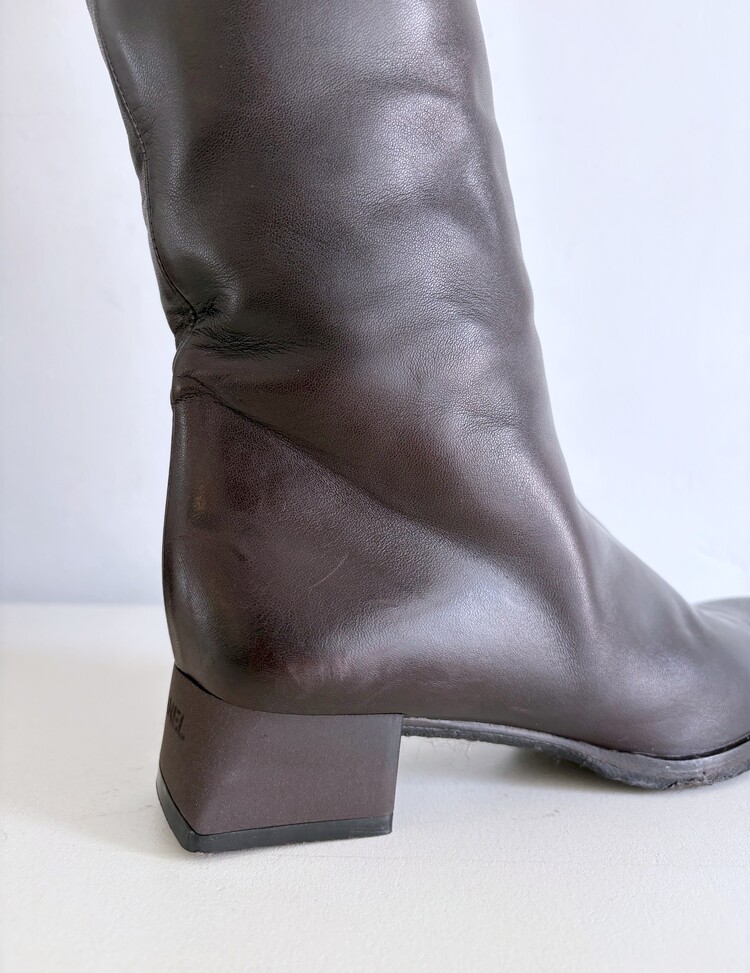 CHANEL Shearing Cuff Leather Boots (36.5)