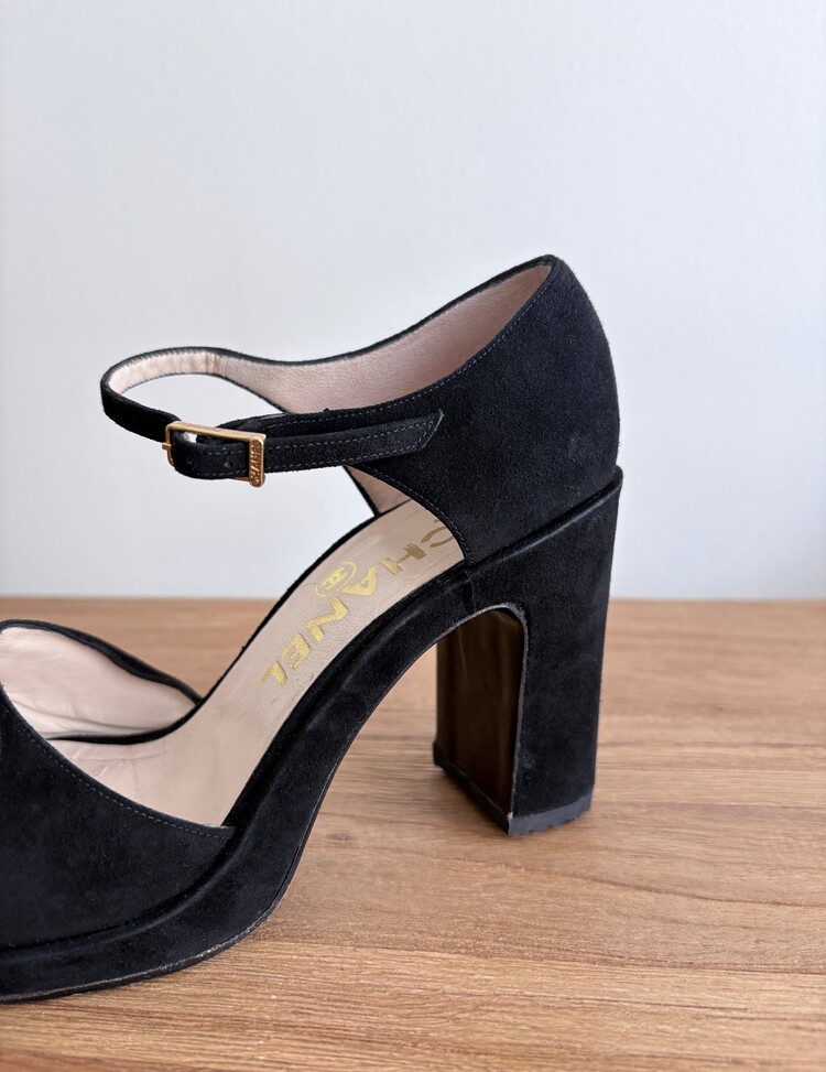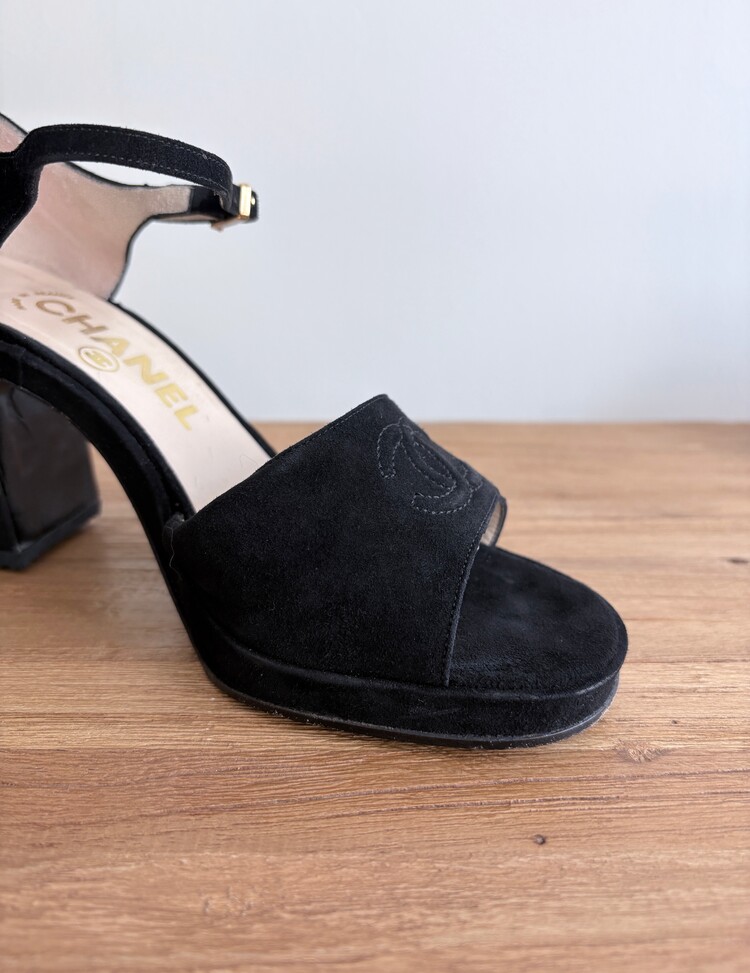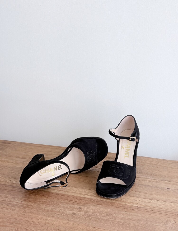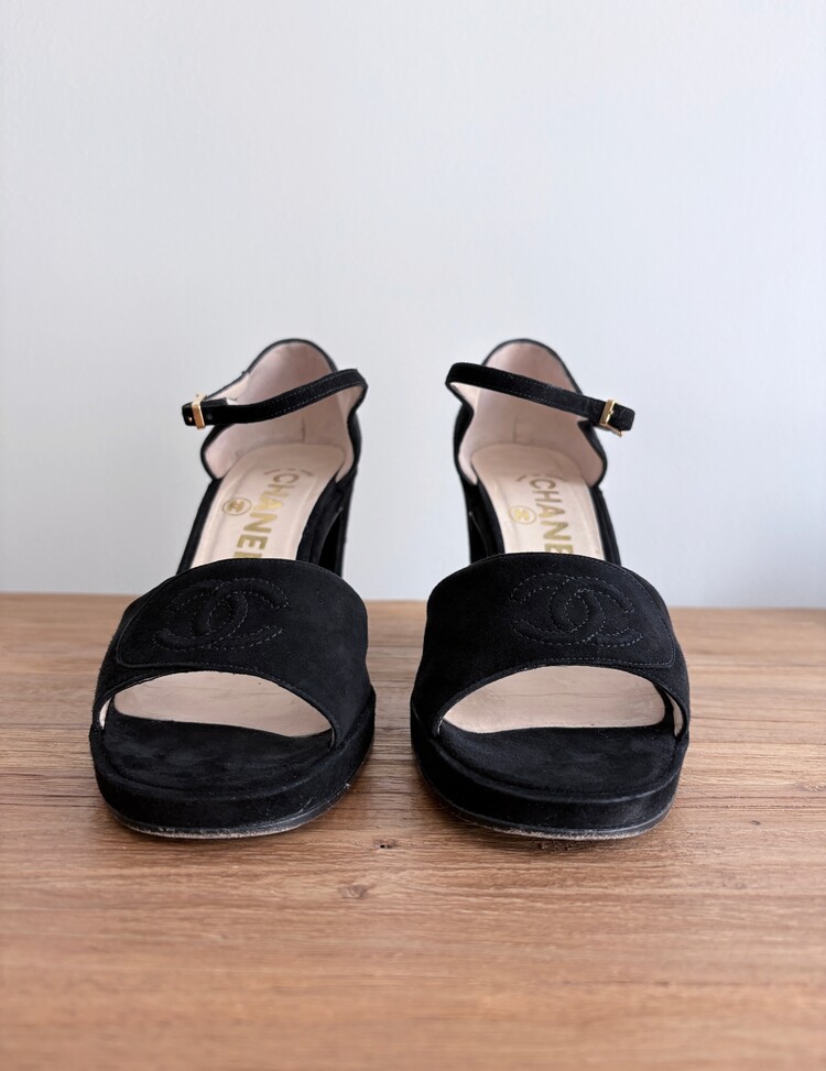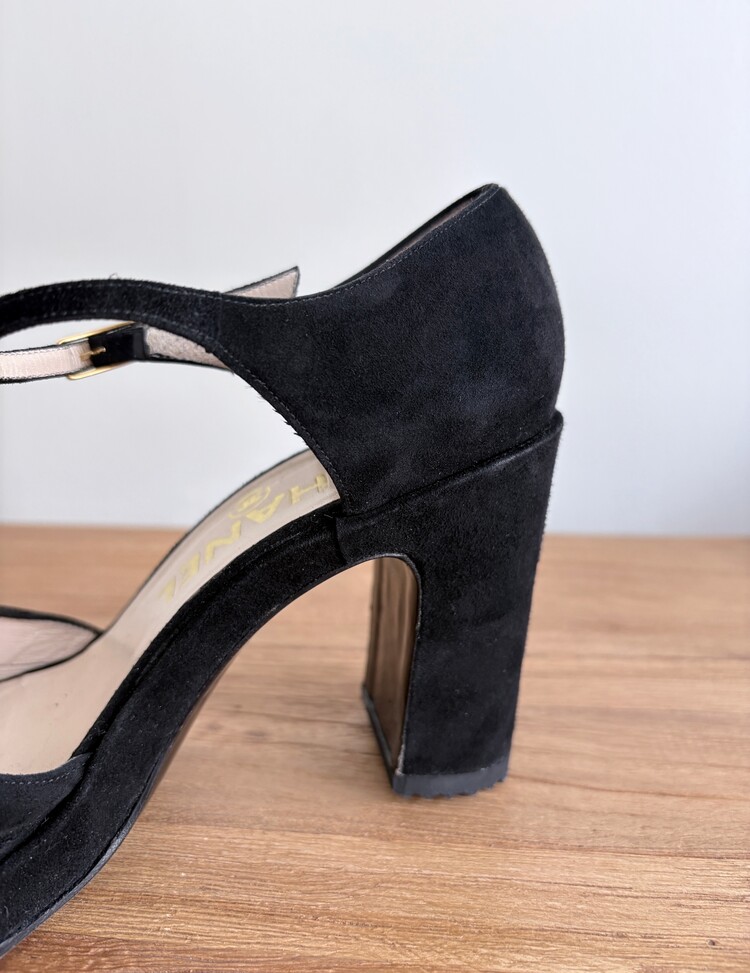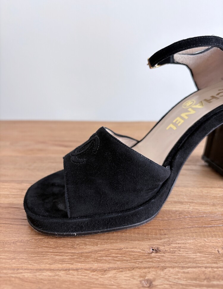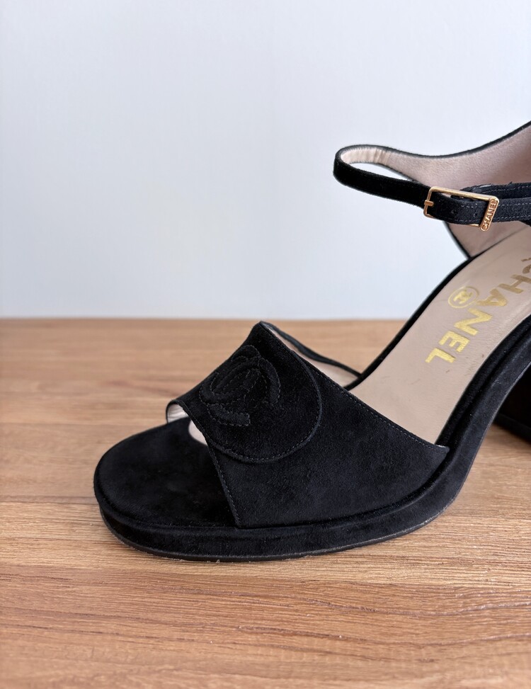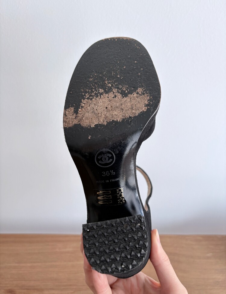 CHANEL Suede Open-toe Strap Heels (36.5)