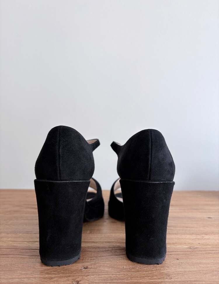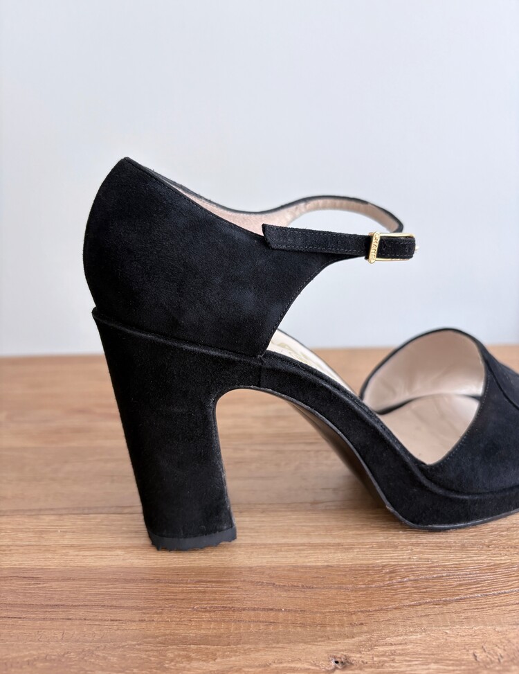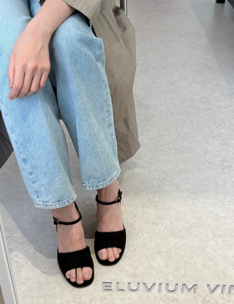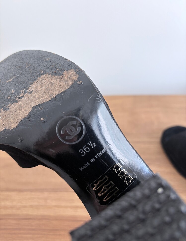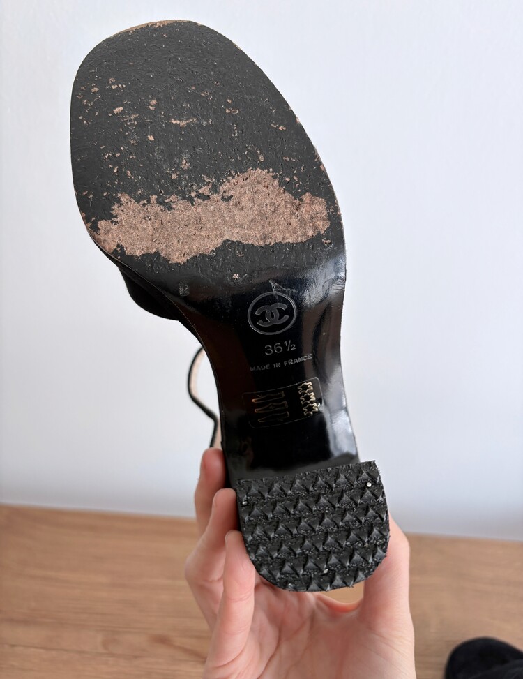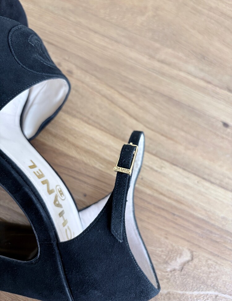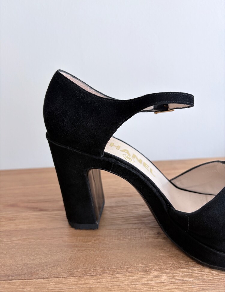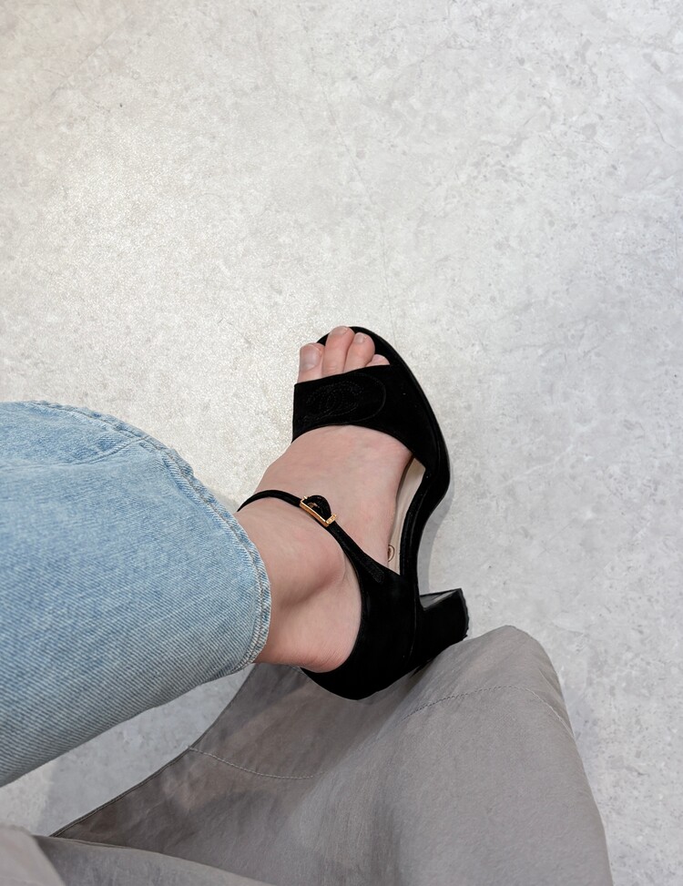 CHANEL Suede Open-toe Strap Heels (36.5)