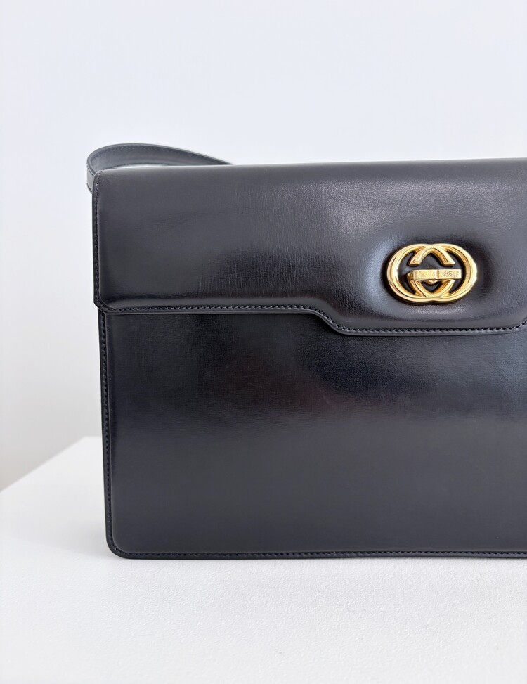GUCCI Turn Lock Logo Leather Shoulder Bag