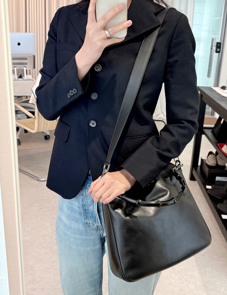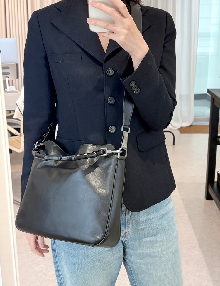 GUCCI Bamboo Handle Leather 2Way Hobo Bag