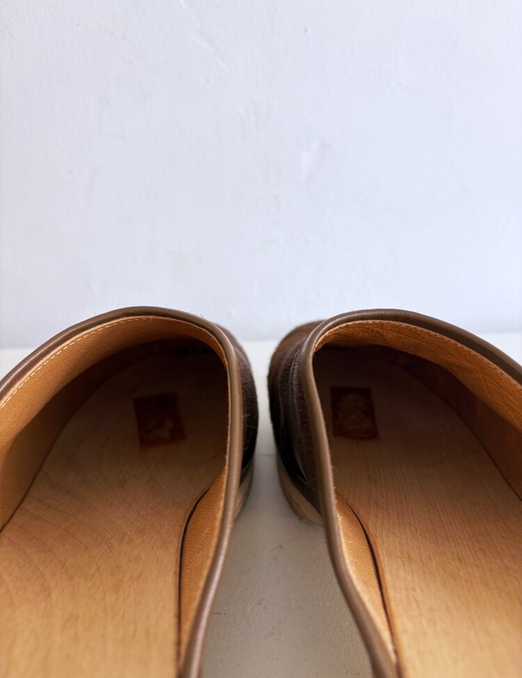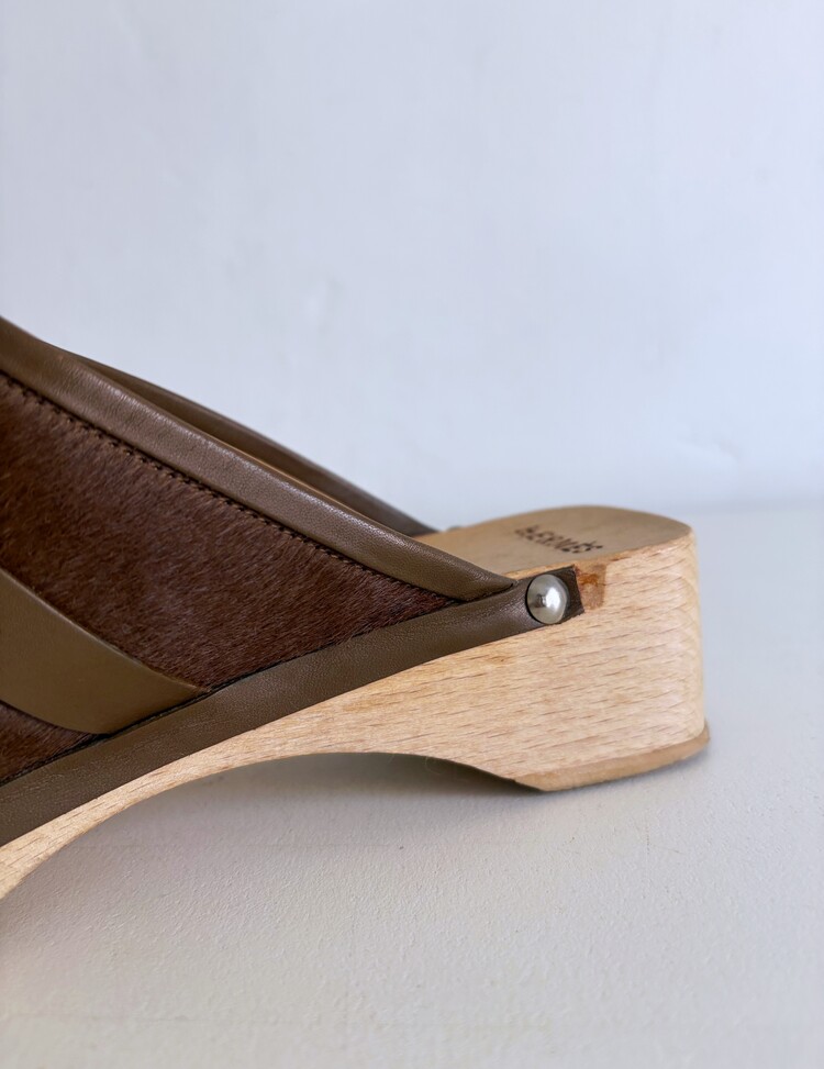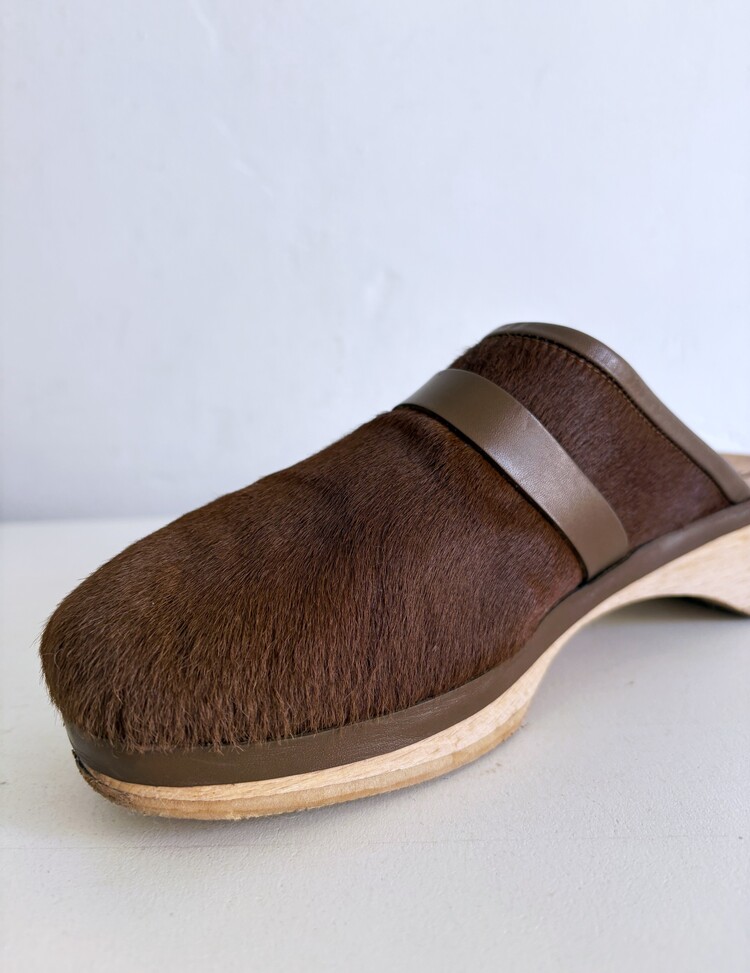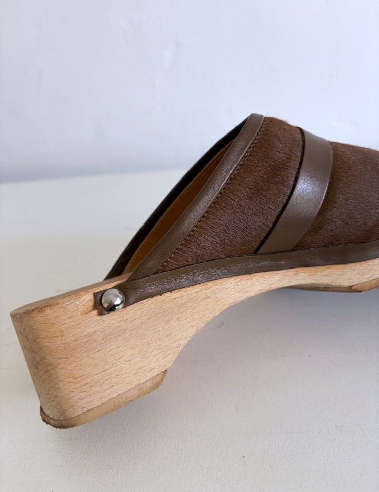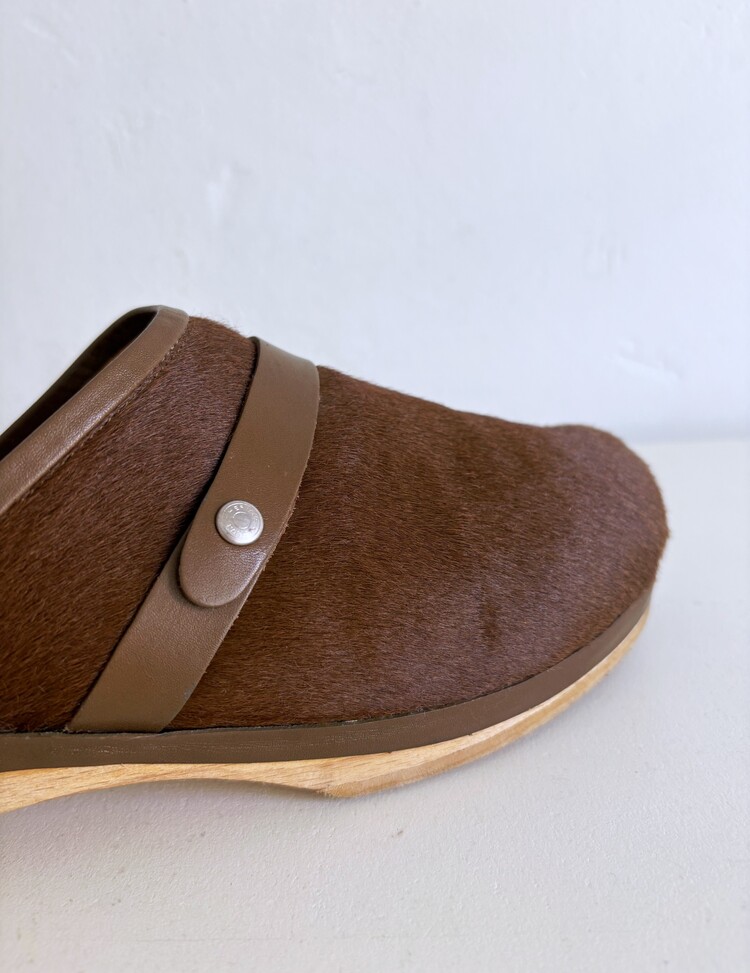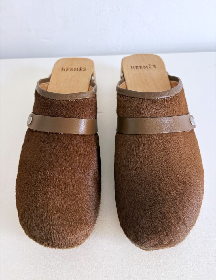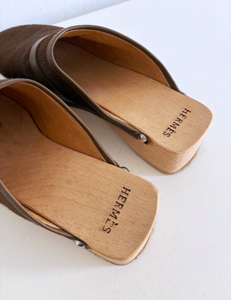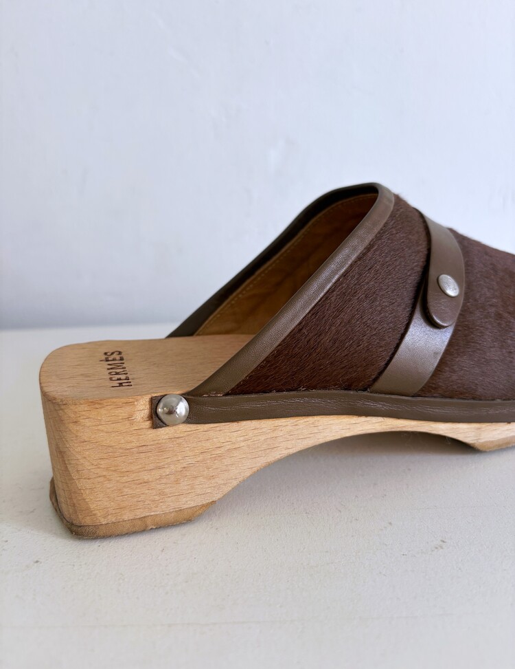HERMES Azur Hair On Leather Wood Clogs (37)