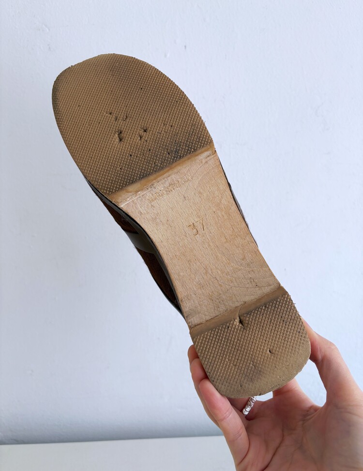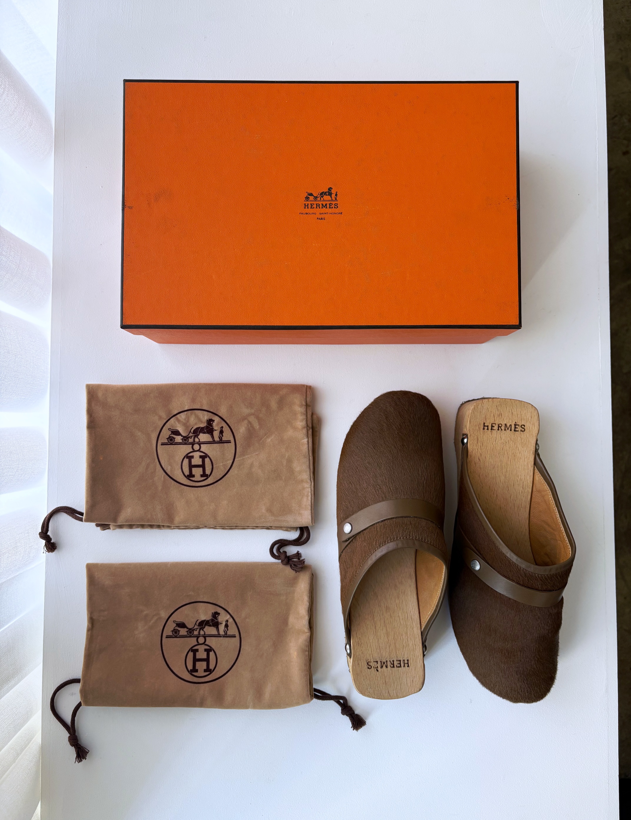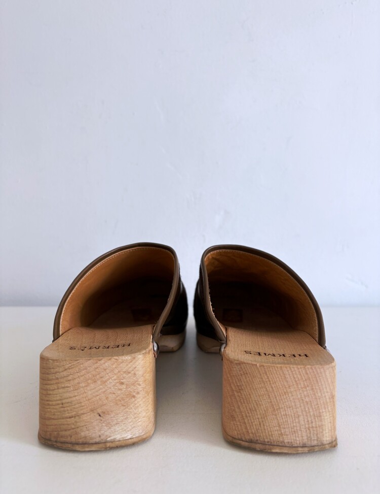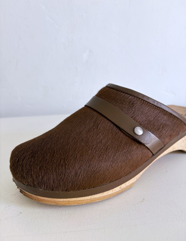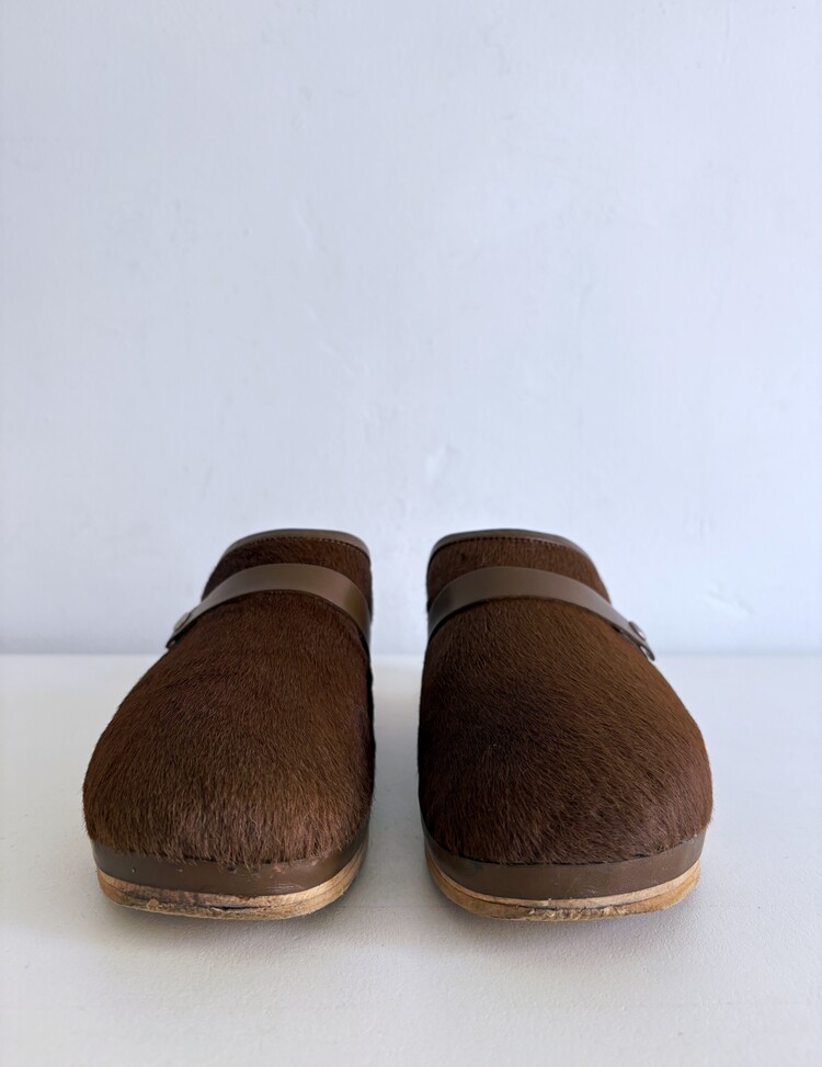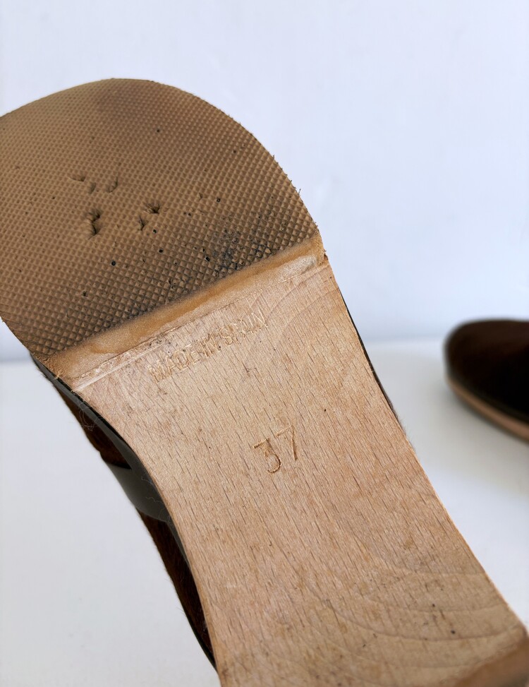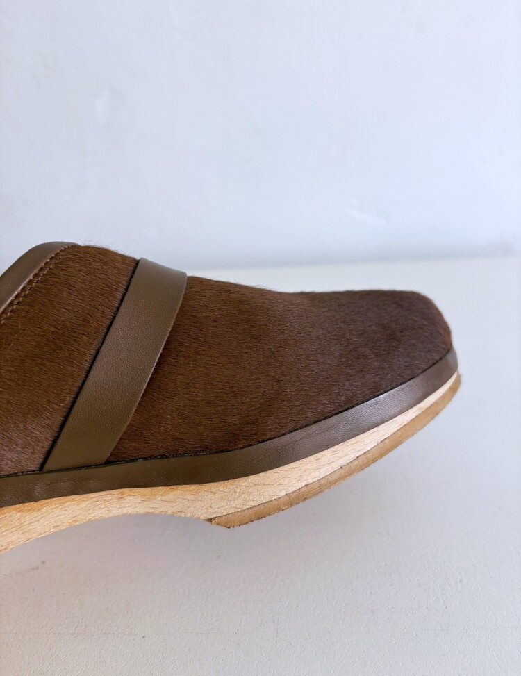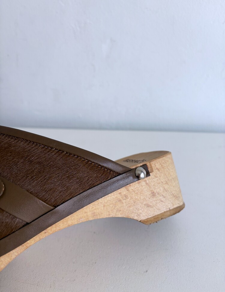 HERMES Azur Hair On Leather Wood Clogs (37)
