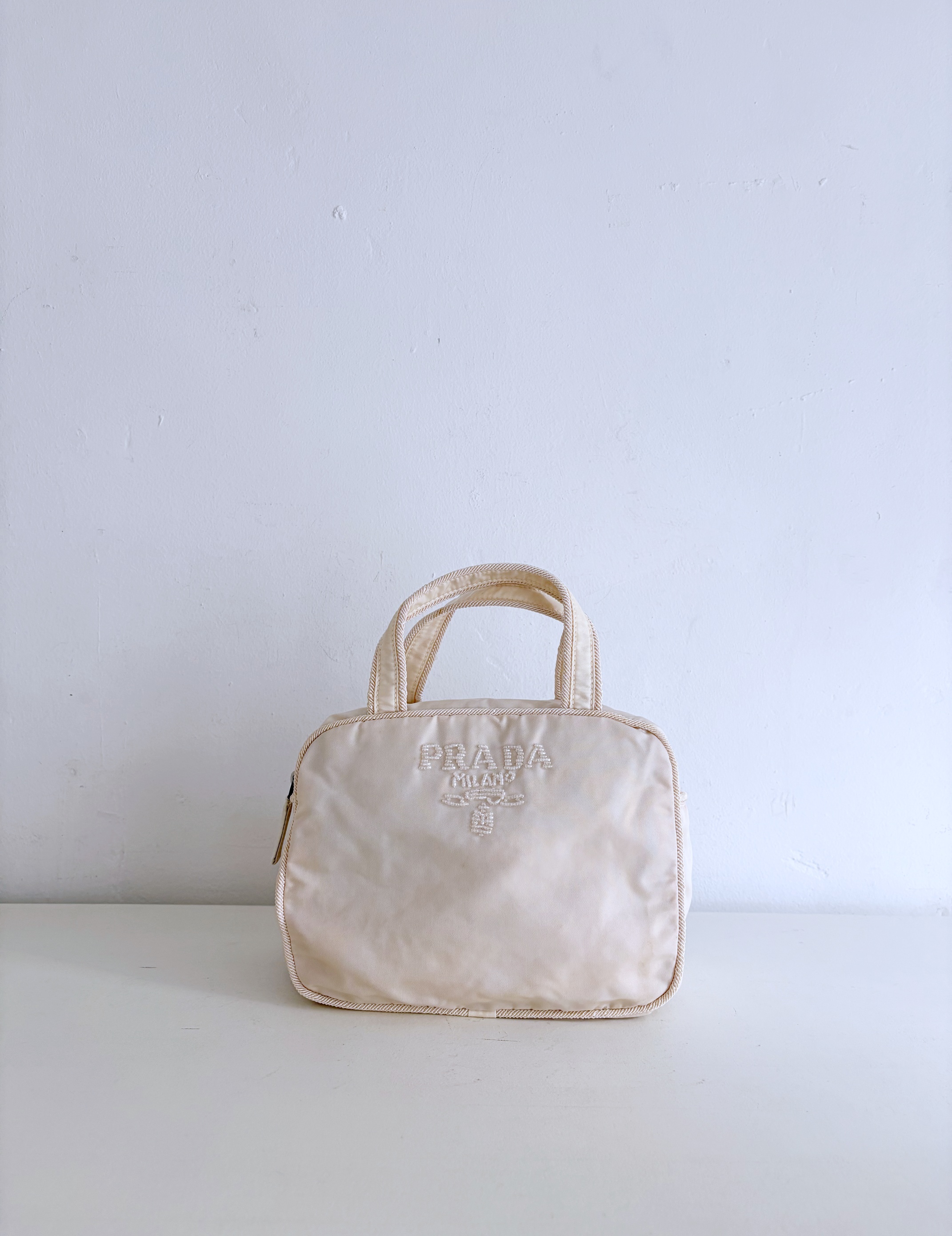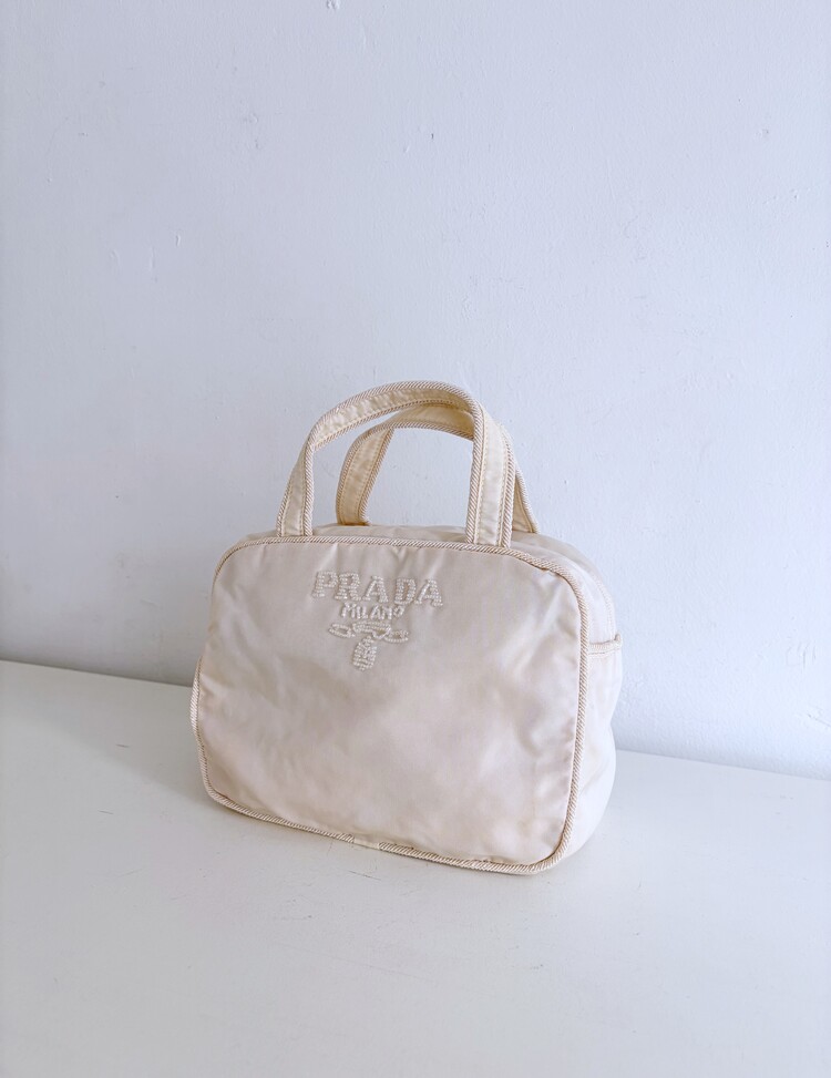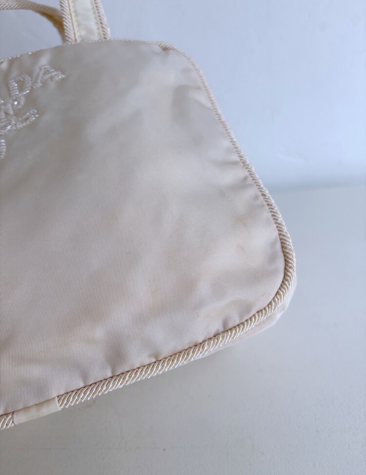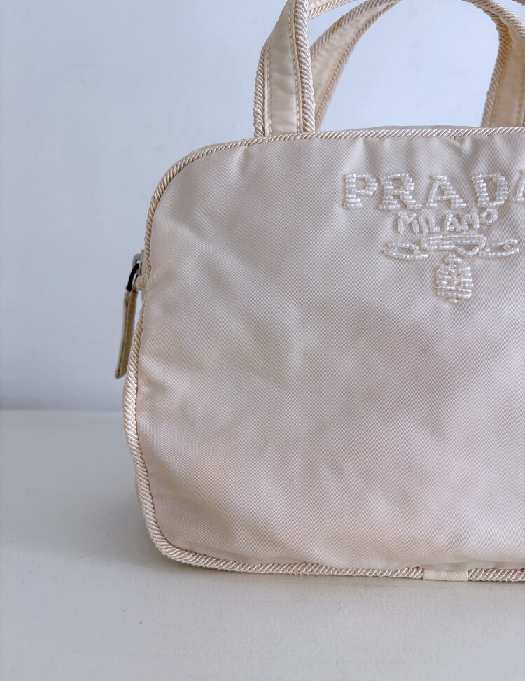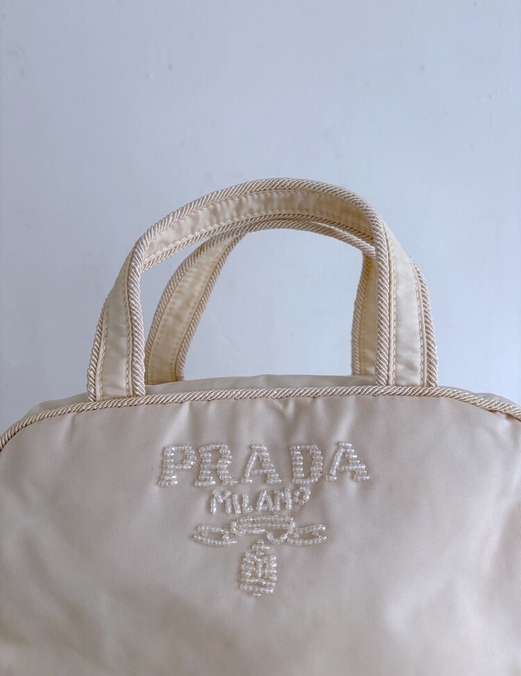 PRADA Beads Embroidered Logo Tote Bag