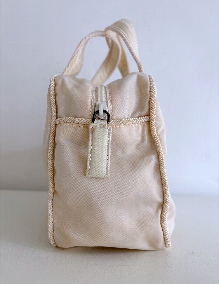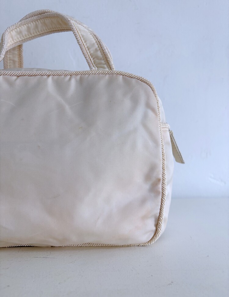 패브릭의 사용감은 거의 없지만 연식에 의해 밑모서리, 측면, 입구 부분을 중심으로 변색이 진행된 상태입니다.