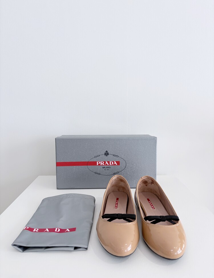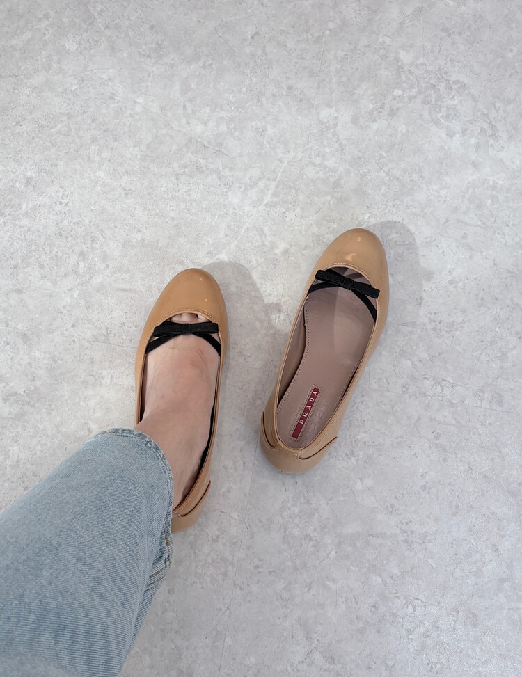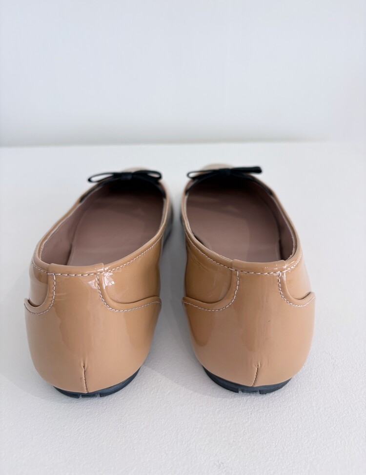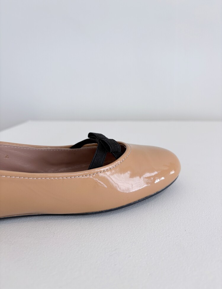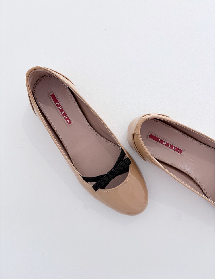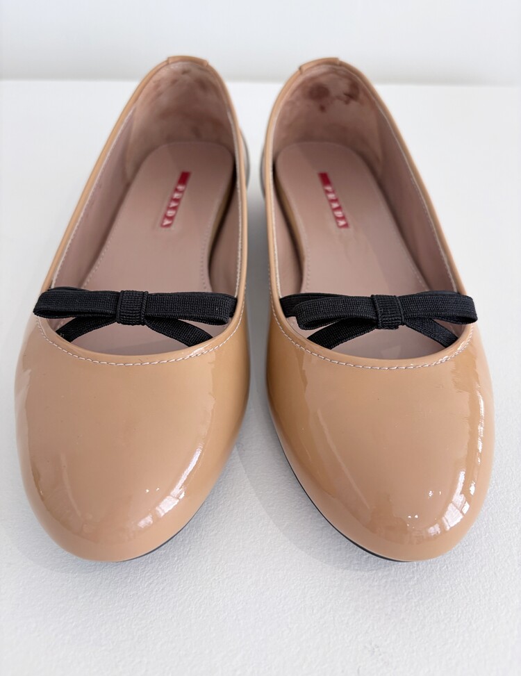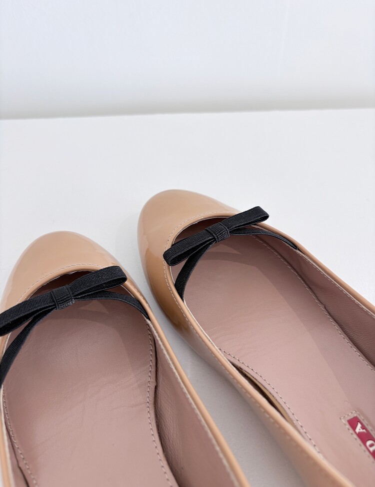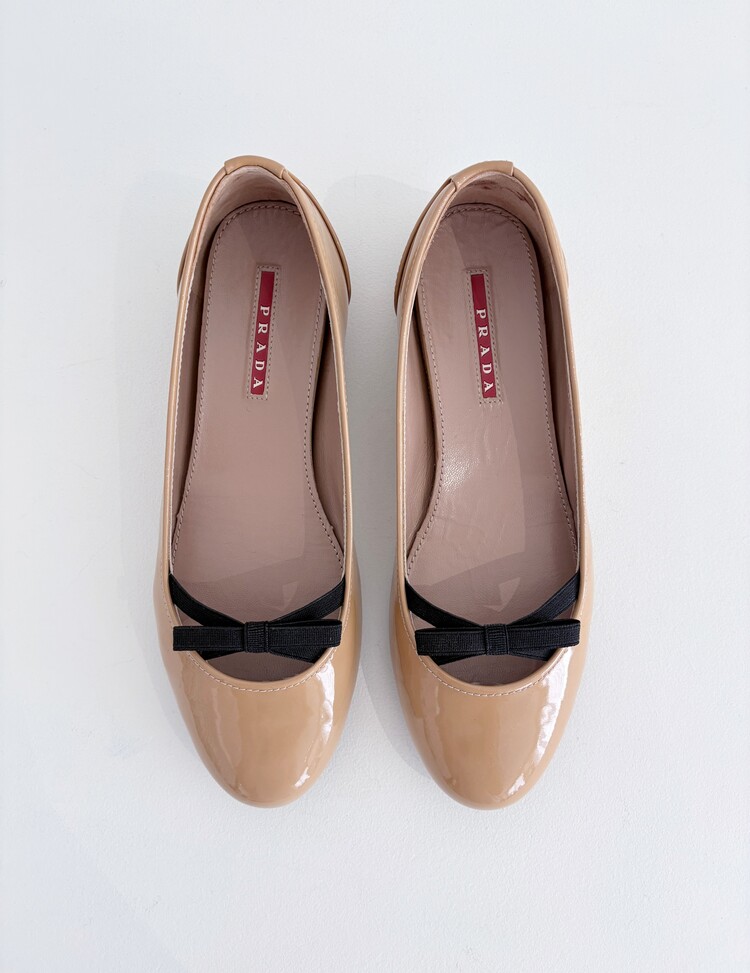 PRADA Enamel Leather Ribbon Flat Shoes (36)