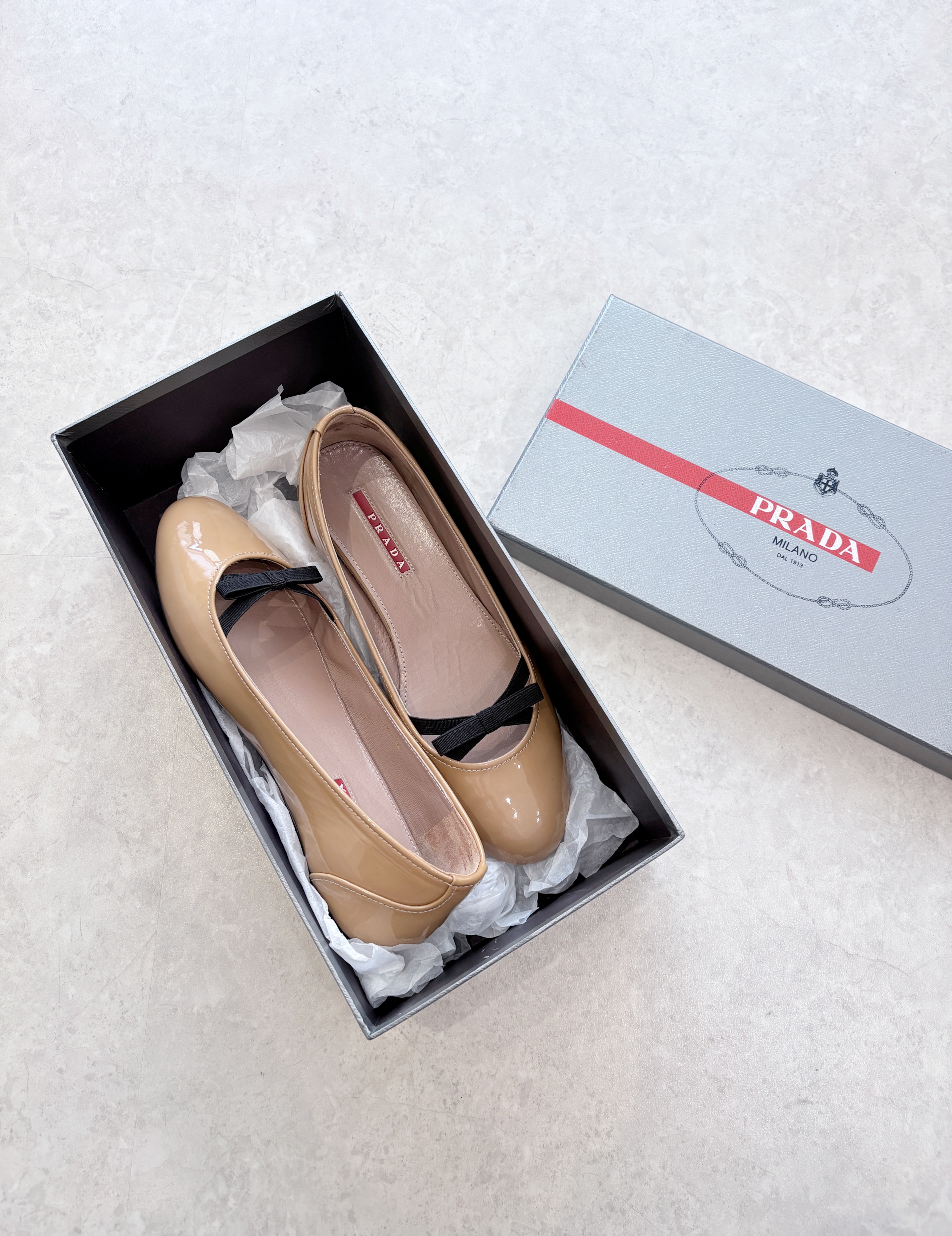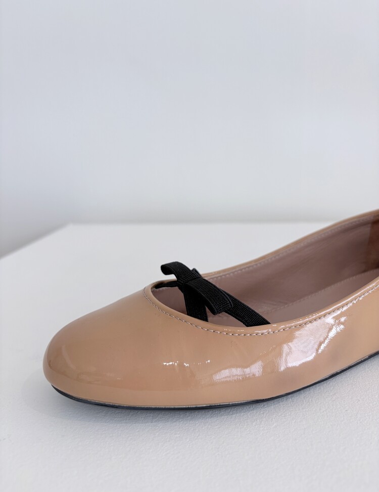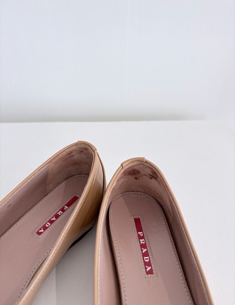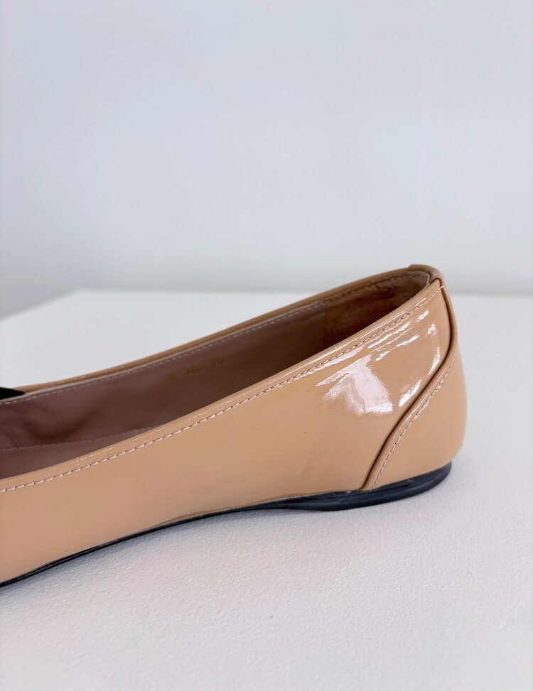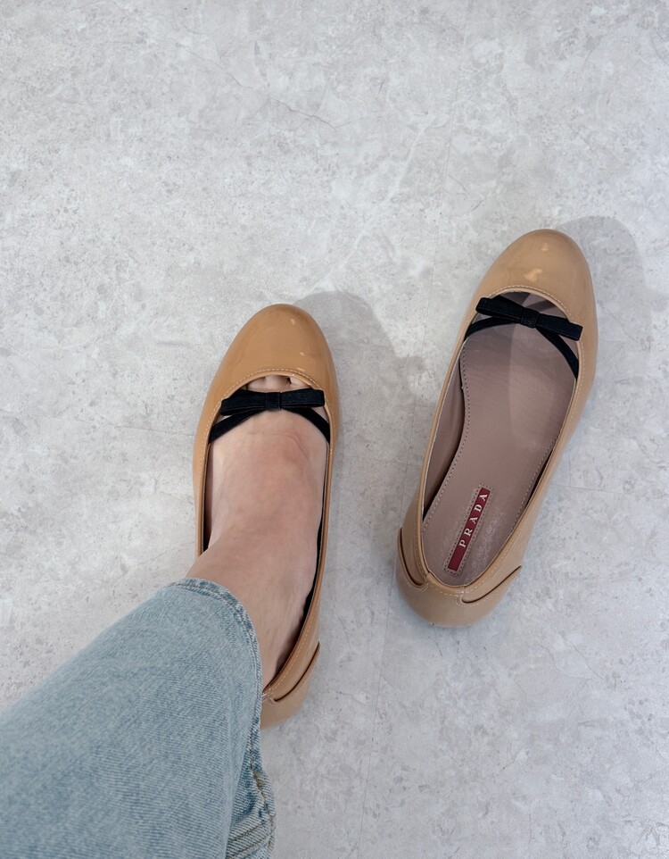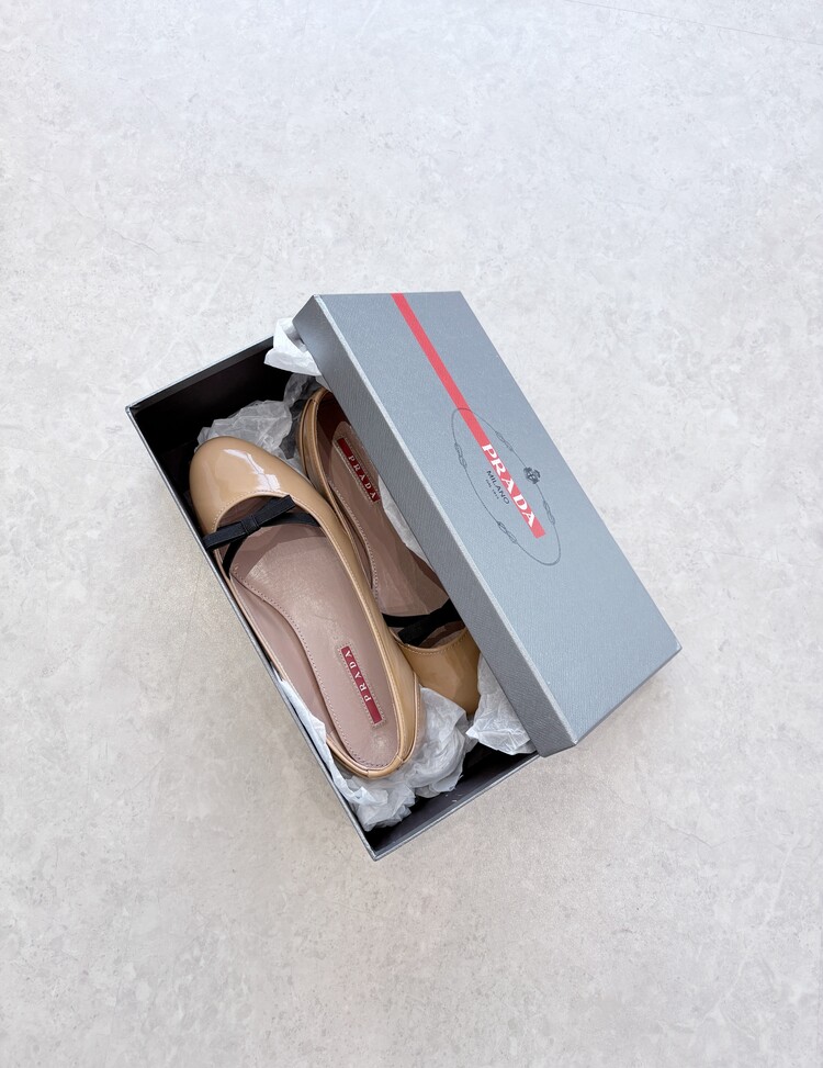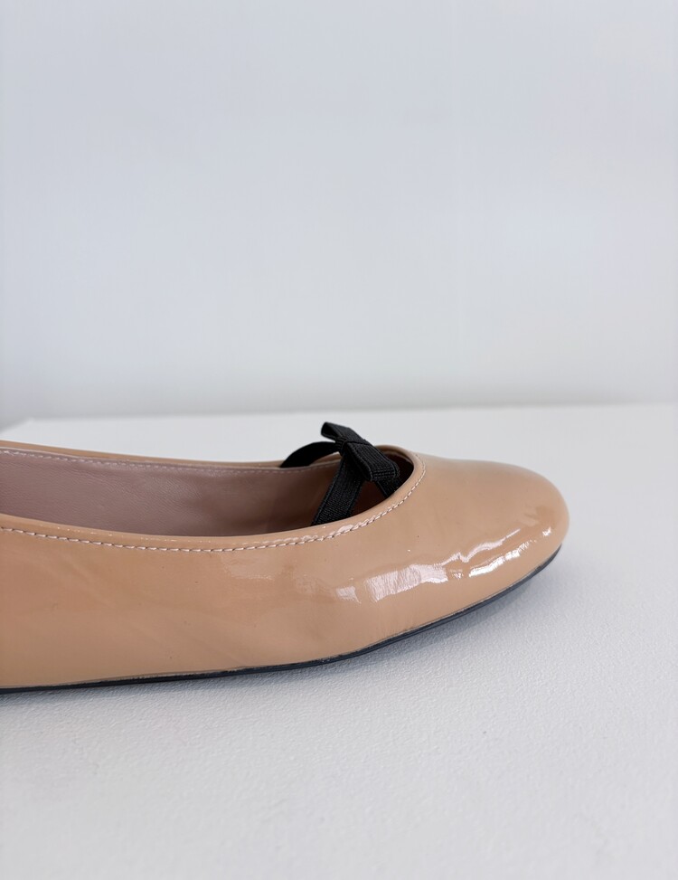 PRADA Enamel Leather Ribbon Flat Shoes (36)