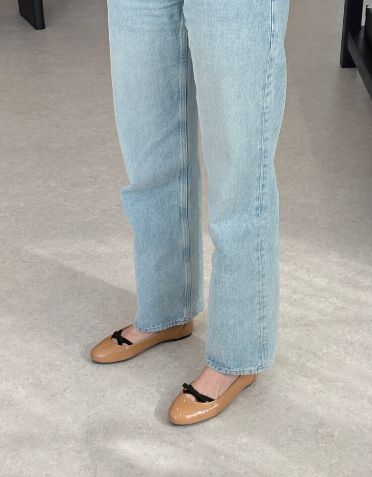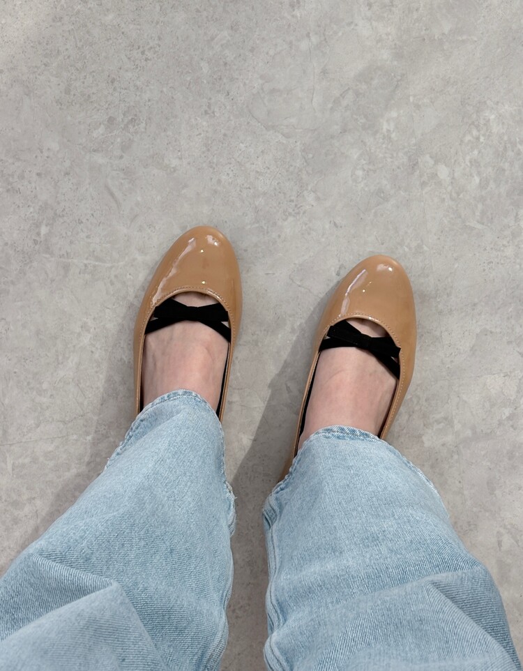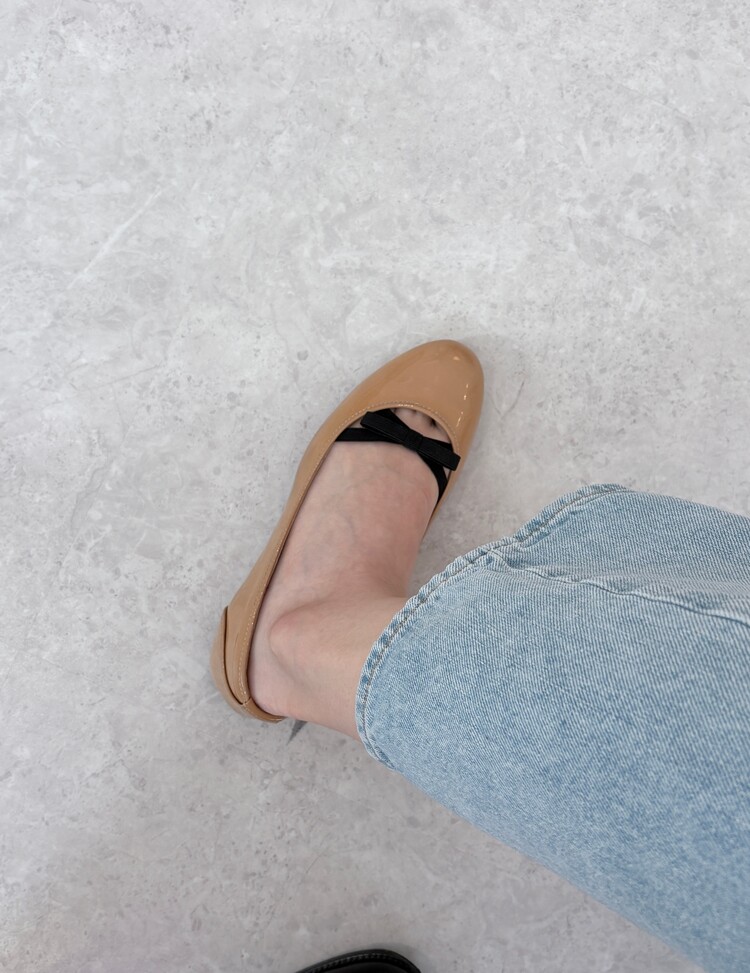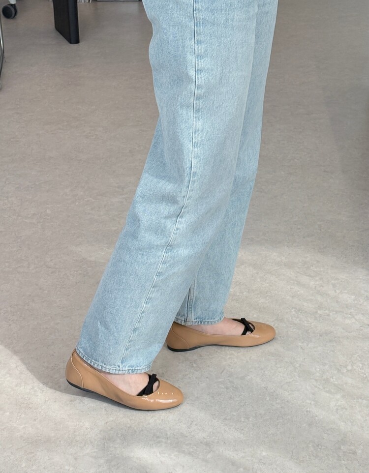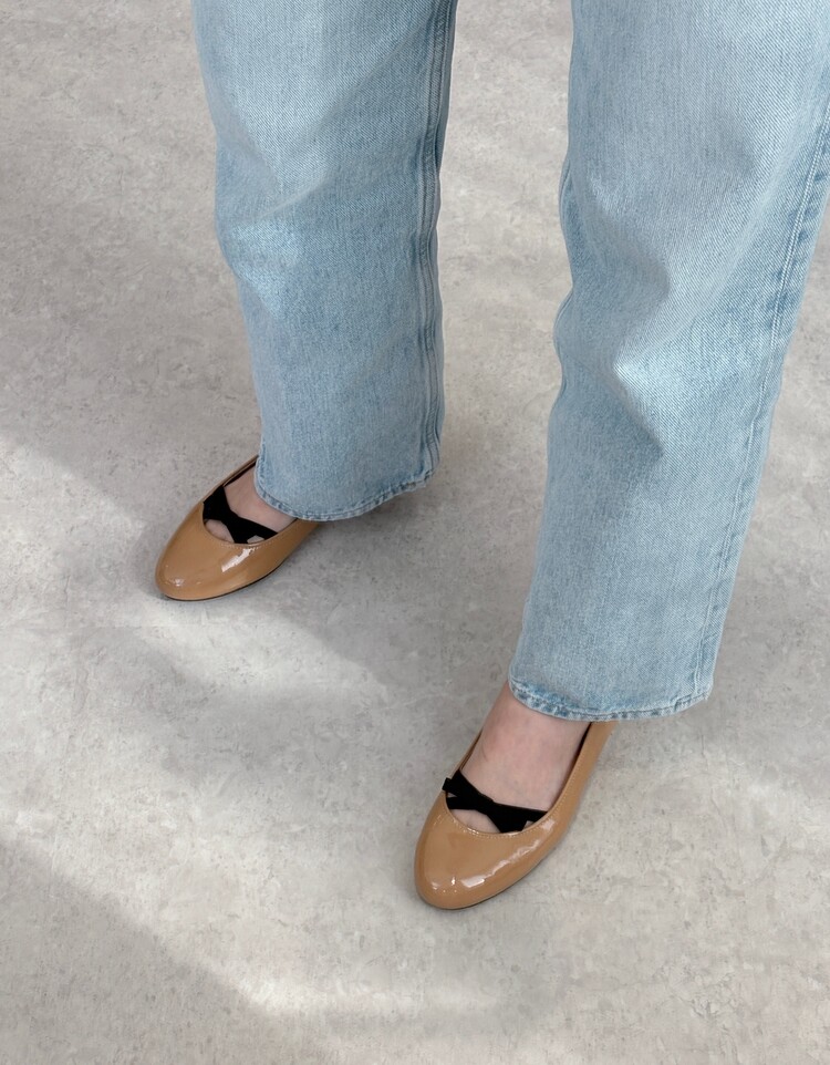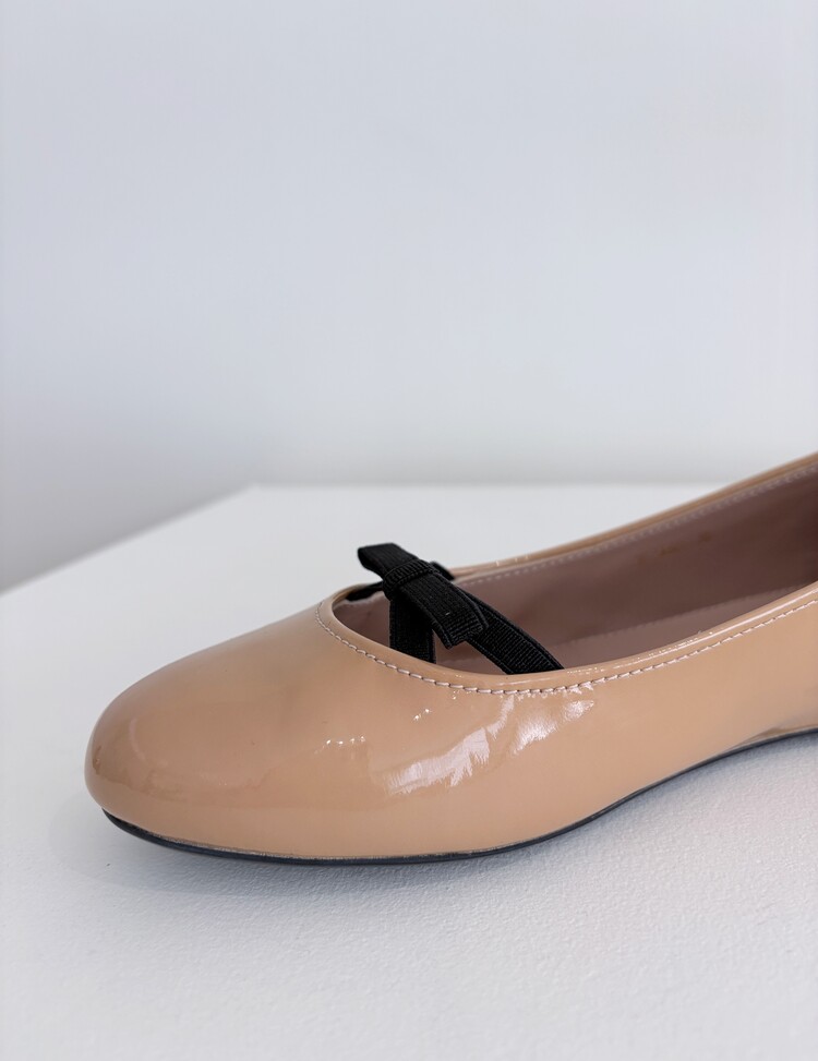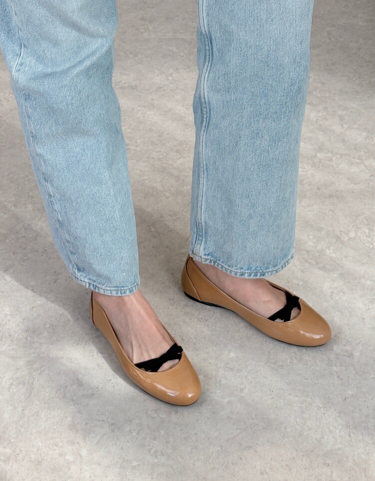 PRADA Enamel Leather Ribbon Flat Shoes (36)